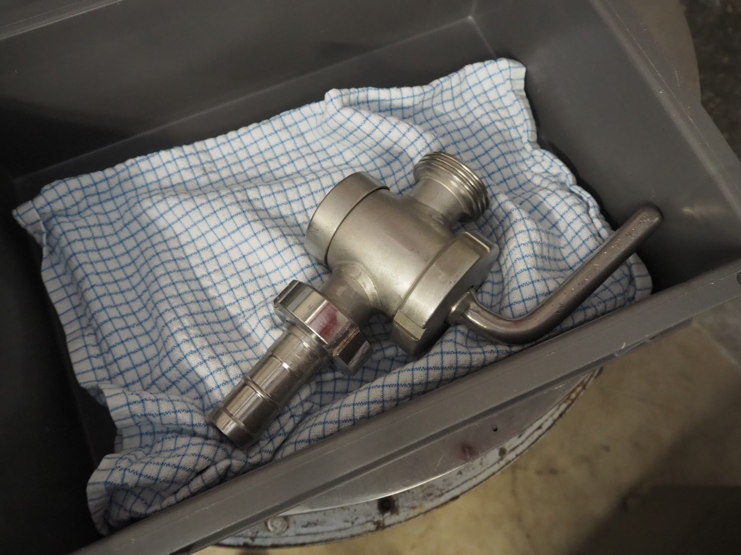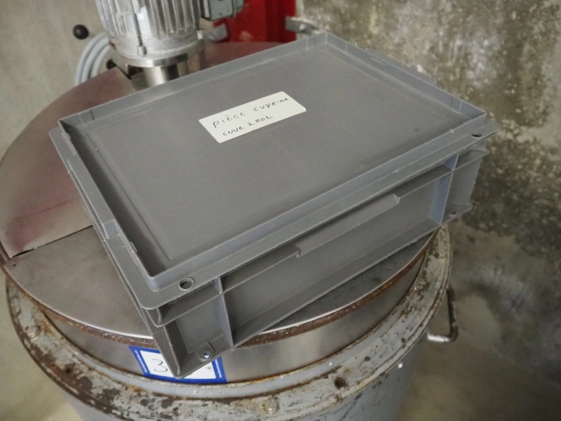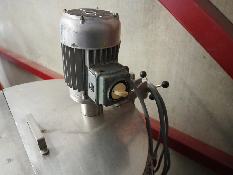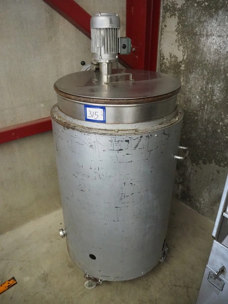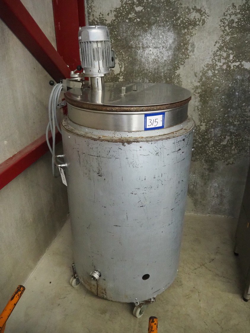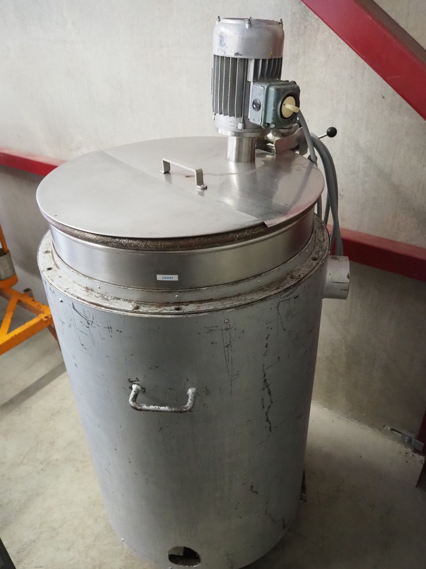 S/s mobile tank with agitator, diameter: 630 mm, height: 960 mm, total dimensions: 950 mm x 950 mm x 1640 mm. Including part.