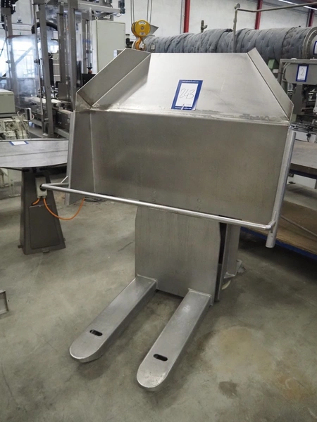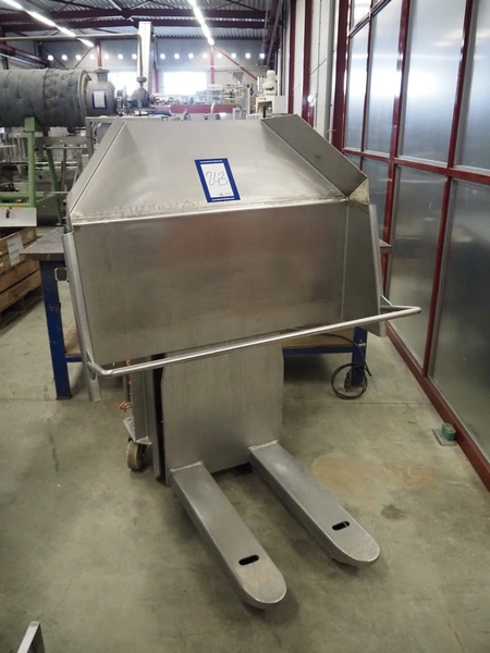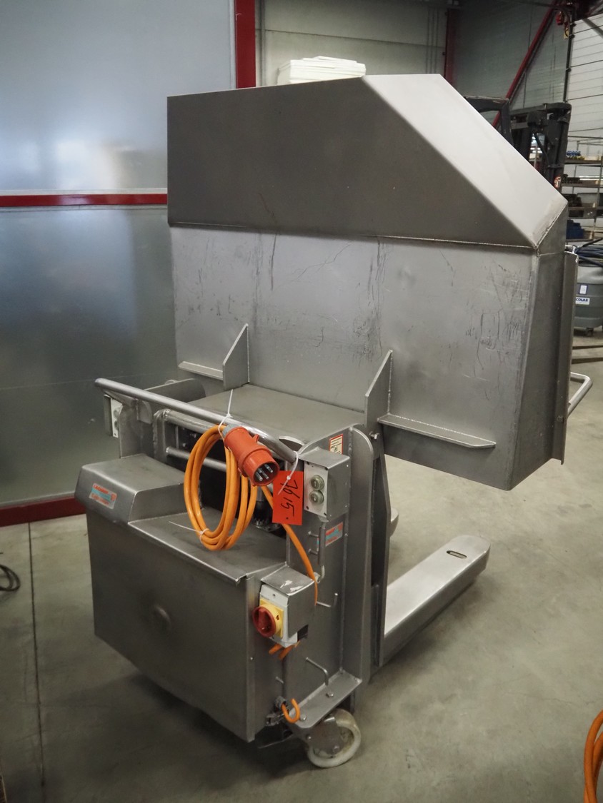 Lachnit s/s tilting device for pallet boxes, dimensions: 1400 mm x 1300 mm x 1610 mm.