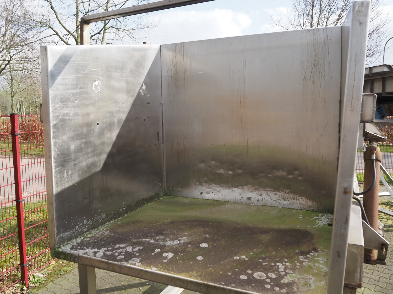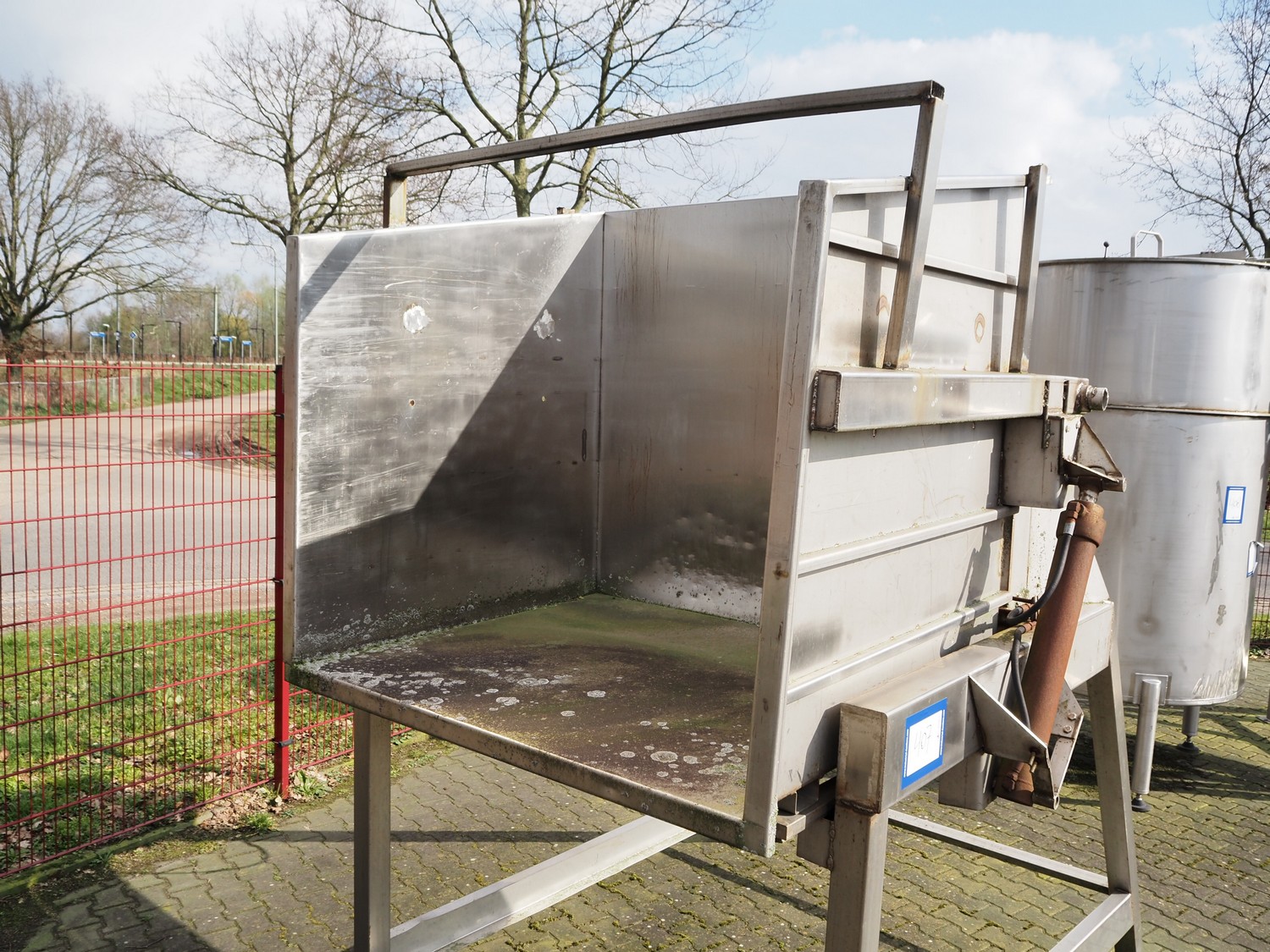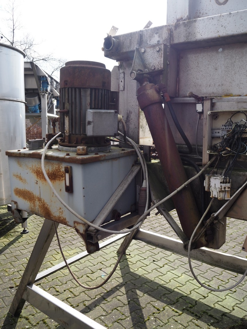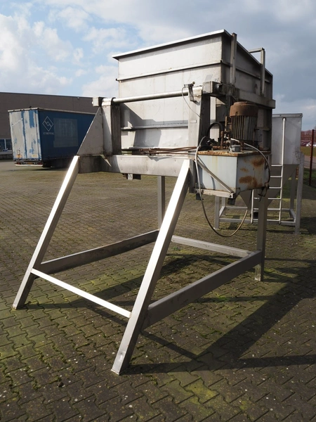 Hydraulic tilting device for pallet boxes, infeed dimensions: 1400 mm x 1200 mm x 1300 mm, total dimensions: 2700 mm x 2200 mm x 2700 mm. Technical condition unknown.