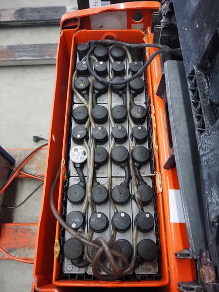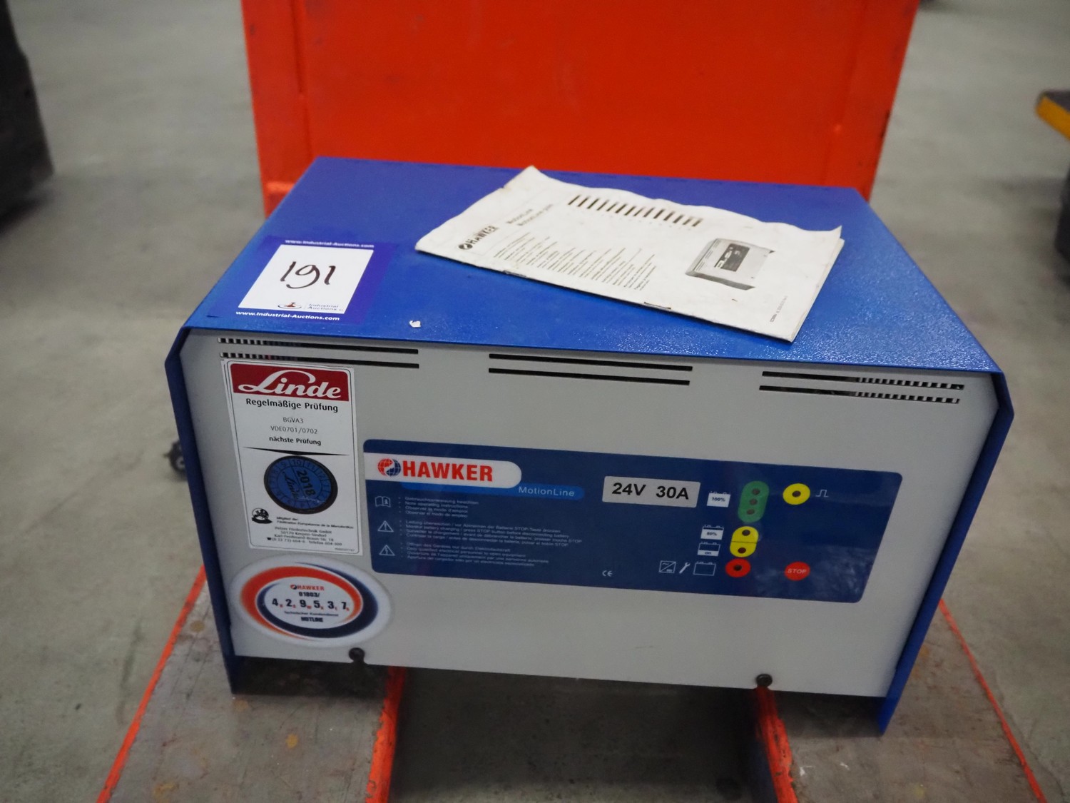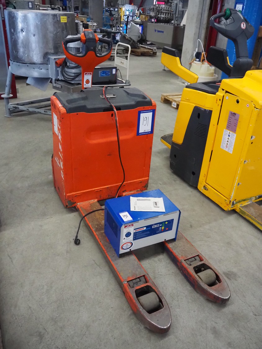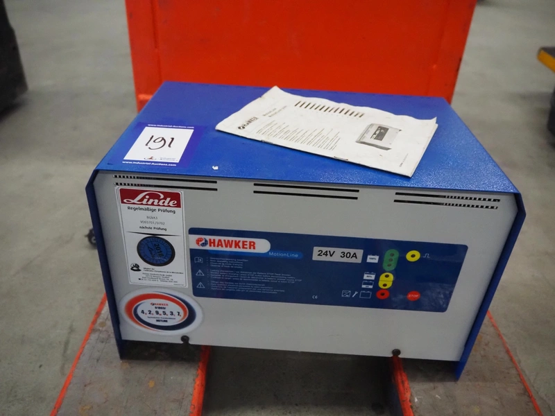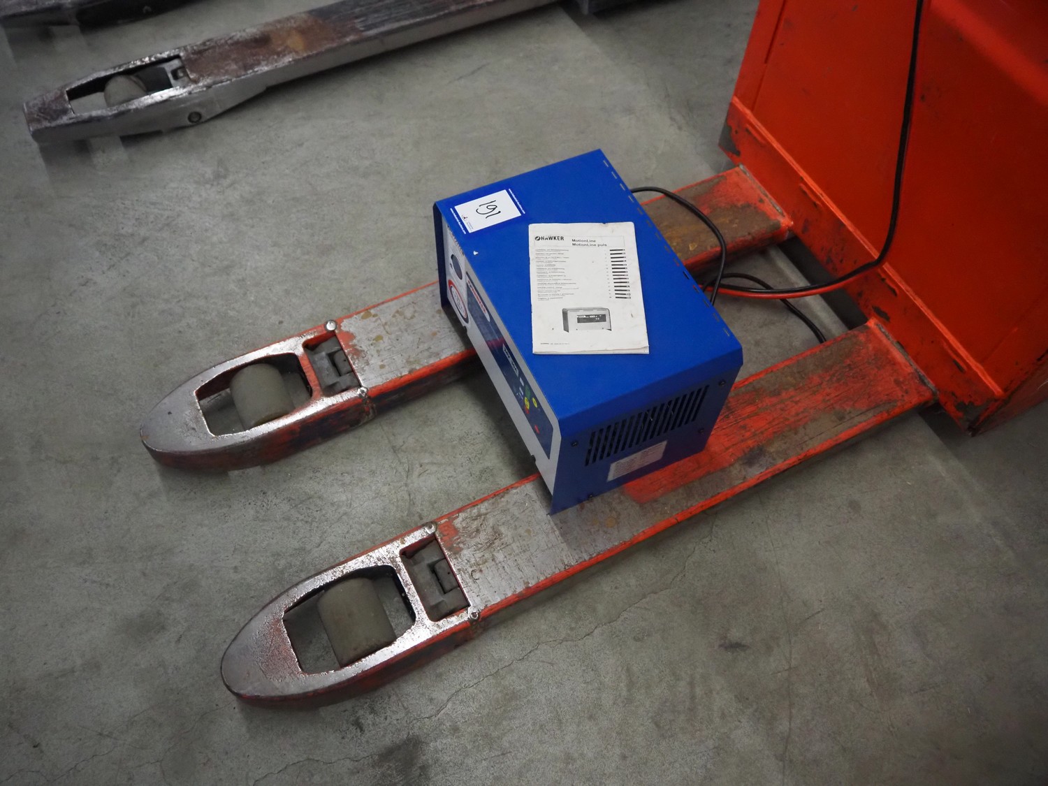 Linde electric pallet lifter, fork length: 1150 mm, total dimensions: 1720 mm x 730 mm x 1300 mm. Including Hawker battery charger, dimensions battery charger: 410 mm x 250 mm x 260 mm.