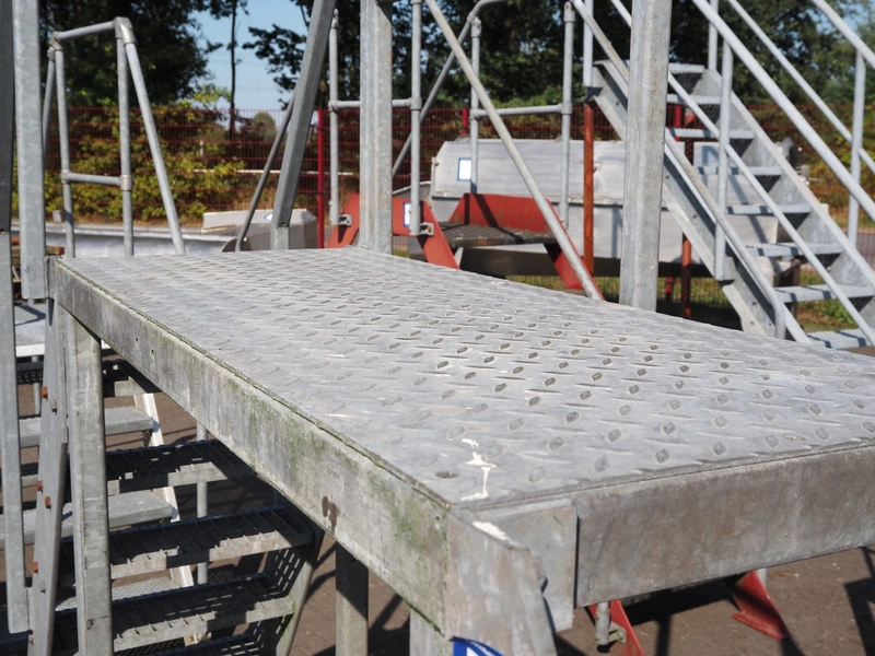 Steel platform, working height: 1440 mm, total dimensions: 3000 mm x 600 mm x 2300 mm.