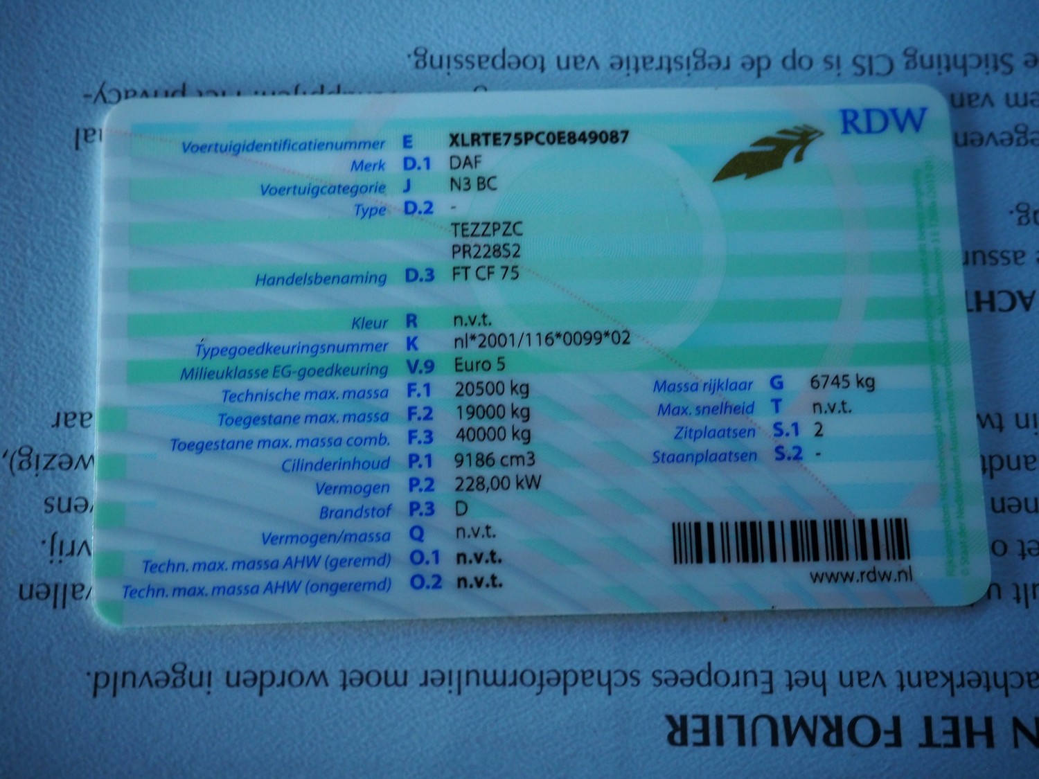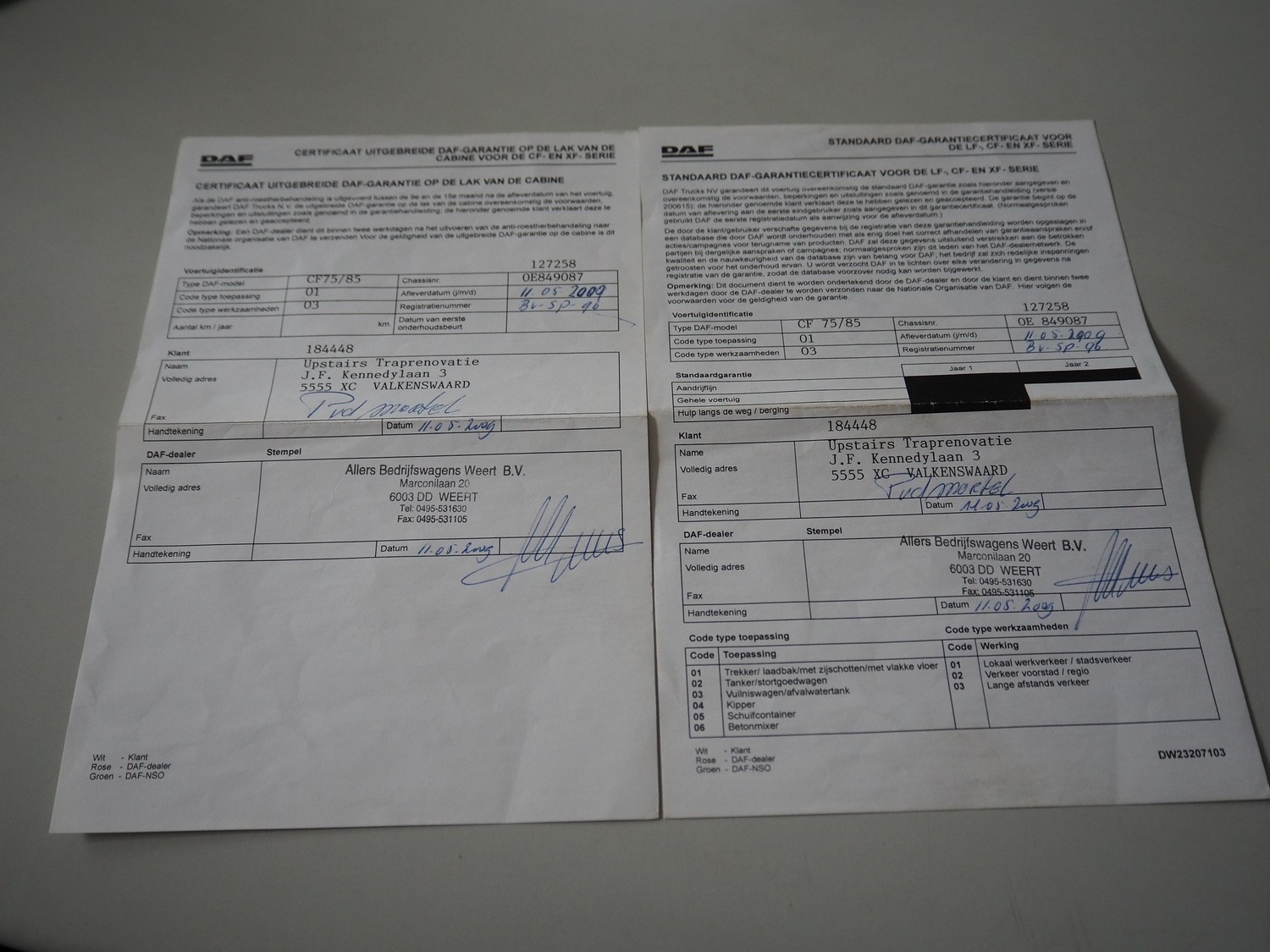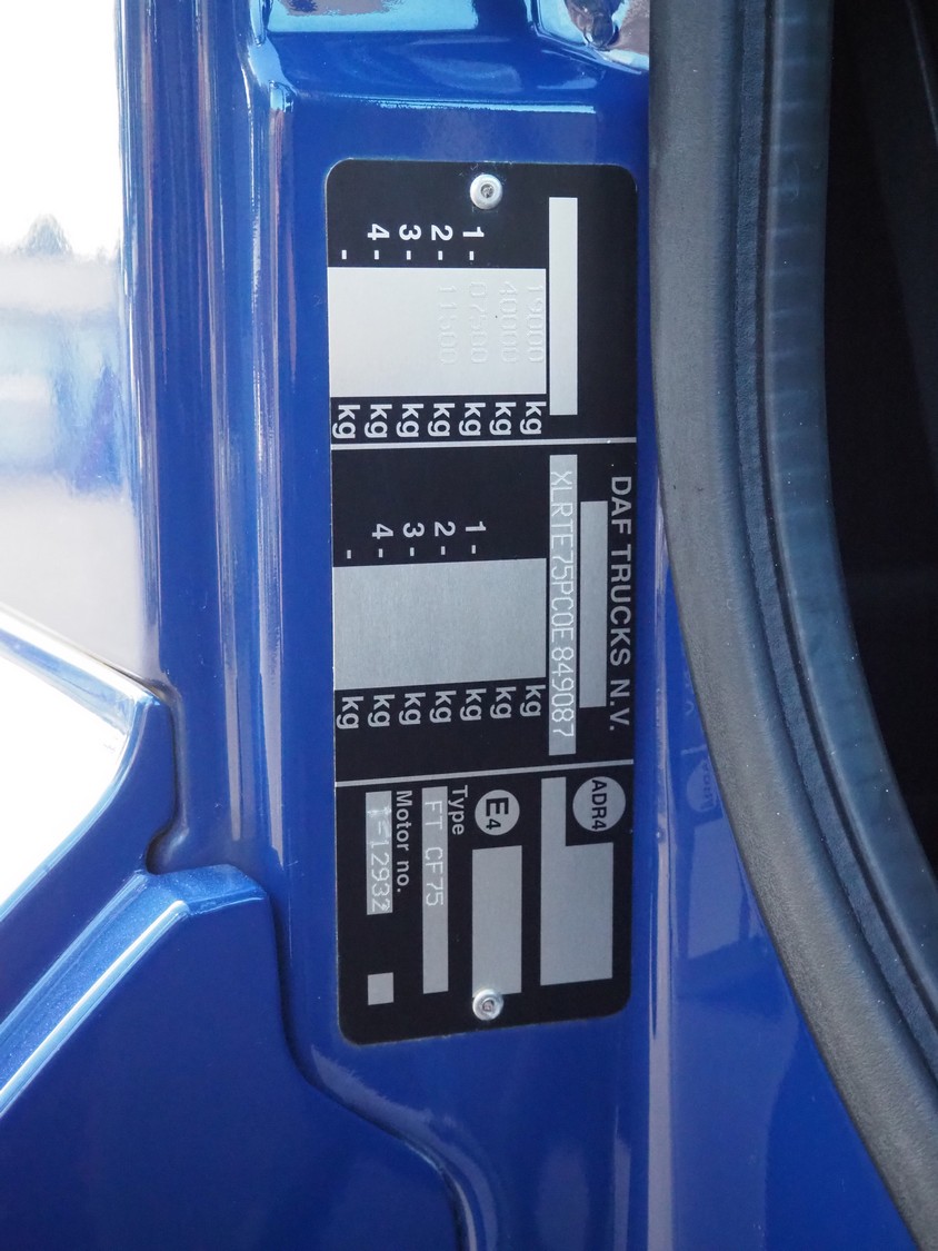 DAF Trucks N.V. truck, type: FT CF75, chassis number: XLRTE75PCOE849087, motor number: 12932, year of construction: 2009, fuel: Diesel, cylinder volume: 9186 cm³, weight: 6745 kg, mileage: 145.321 km (still used at the moment).