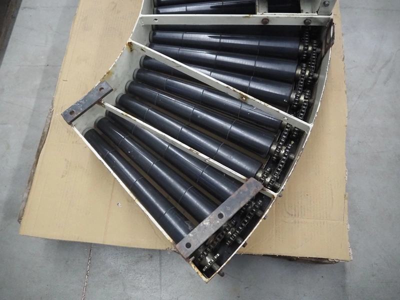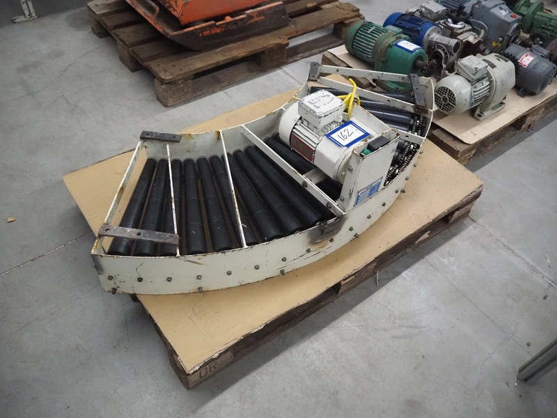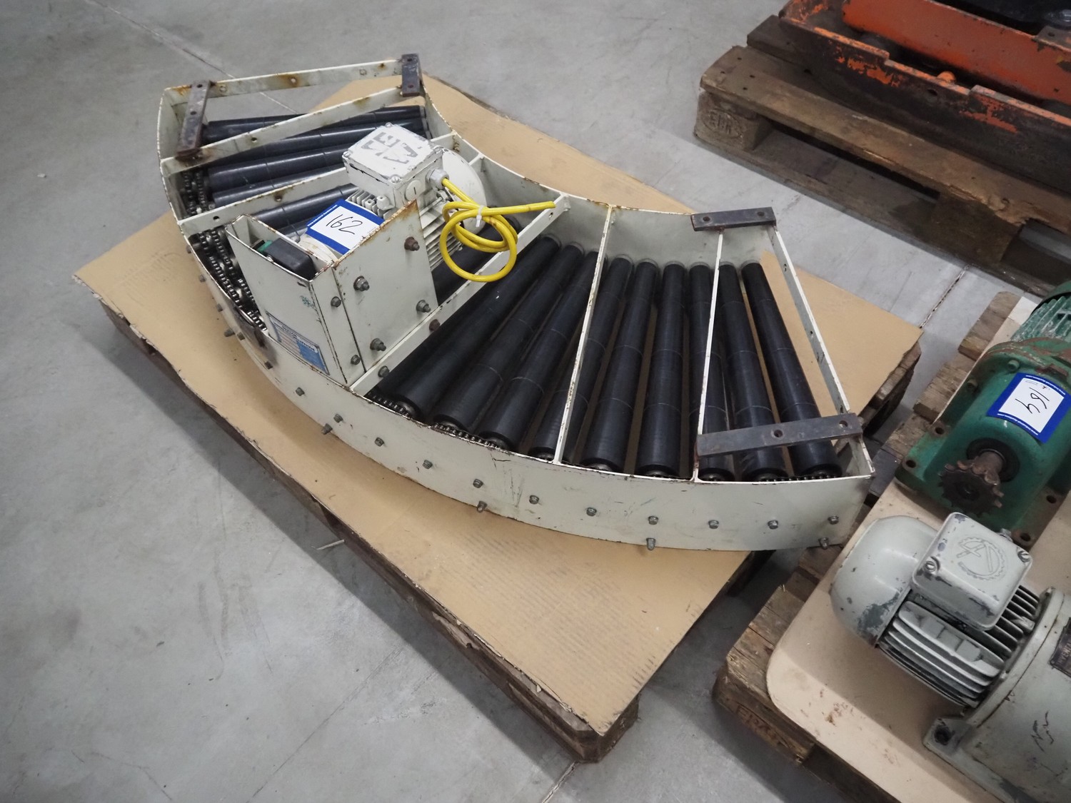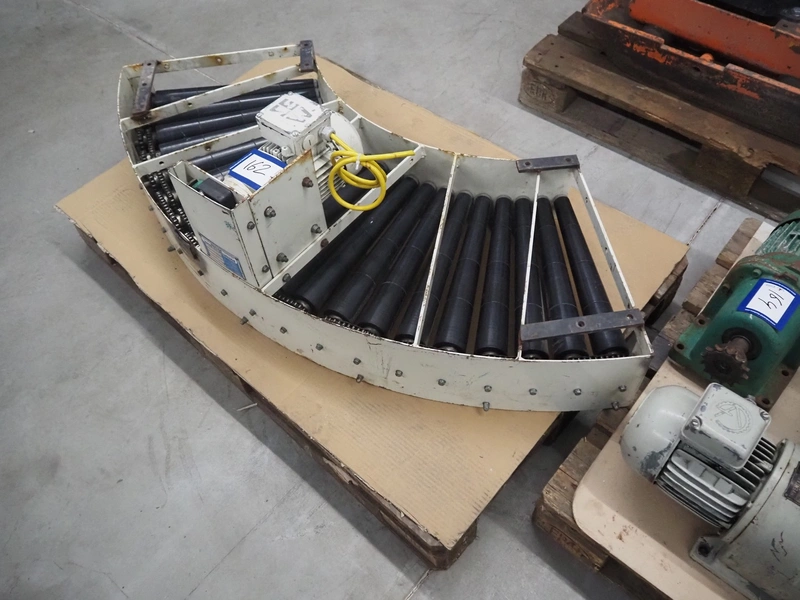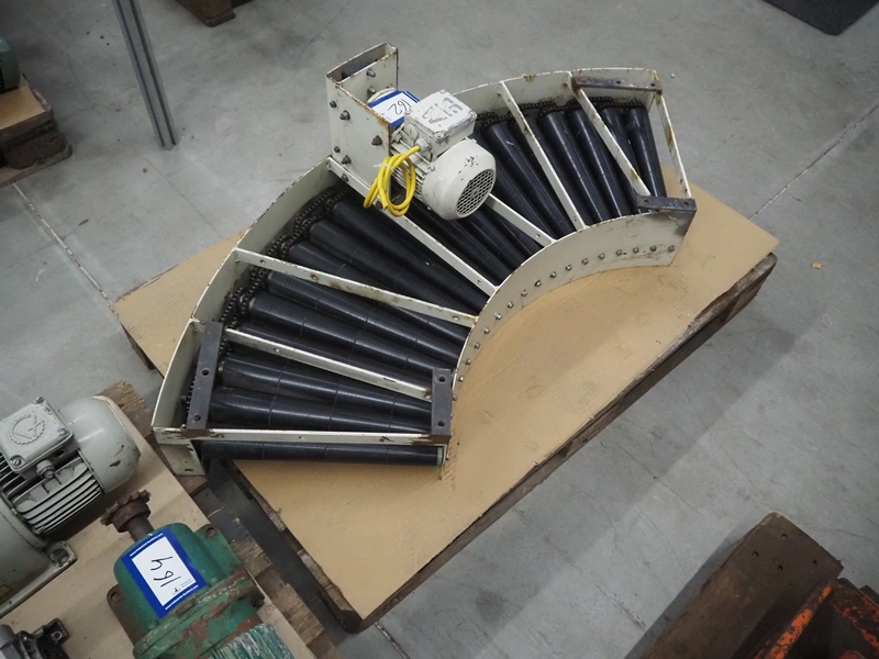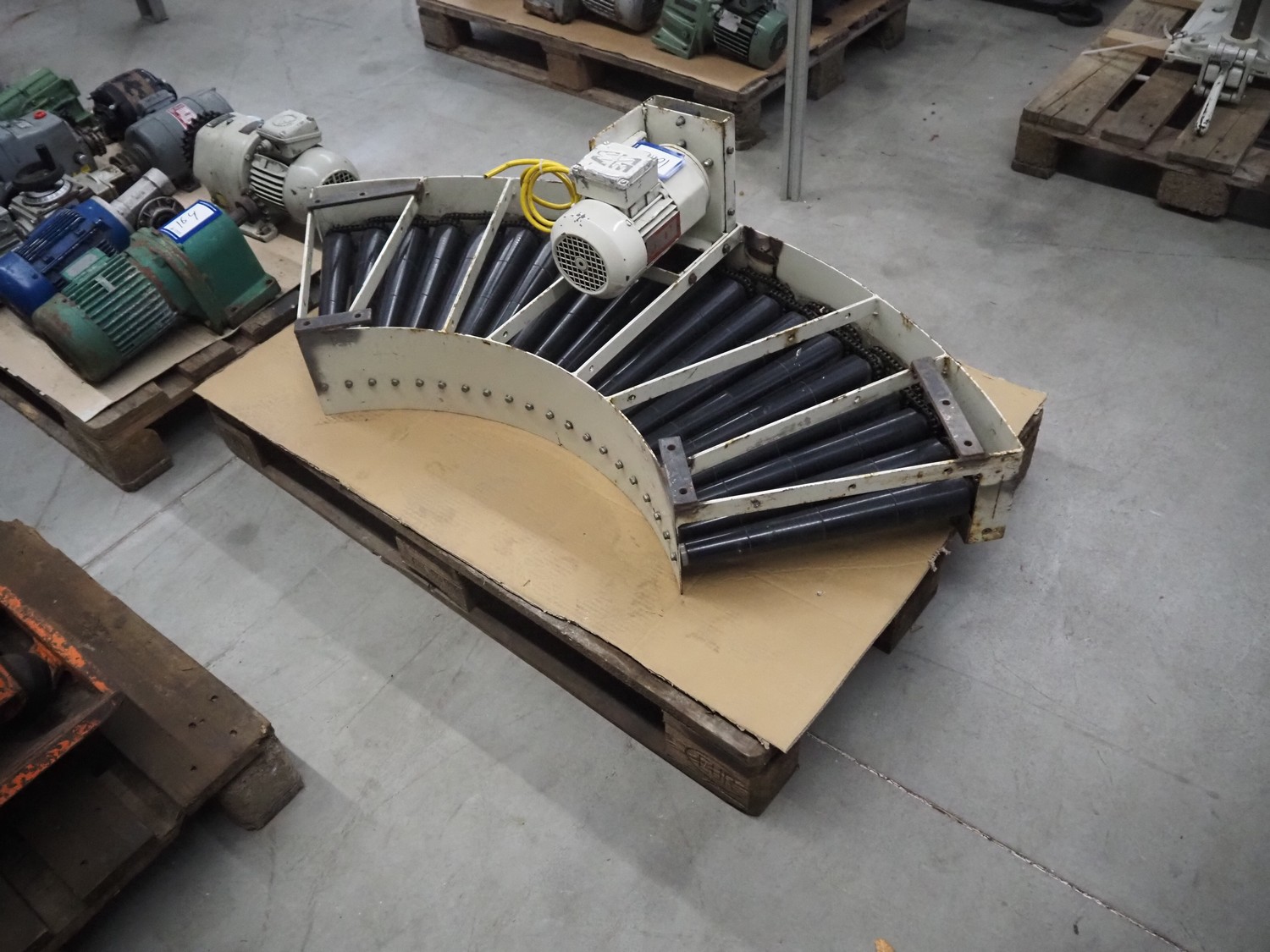 Polyketting 45° curve conveyor, steel frame, plastic rollers, roller width: 395 mm, total dimensions: 1300 mm x 800 mm x 450 mm.