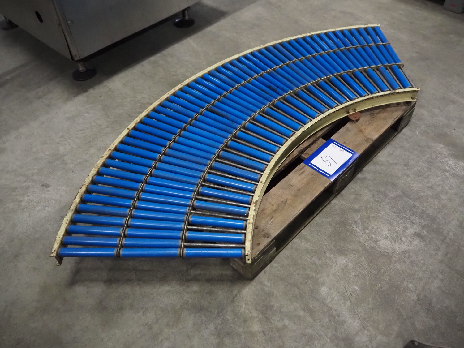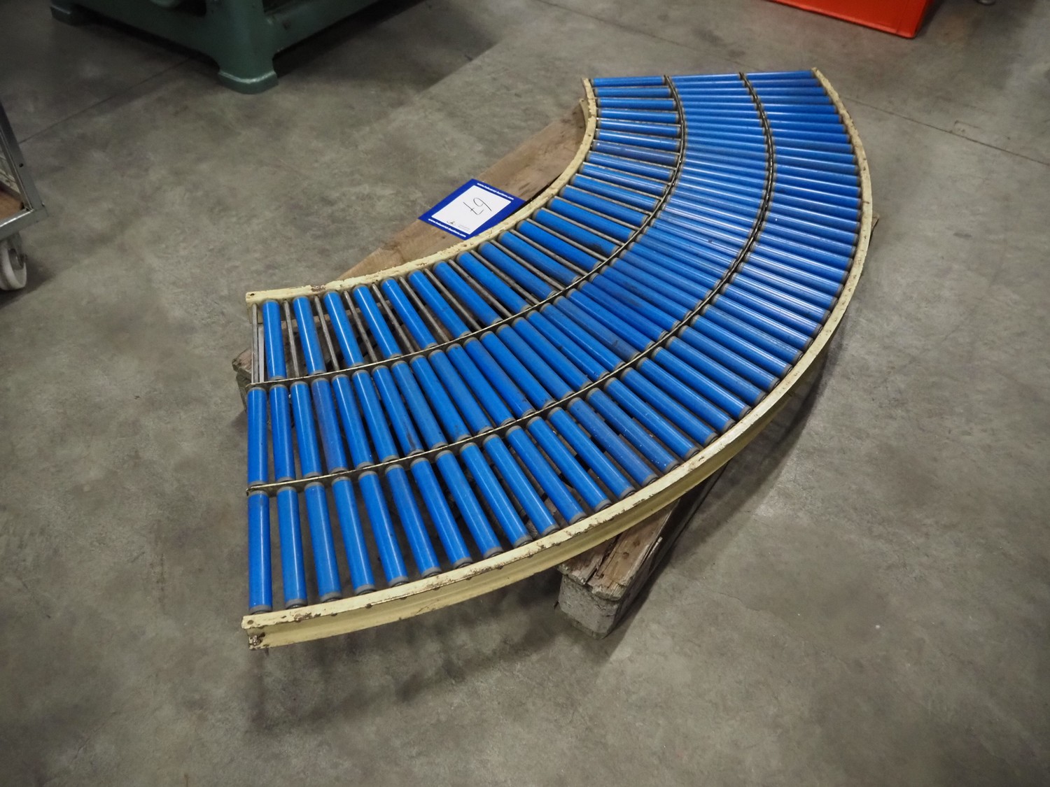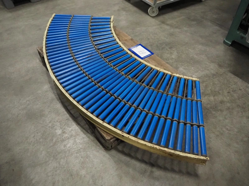 45° curve conveyor, plastic rollers, roller width: (3x) 200 mm, total roller width: 600 mm, total dimensions: 2010 mm x 650 mm x 100 mm.