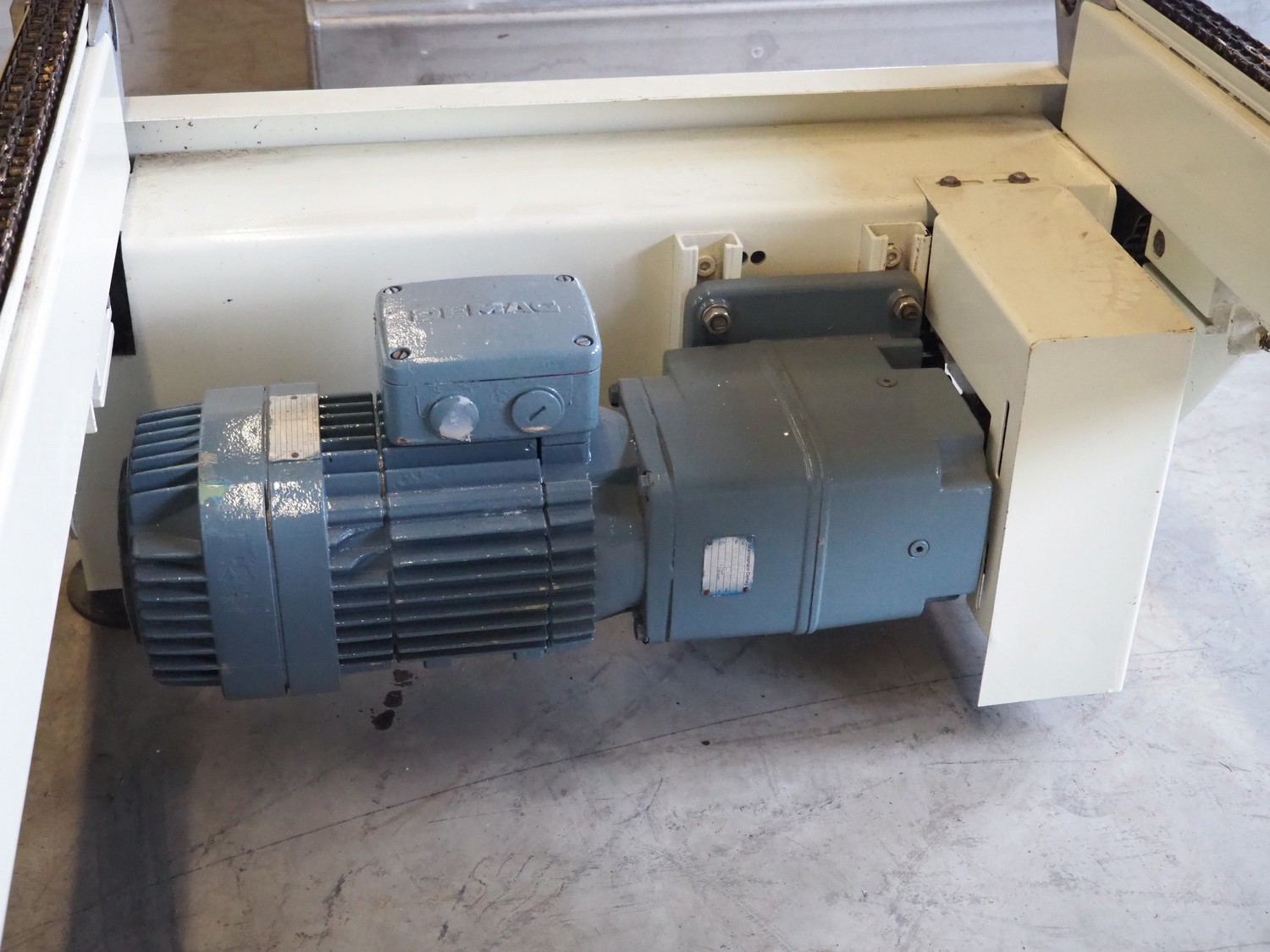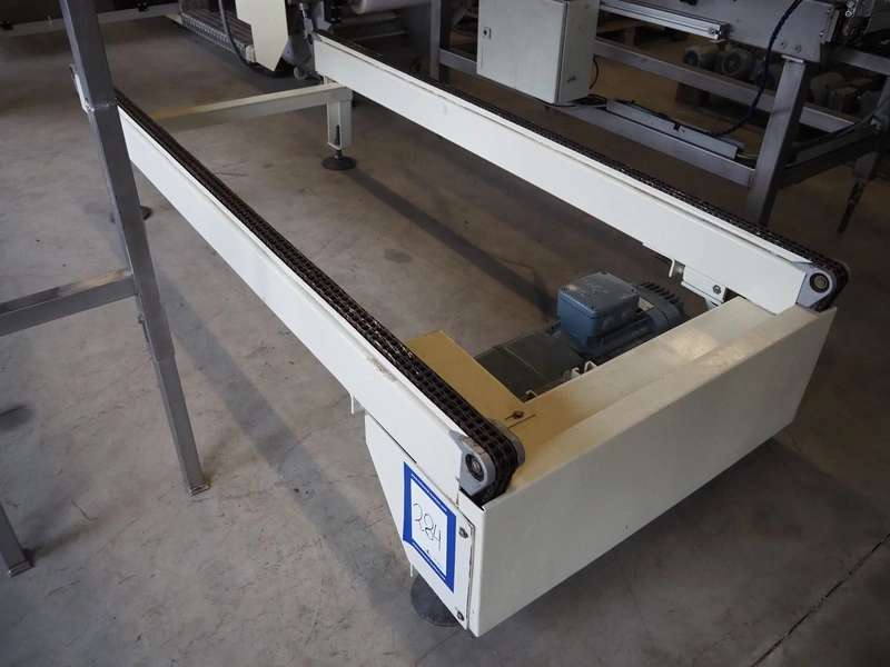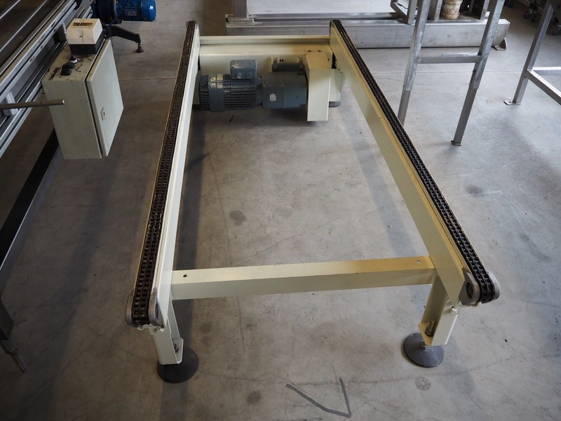 Chain conveyor, steel frame, steel chains.