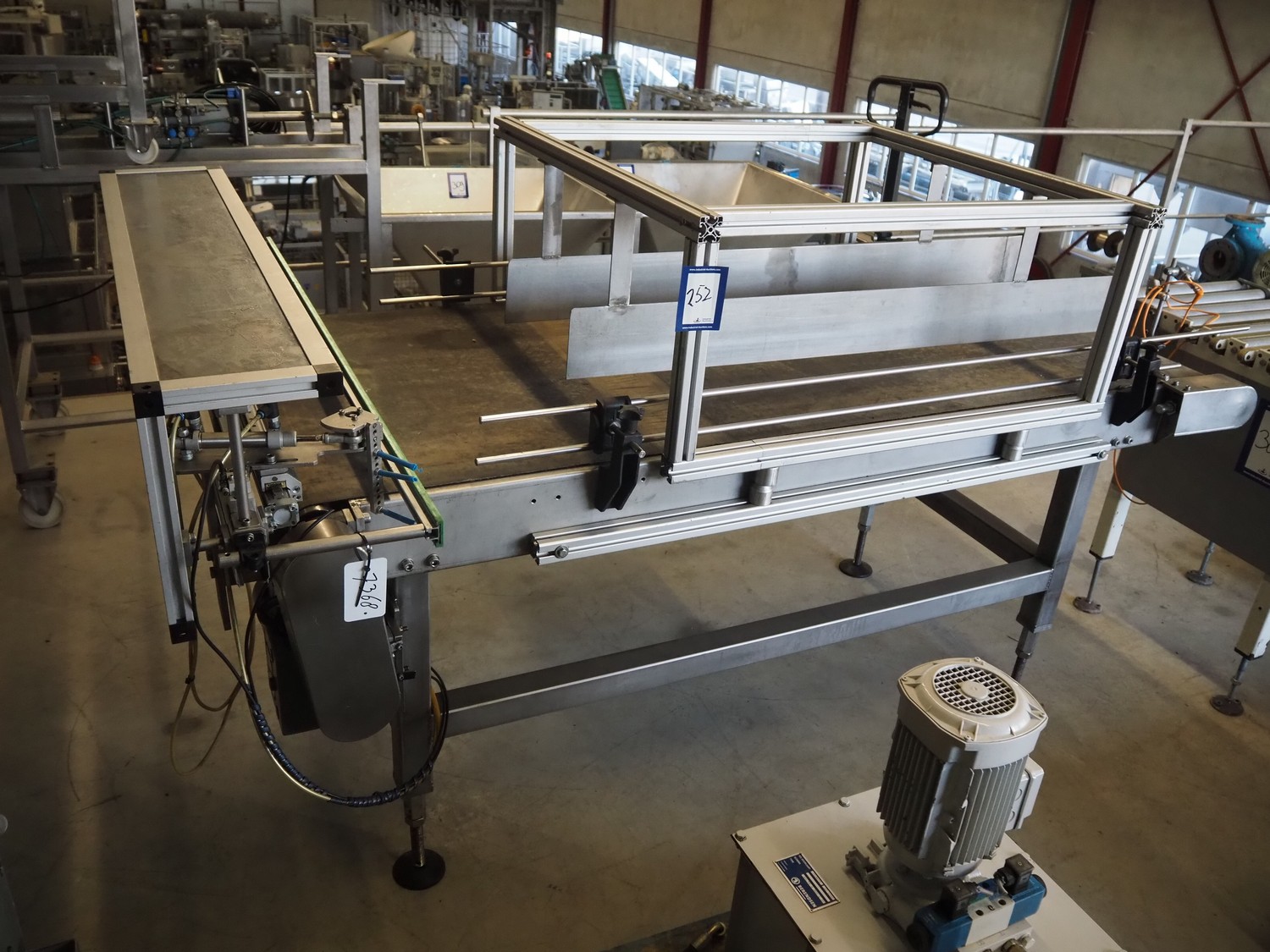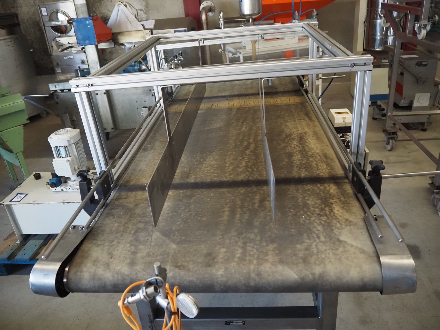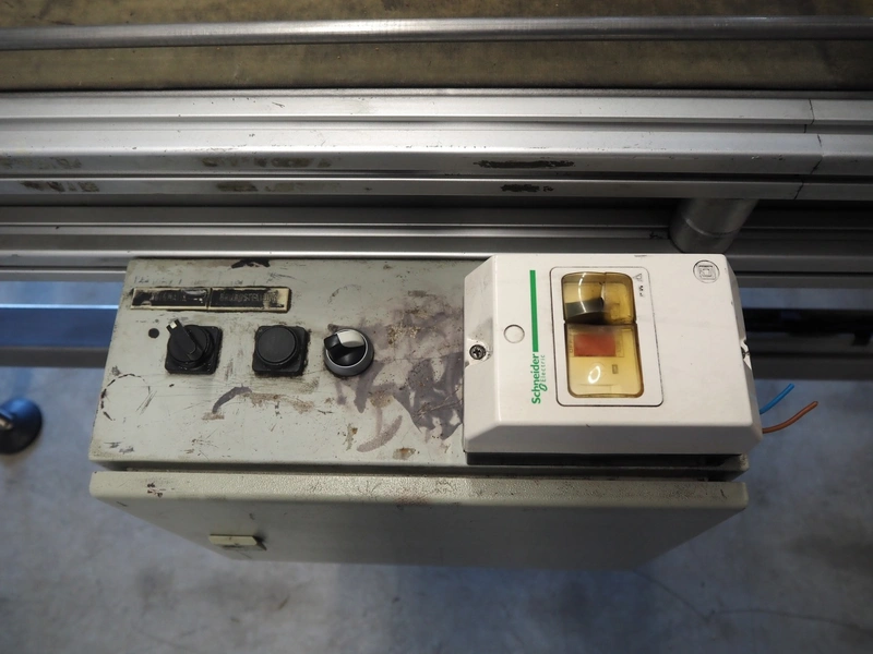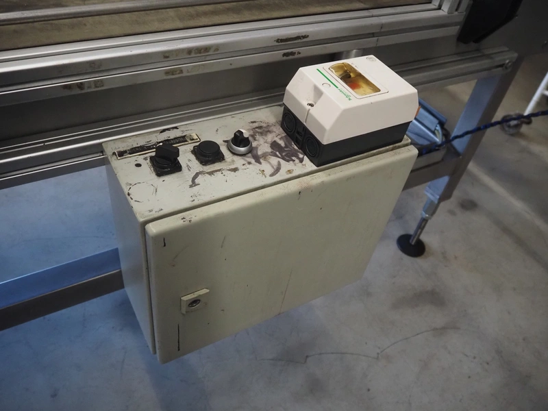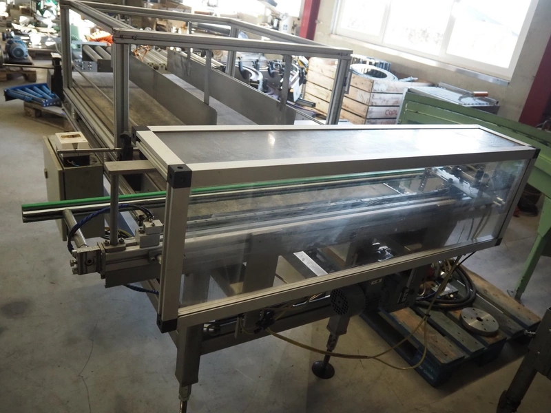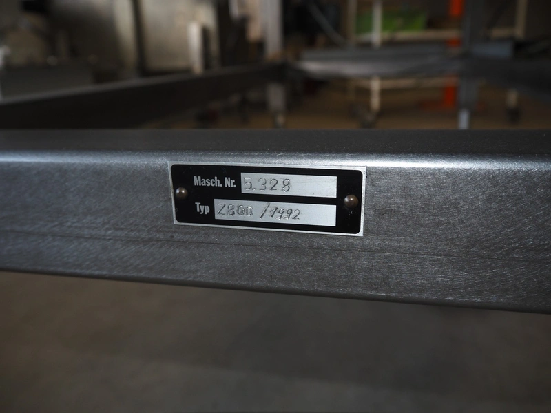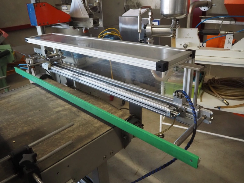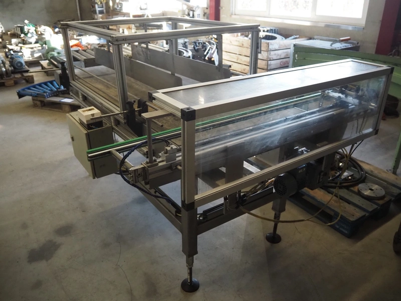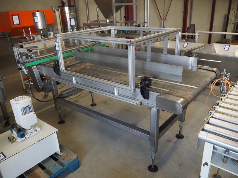 Transport belt with rejector, type: Z800 / 1992, serial number: 5.328, belt width: 800 mm, plastic belt, 3 lanes: 240 mm x 350 mm, 320 mm x 350 mm and 200 mm x 350 mm, total dimensions: 2200 mm x 1400 mm x 1300 mm.