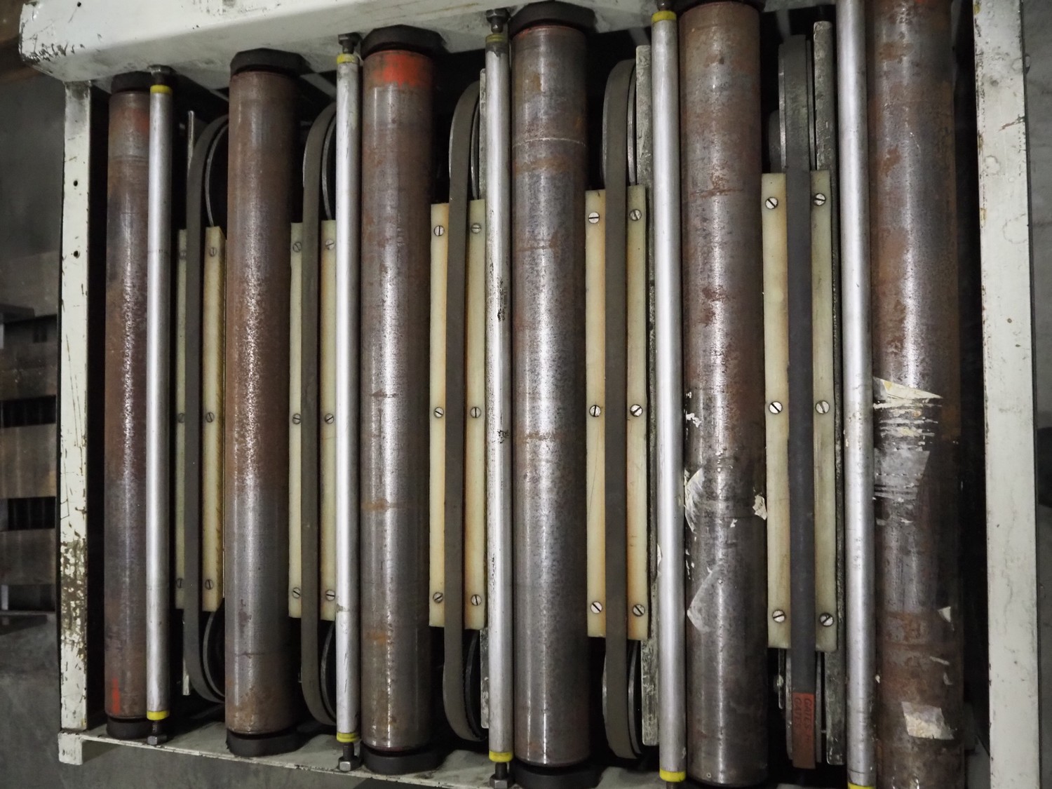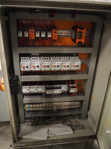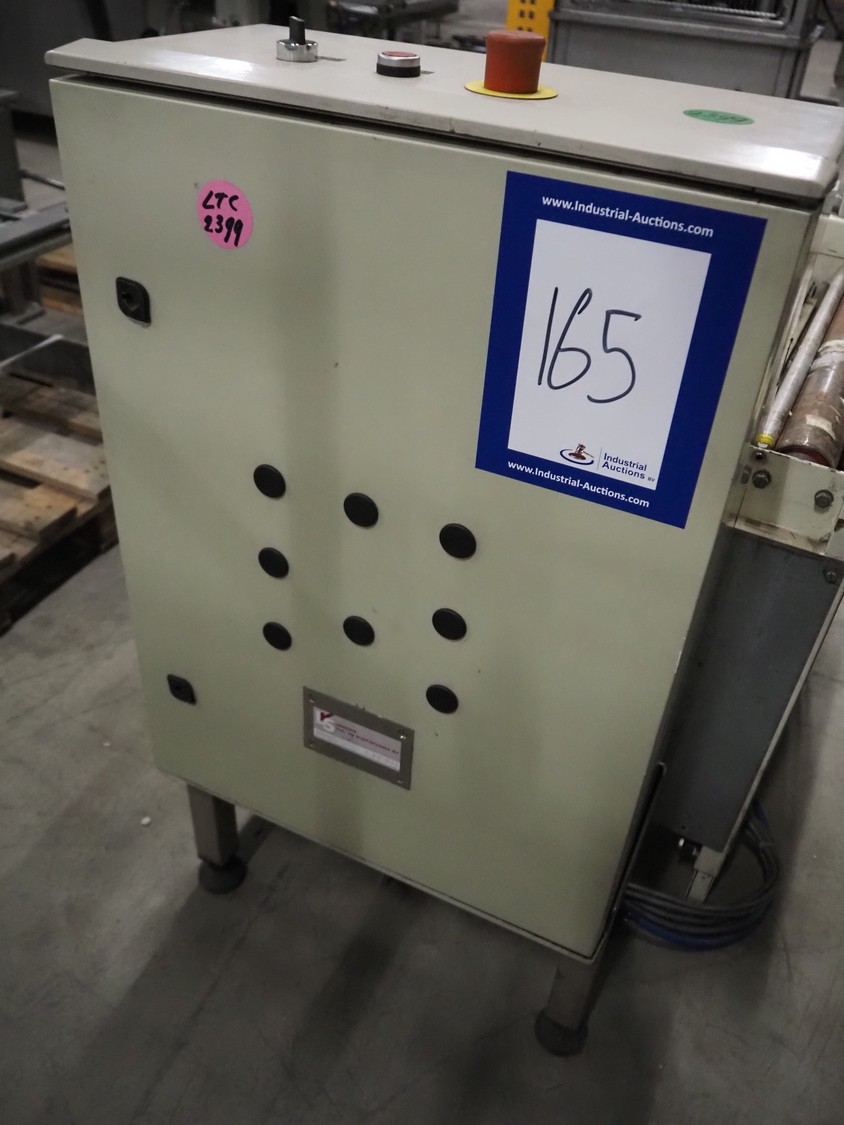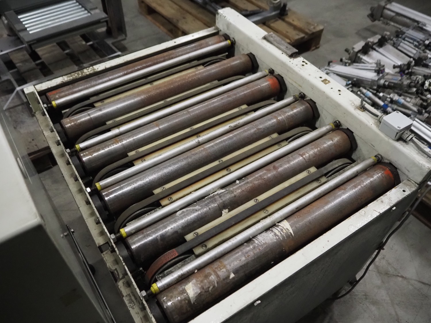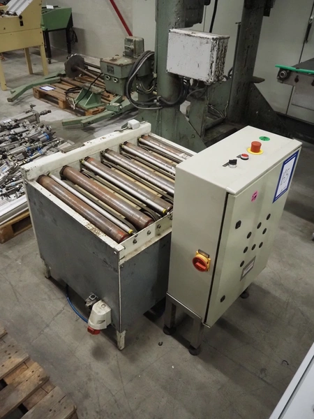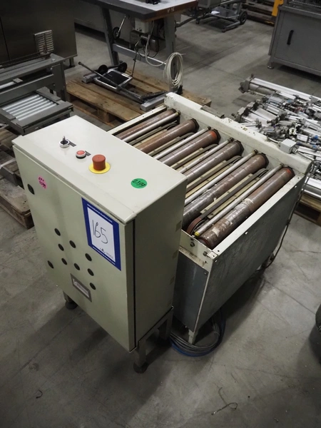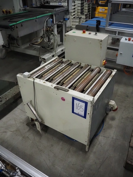 Steel electric roller conveyor, steel rollers, roller width: 600 mm, total dimensions: 850 mm x 1060 mm x 1060 mm.