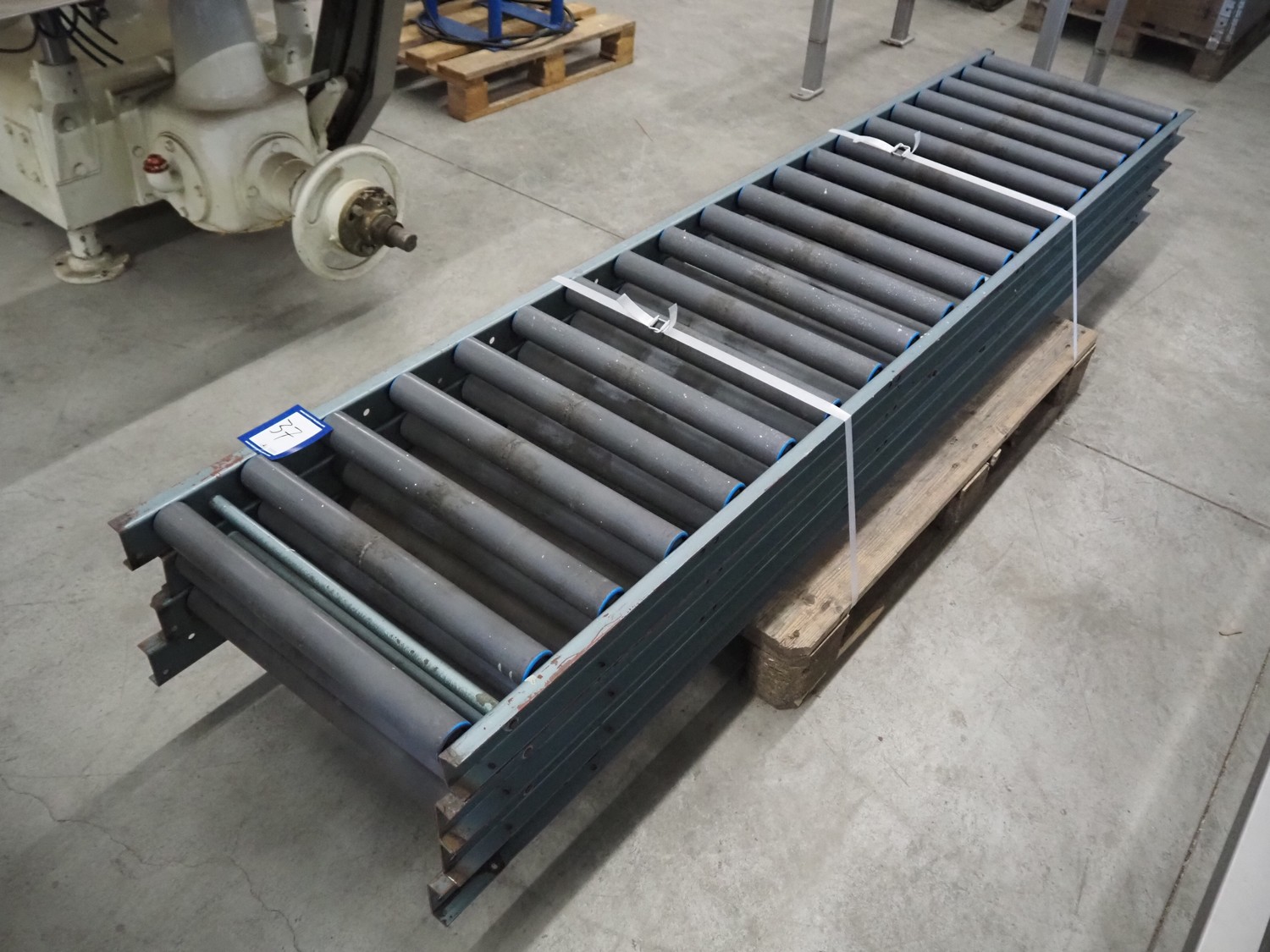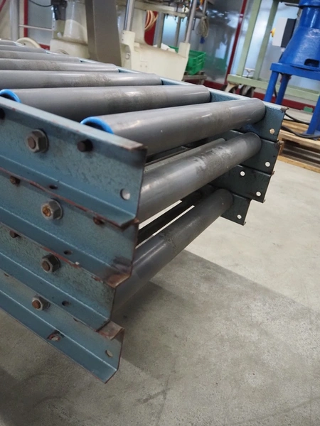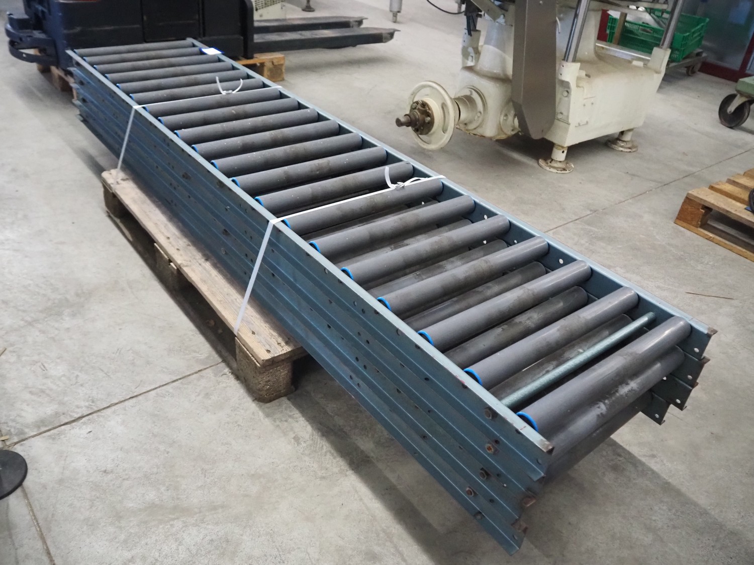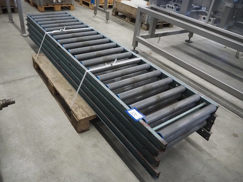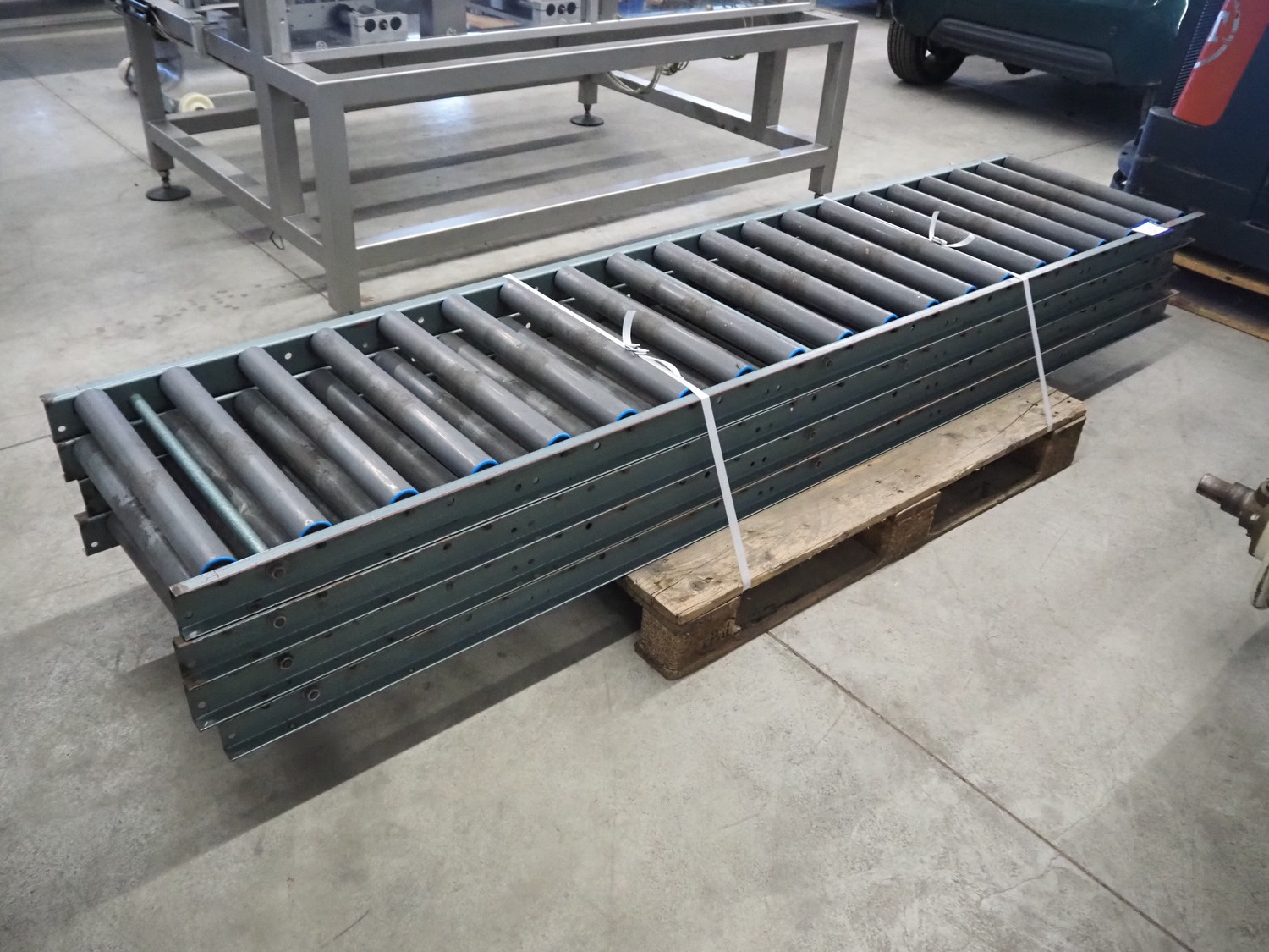 Pallet with 4 roller conveyors, steel frame, plastic rollers, roller width: 495 mm, length: (4x) 2470 mm, total dimensions: 2470 mm x 800 mm x 430 mm.