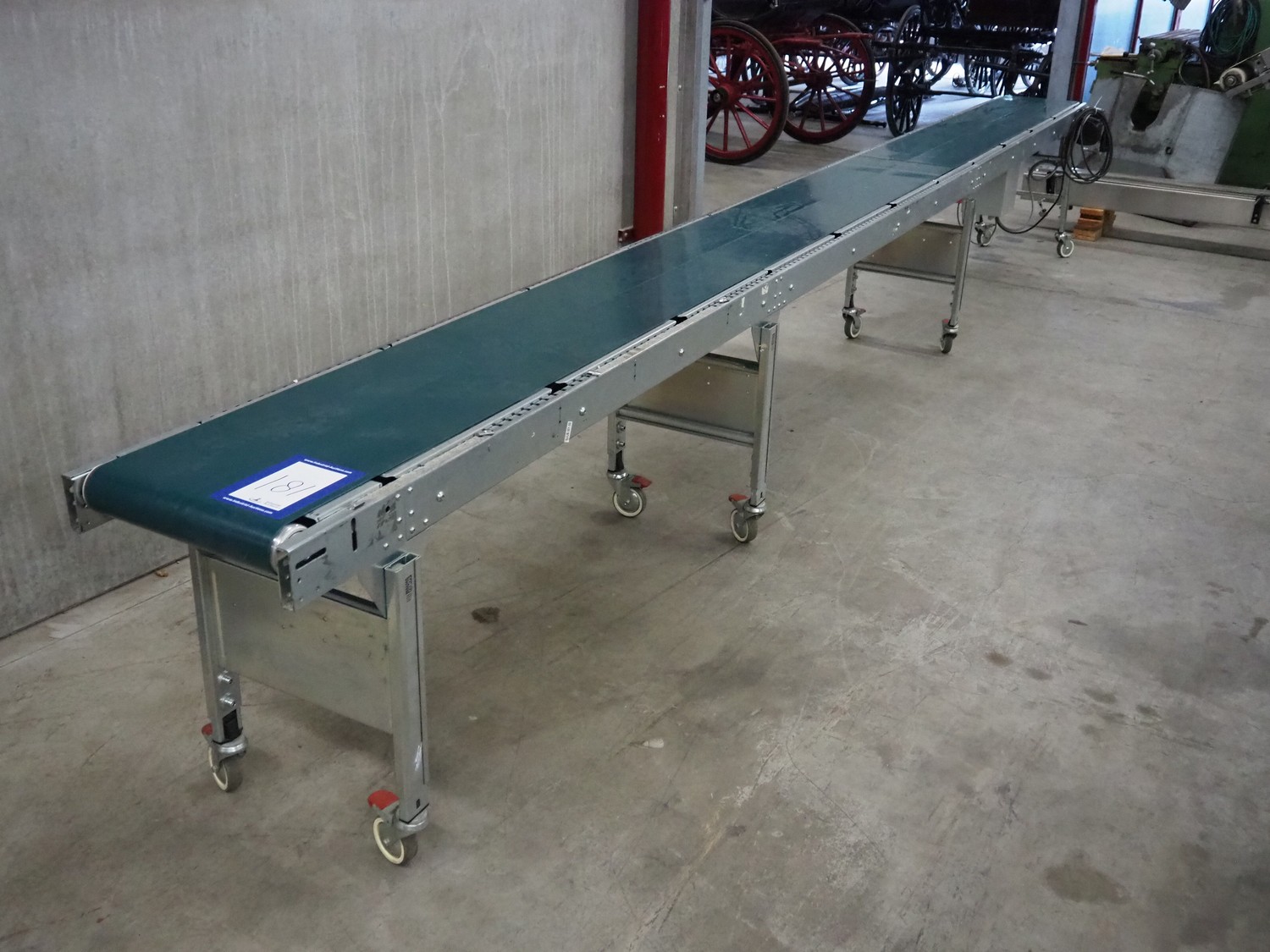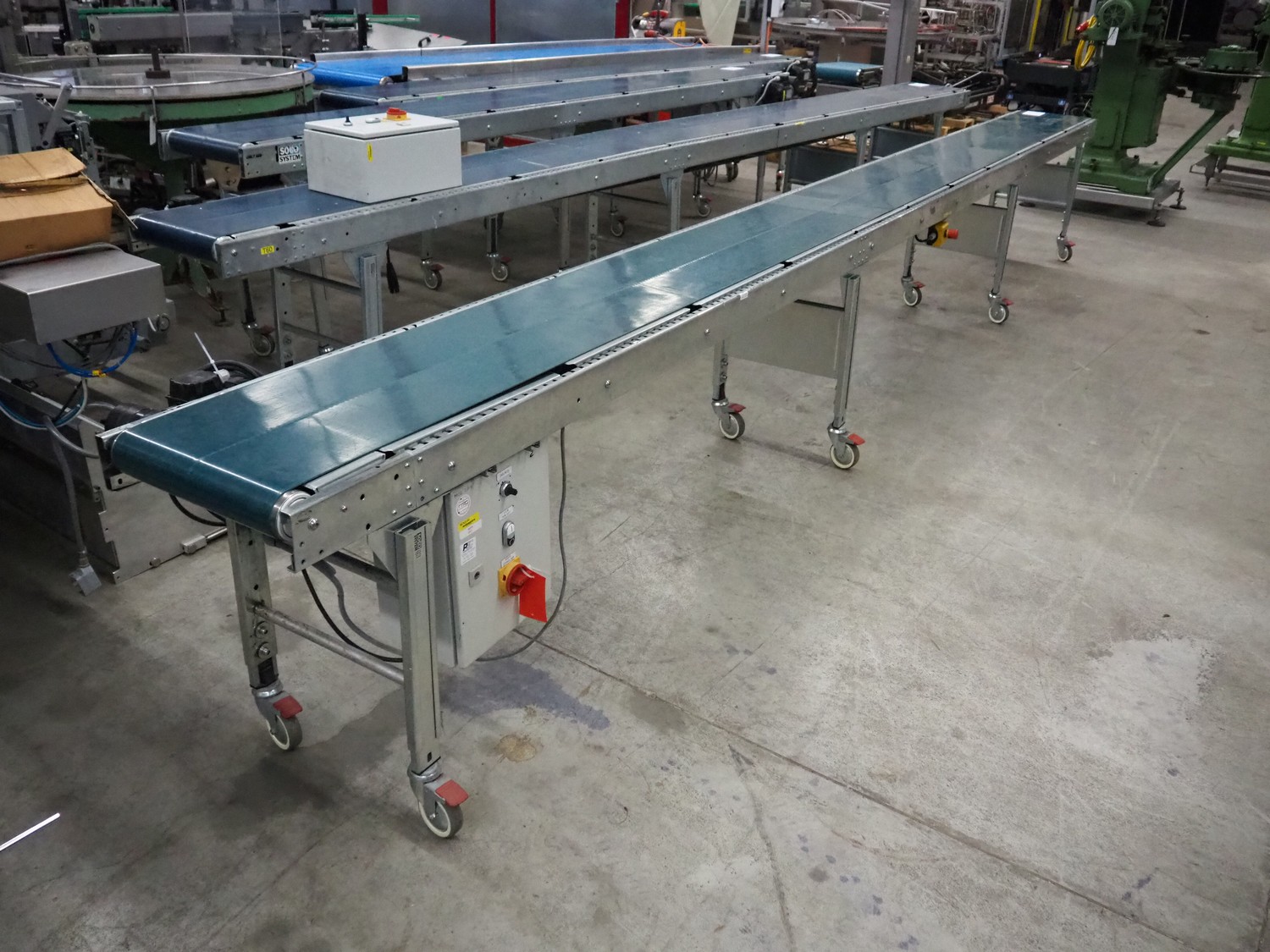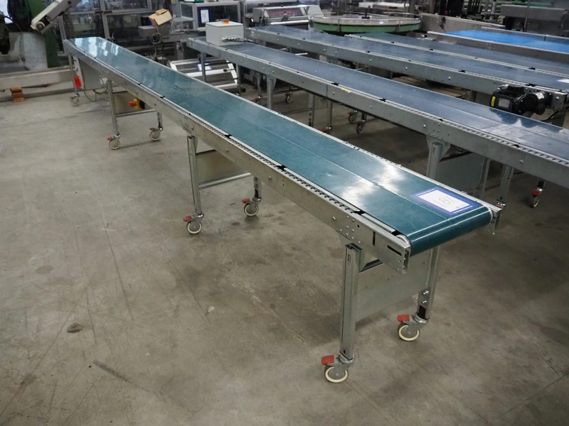 Soco System mobile transport belt, plastic belt, belt width: 380 mm, total dimensions: 6000 mm x 630 mm x 790 mm.