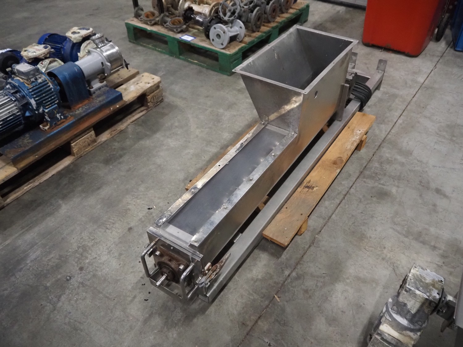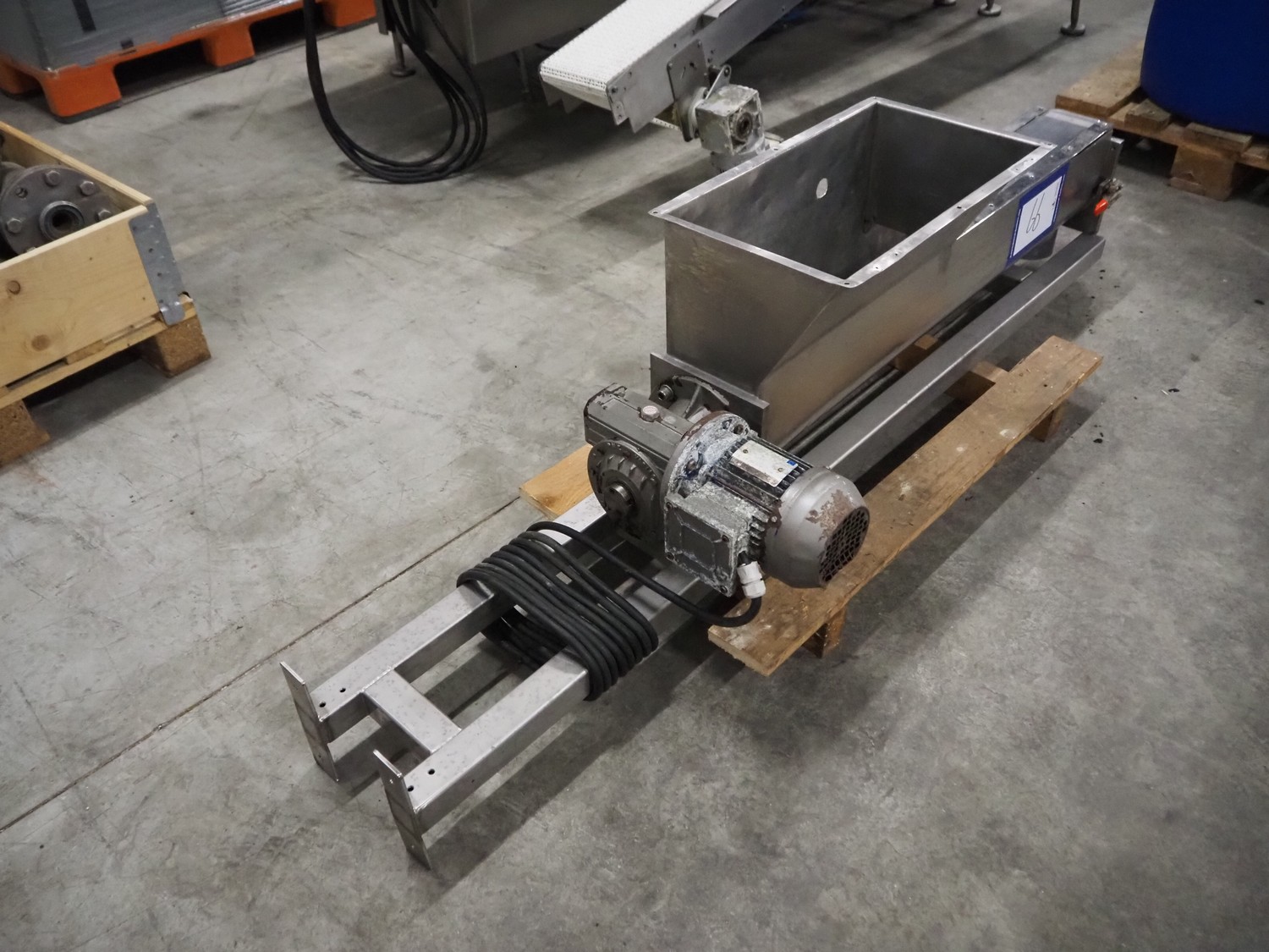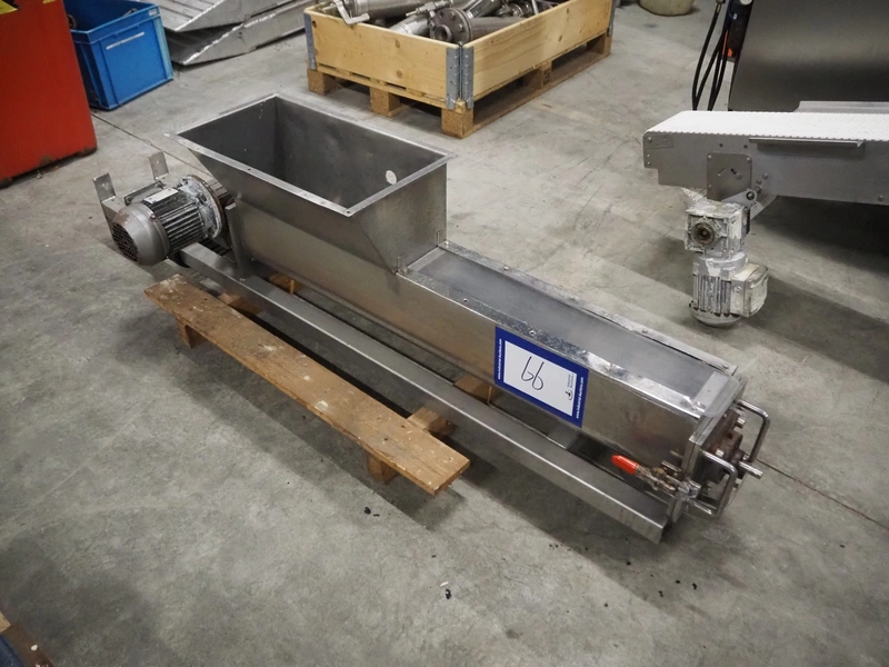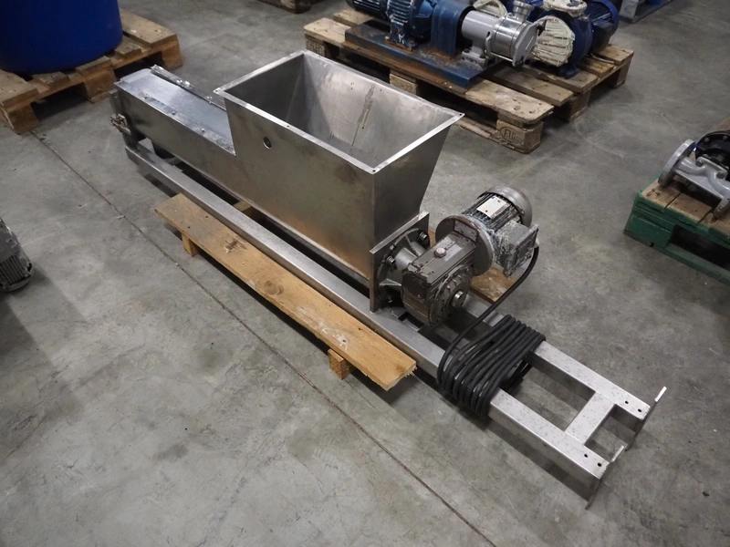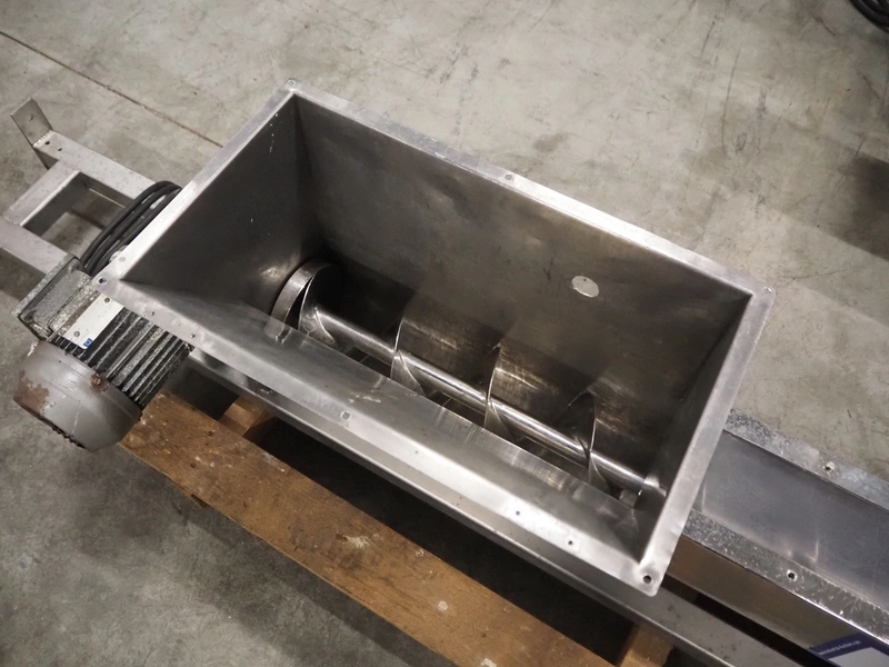 S/s screw, infeed clearance: 500 mm x 270 mm, diameter screw: Ø 150 mm, tier: 125 mm, total dimensions: 1900 mm x 430 mm x 460 mm.