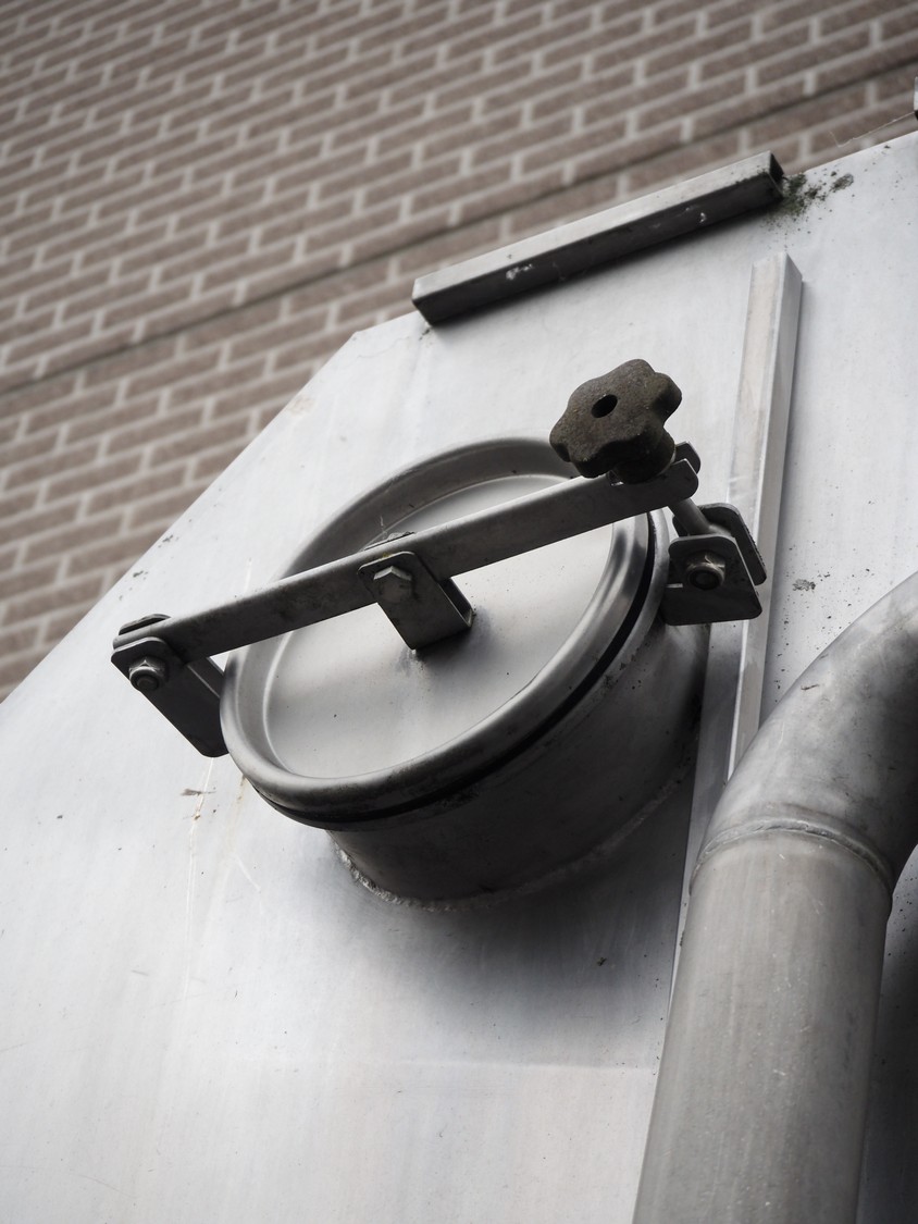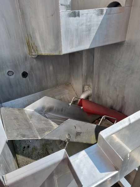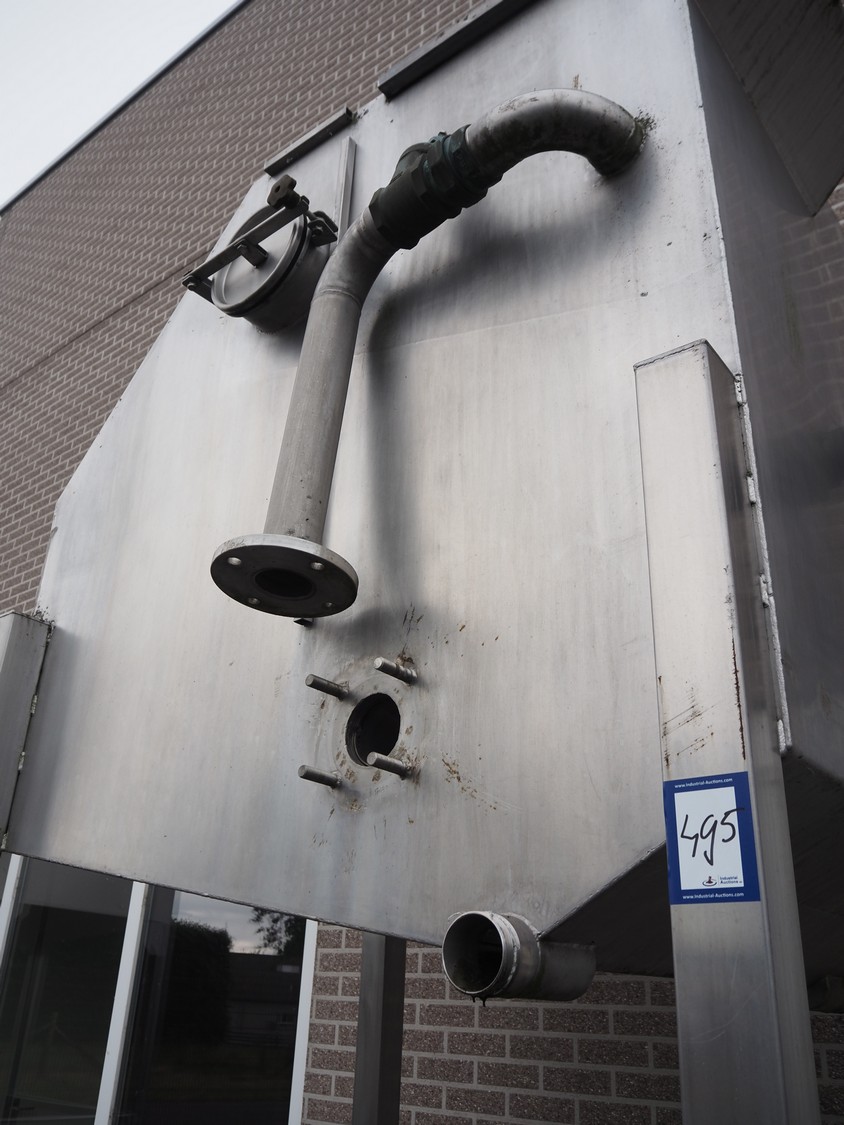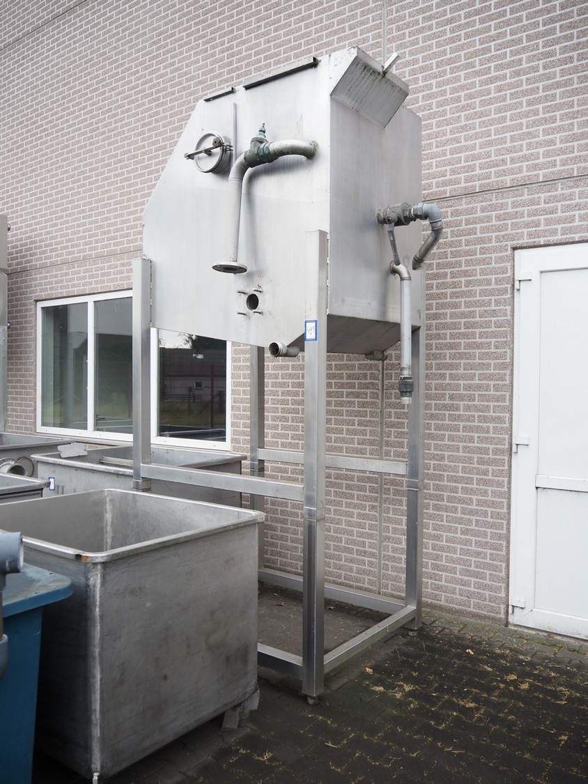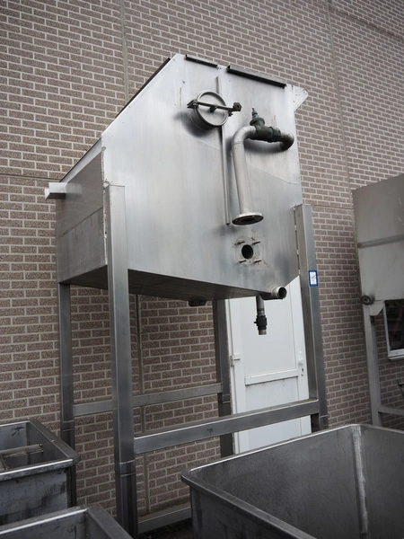 S/s screen filter, tank dimensions: 1500 mm x 1000 mm x 1500 mm, total dimensions: 1900 mm x 1300 mm x 3250 mm. filter screen is missing.