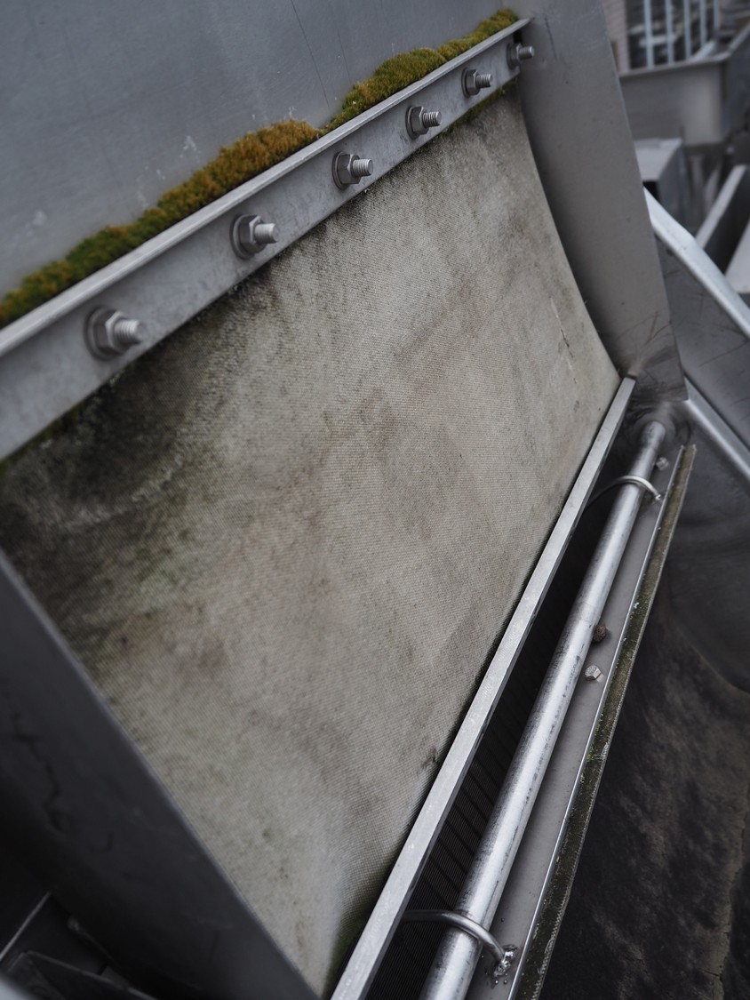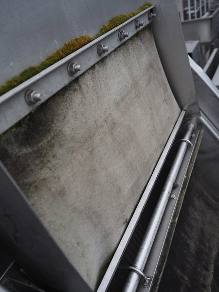 Dorr oliver screen filter, working width: 600 mm, working height: 1840 mm, total dimensions: 1900 mm x 2650 mm x 3400 mm.