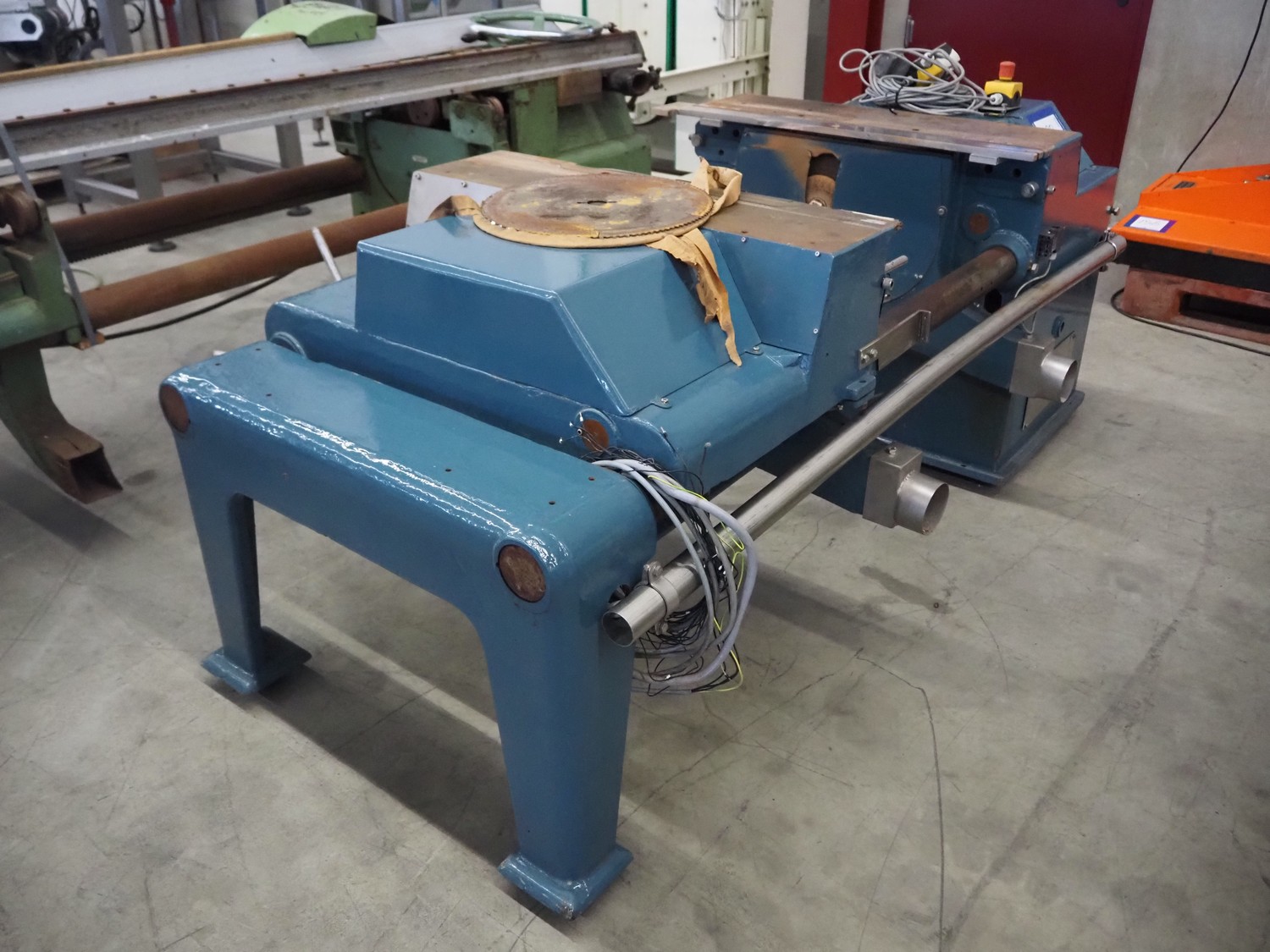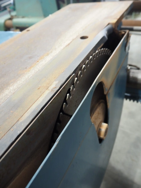 Scheppach saw table, with 2 circle saws, width adjustable, diameter saw: 395 mm, total dimensions: 2300 mm x 1300 mm x 850 mm.