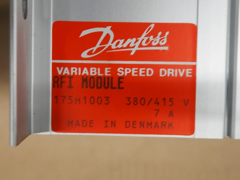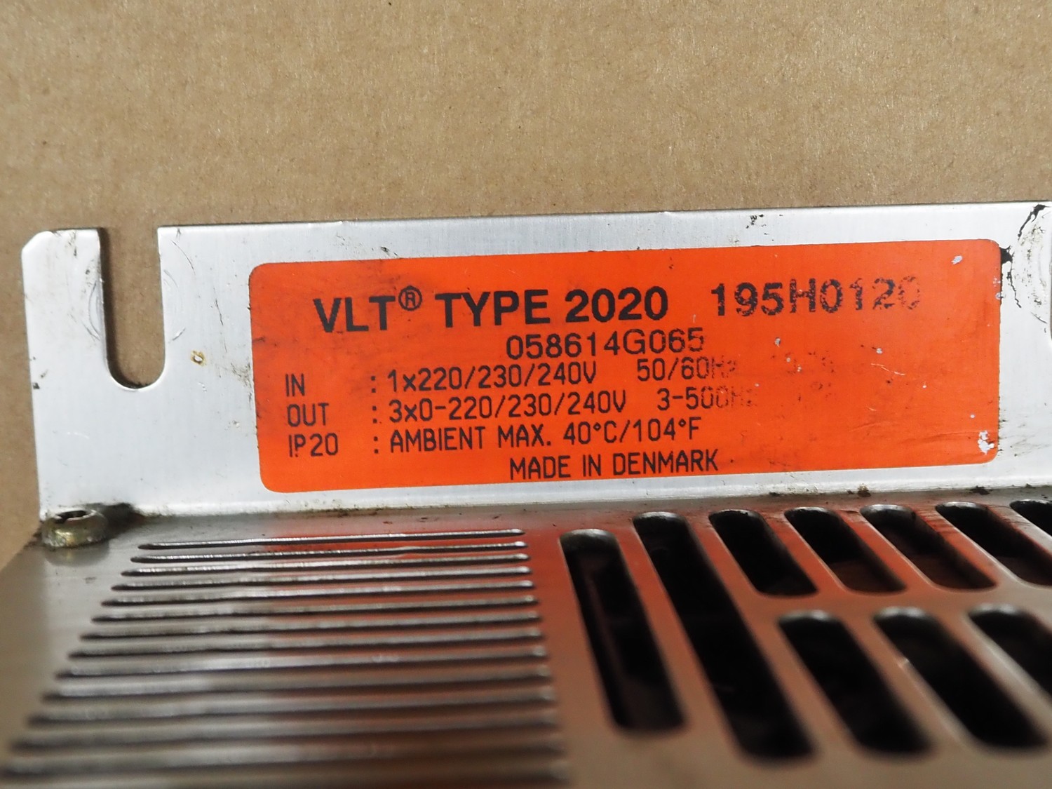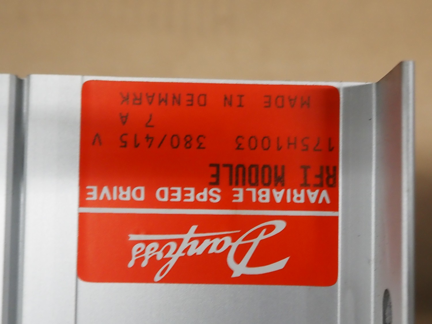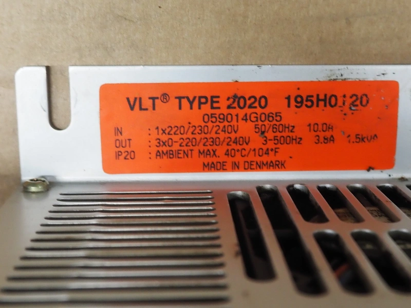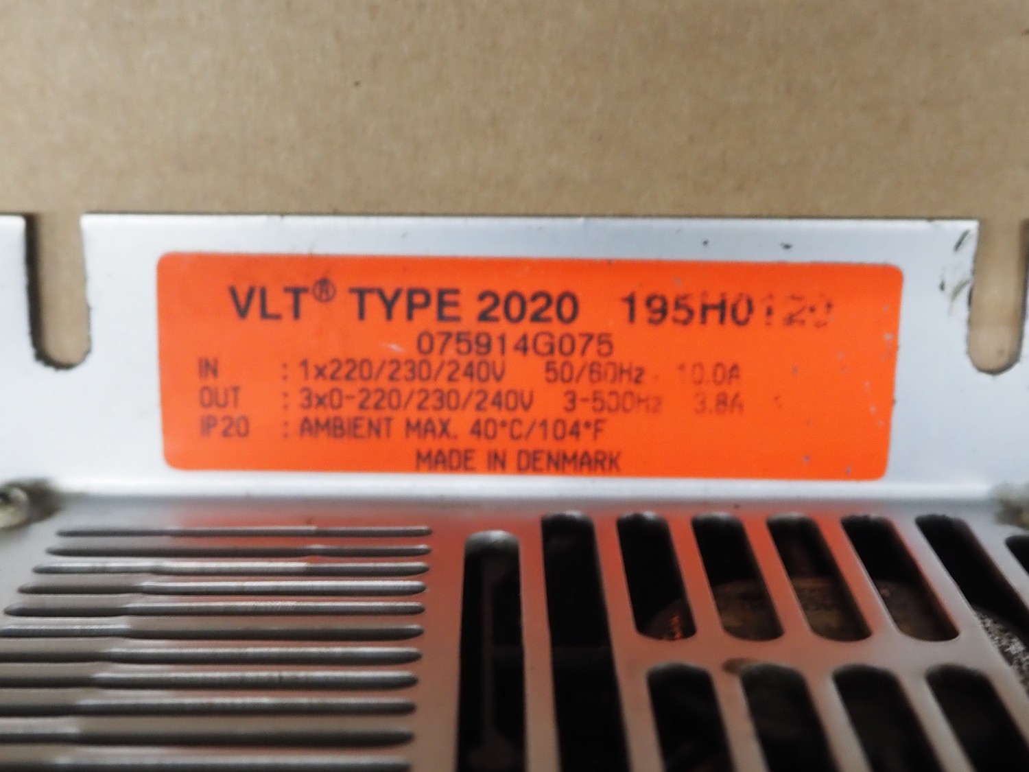 7 Danfoss frequency converters, (1x) type: 3002, 380-415 V, dimensions: 280 mm x 300 mm x 180 mm, (1x) type: 3003, 380-415 V, 280 mm x 300 mm x 180 mm, (1x) type: 3003, 380-415 V, dimensions: 280 mm x 420 mm x 180 mm,(4x) type: 2020, 220/230/240 V, 50/60 Hz, 10 A, dimensions: (4x) 110 mm x 260 mm x 180 mm.