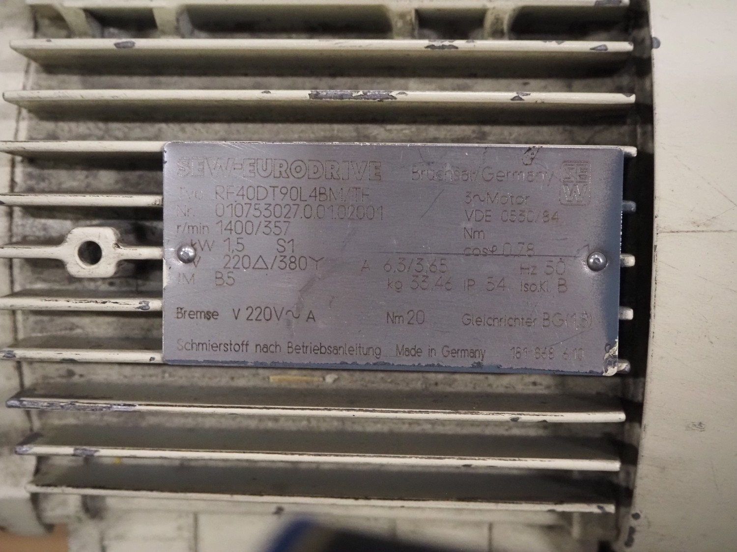 Pallet with 6 SEW Eurodrive motors, dimensions: 1200 mm x 1000 mm x 440 mm.