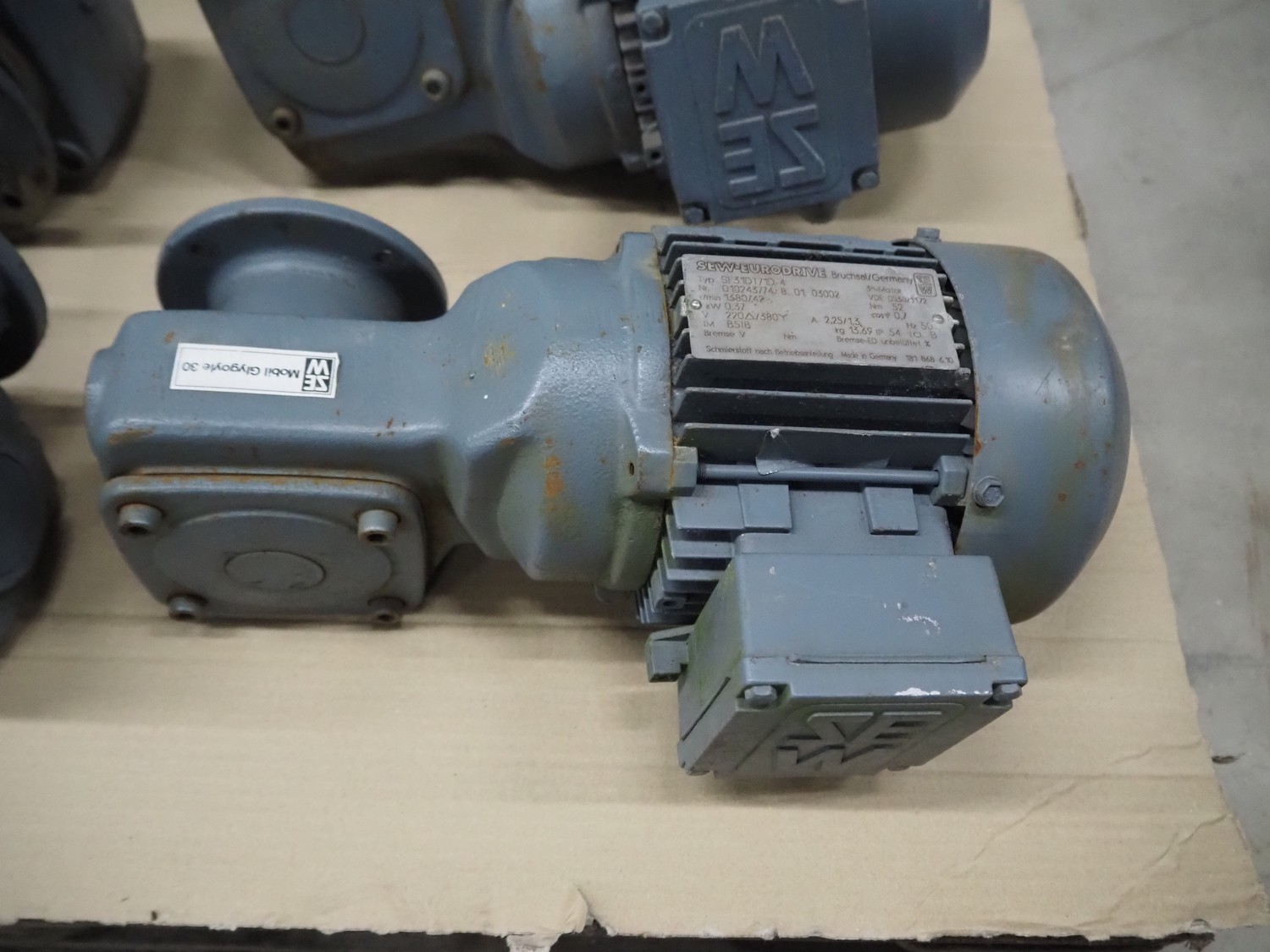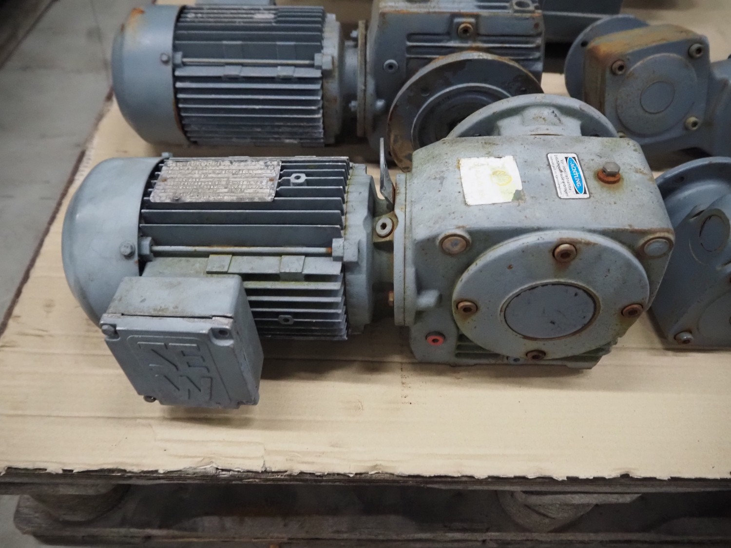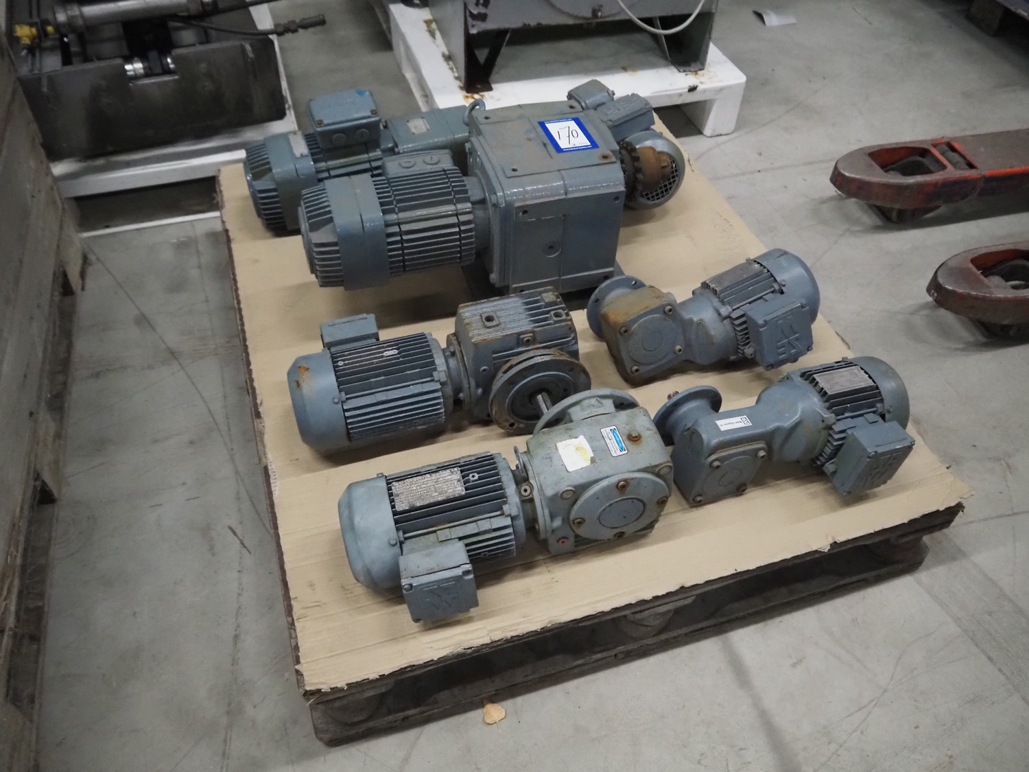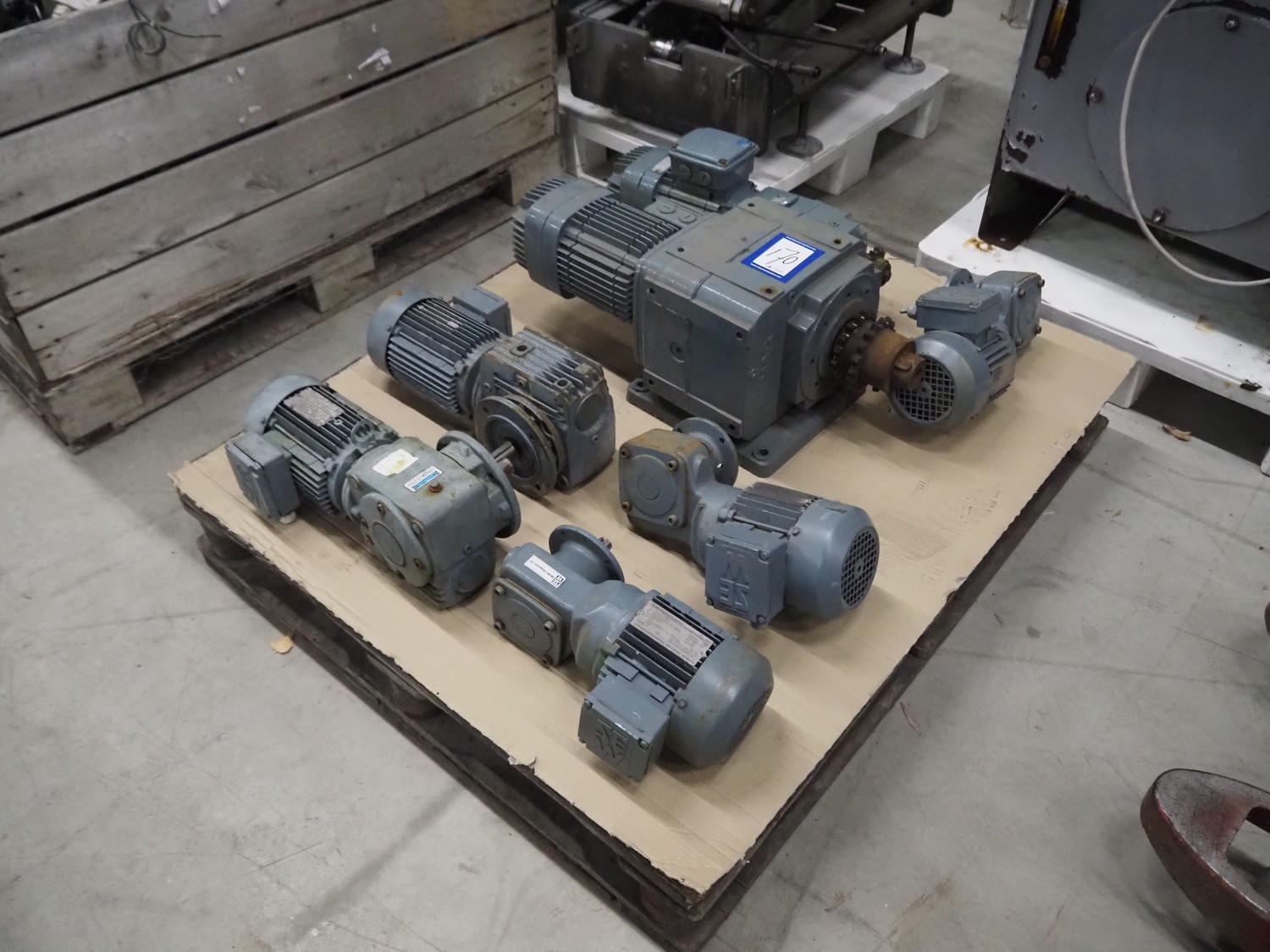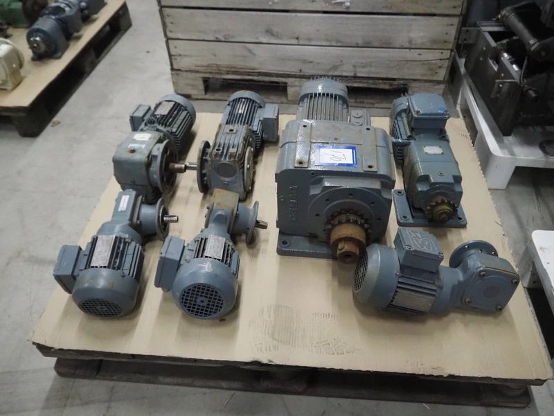 Pallet with 7 SEW Eurodrive motors, dimensions: 1200 mm x 800 mm x 450 mm.