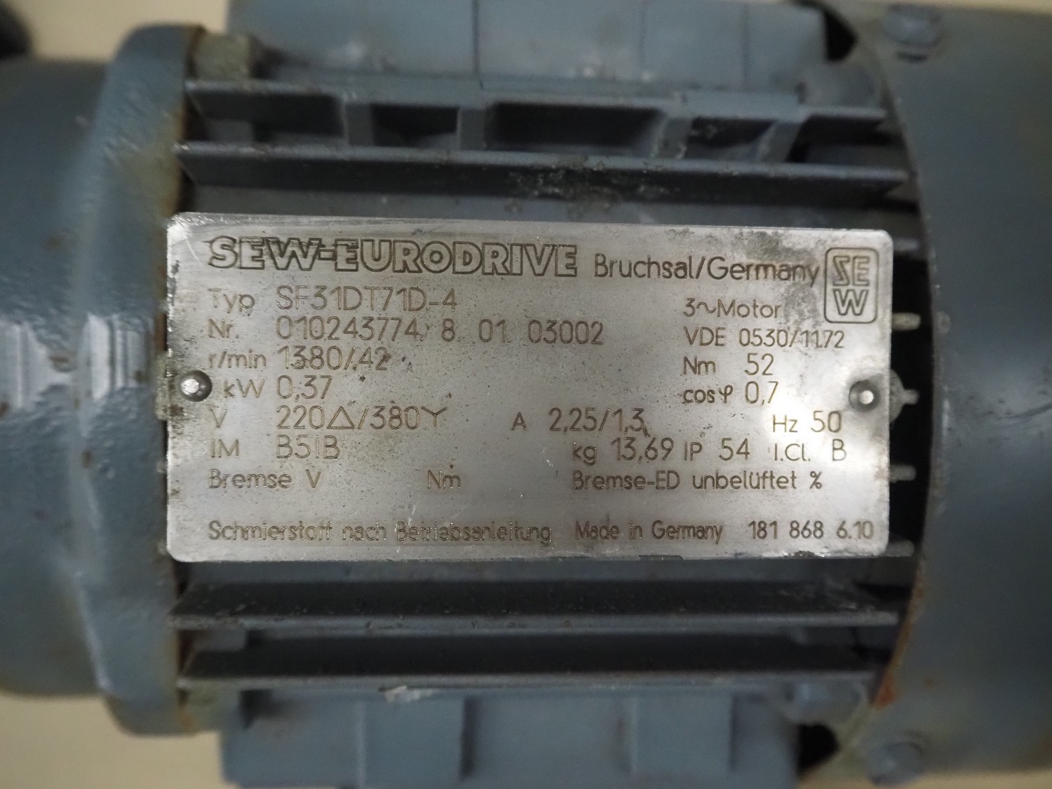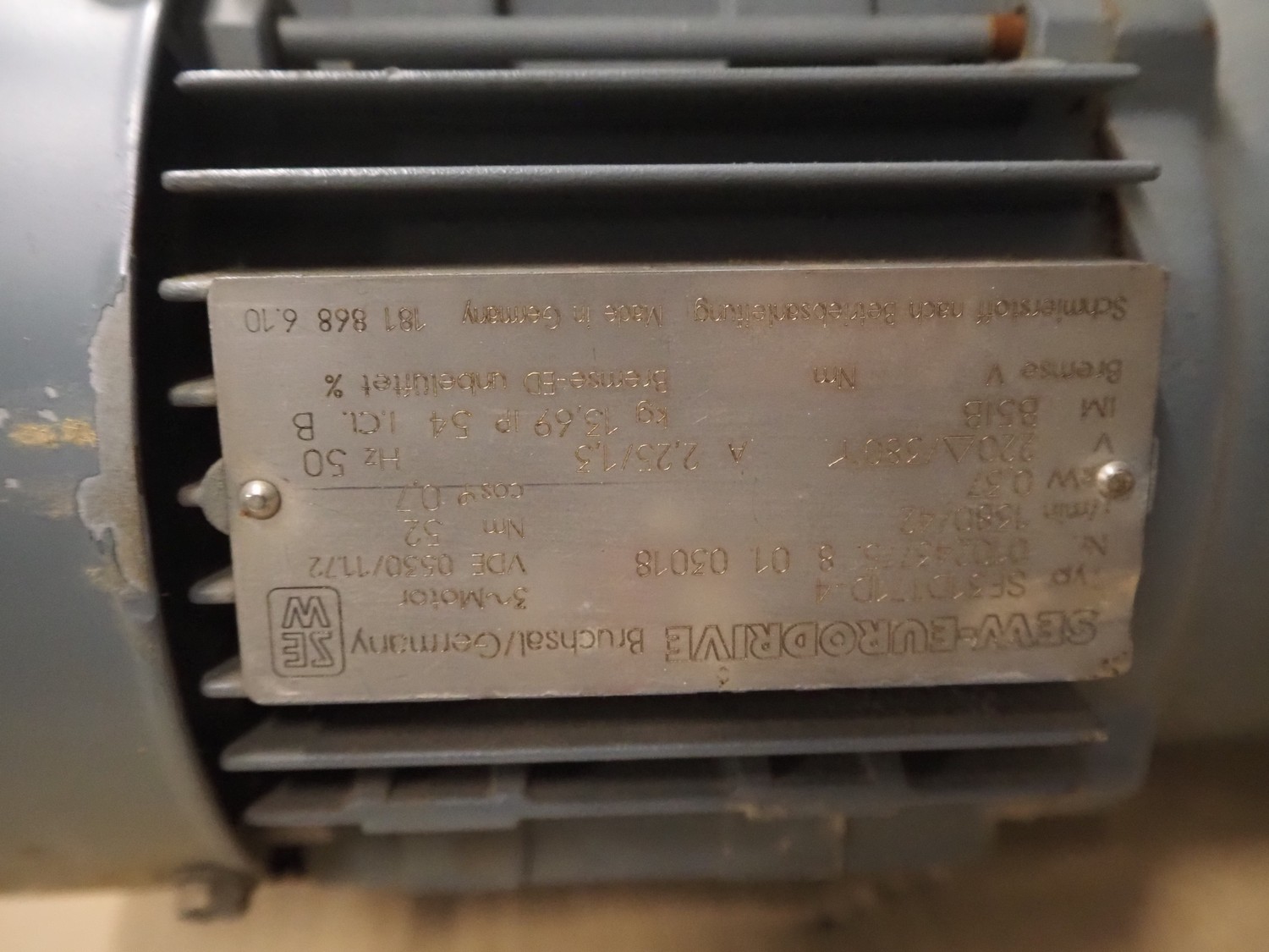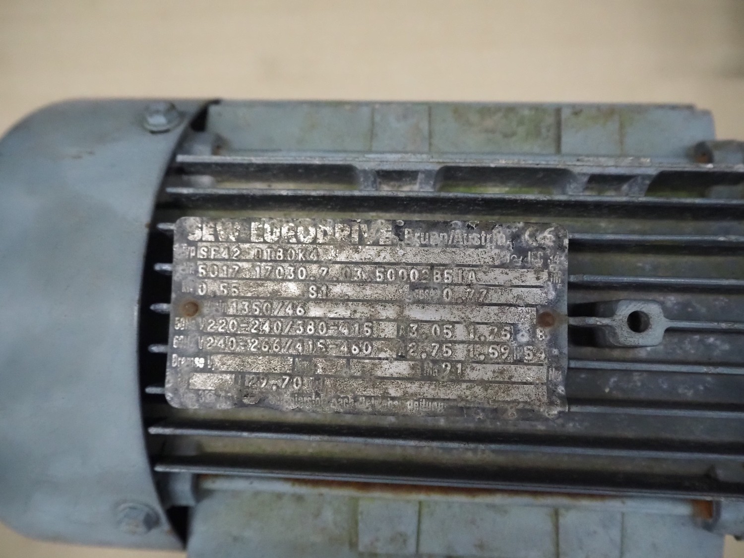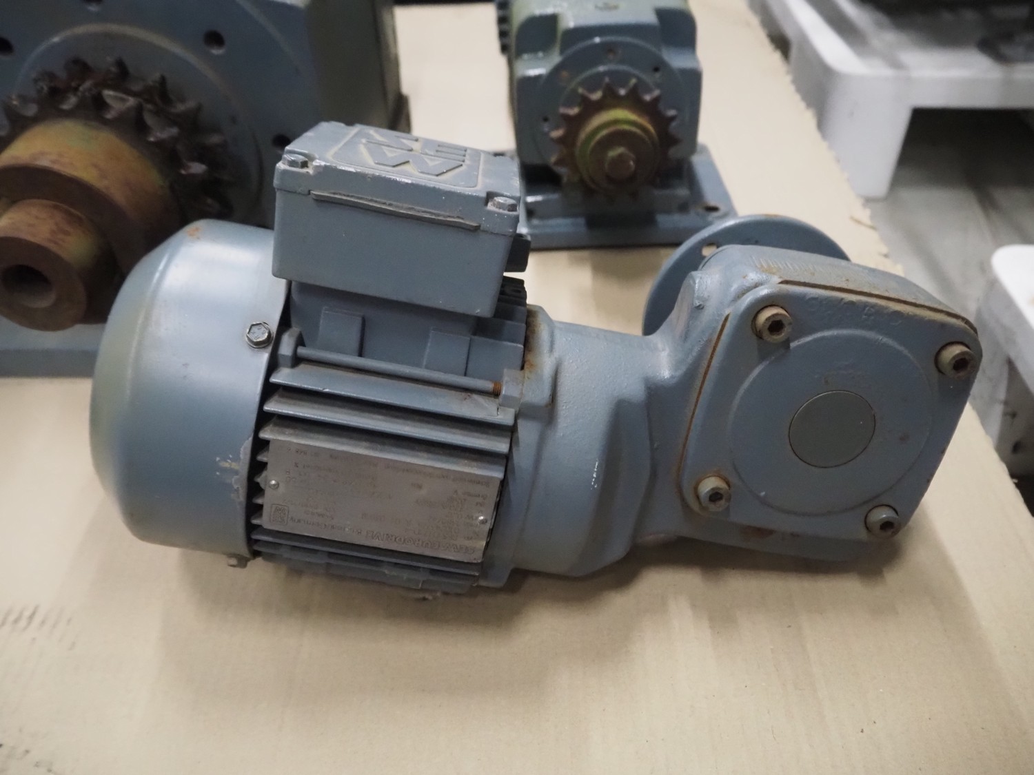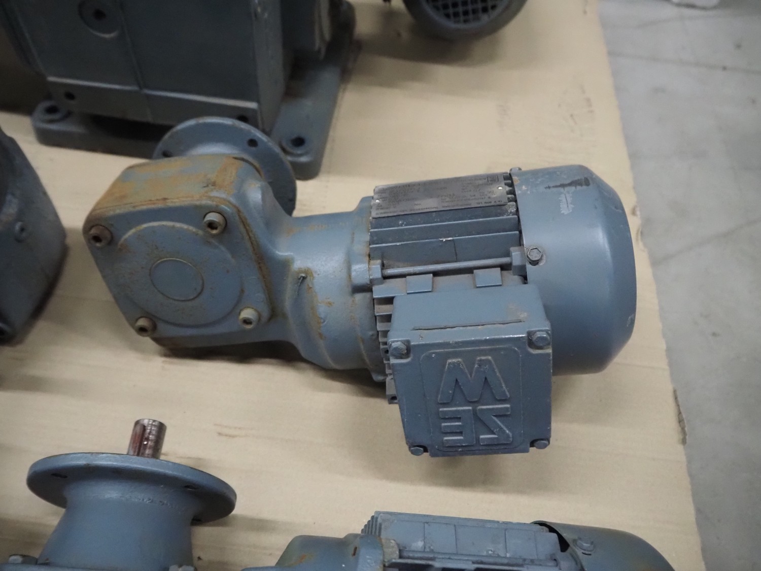 Pallet with 7 SEW Eurodrive motors, dimensions: 1200 mm x 800 mm x 450 mm.