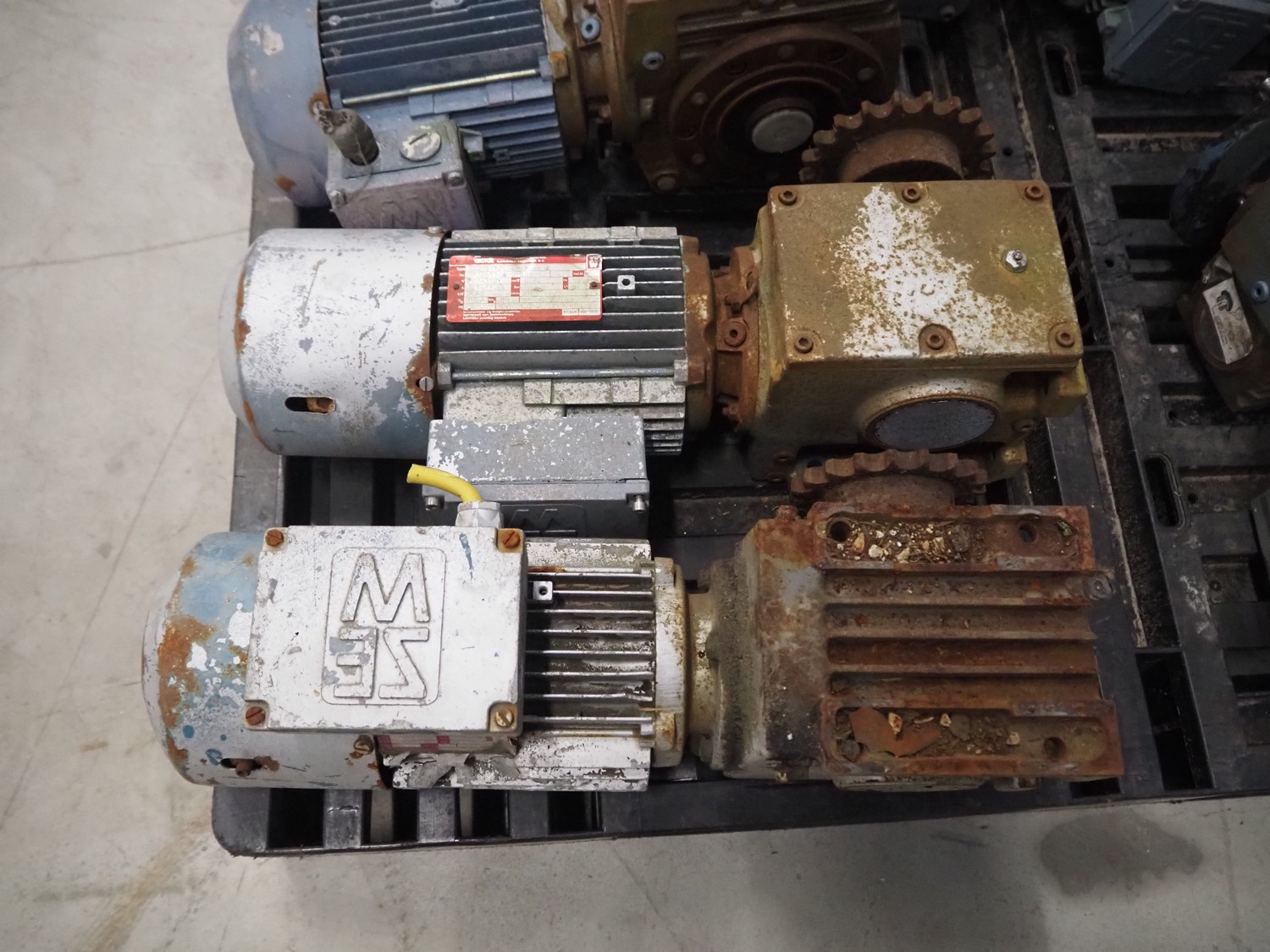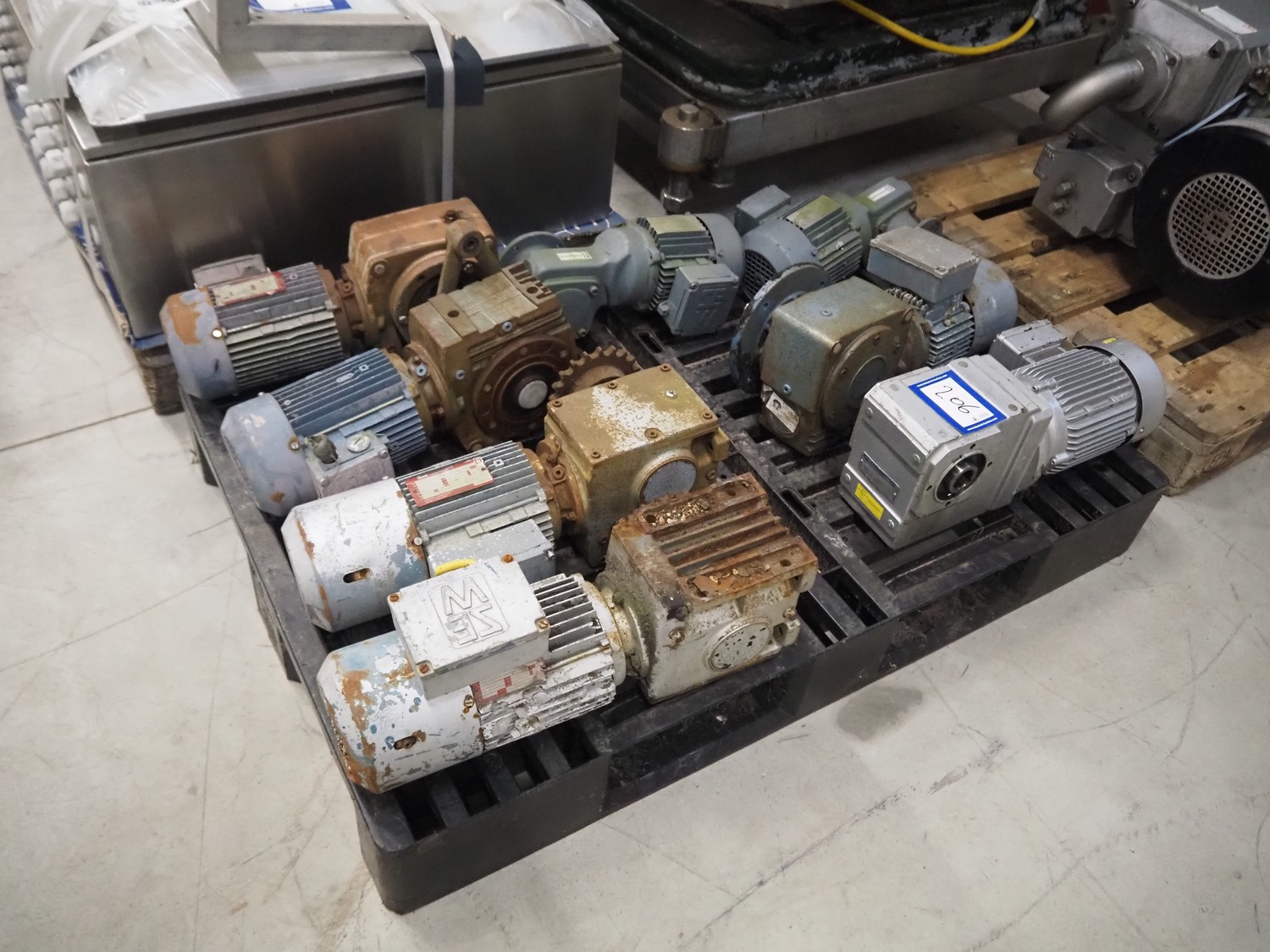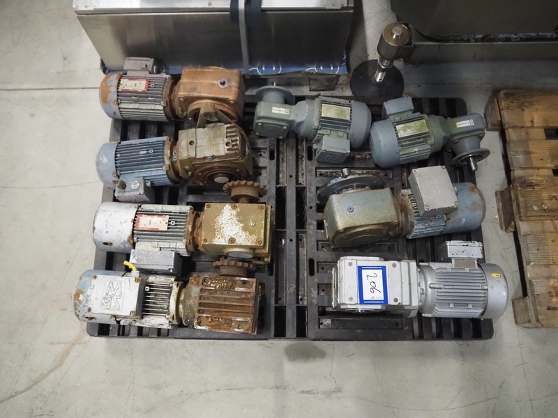 Pallet with 8 SEW Eurodrive motors, dimensions: 1200 mm x 800 mm x 450 mm.