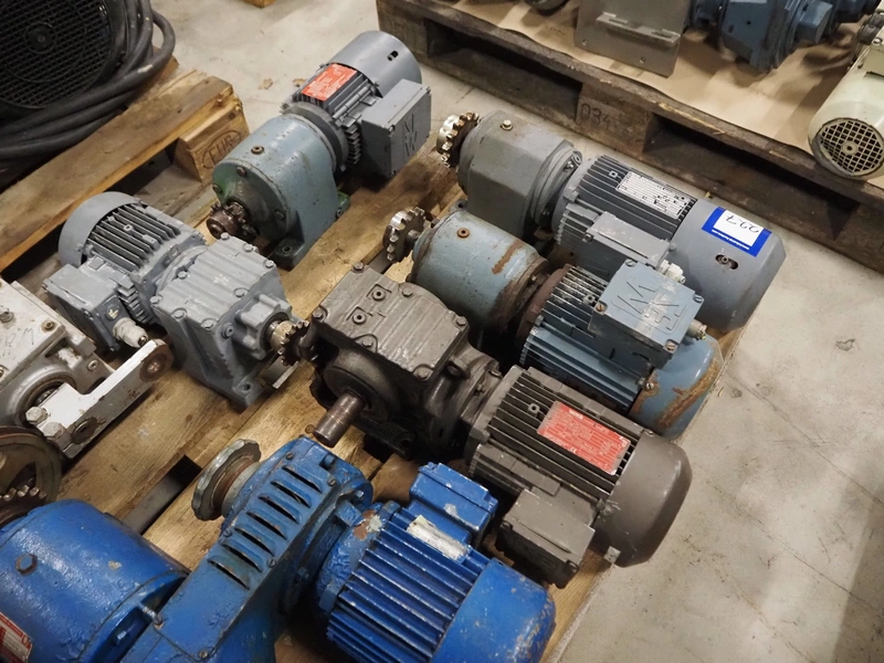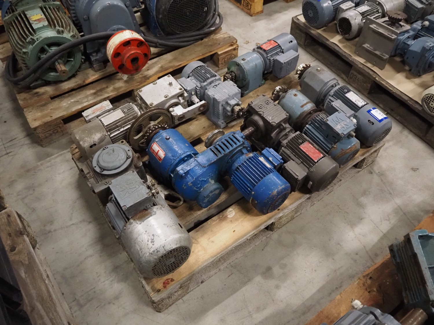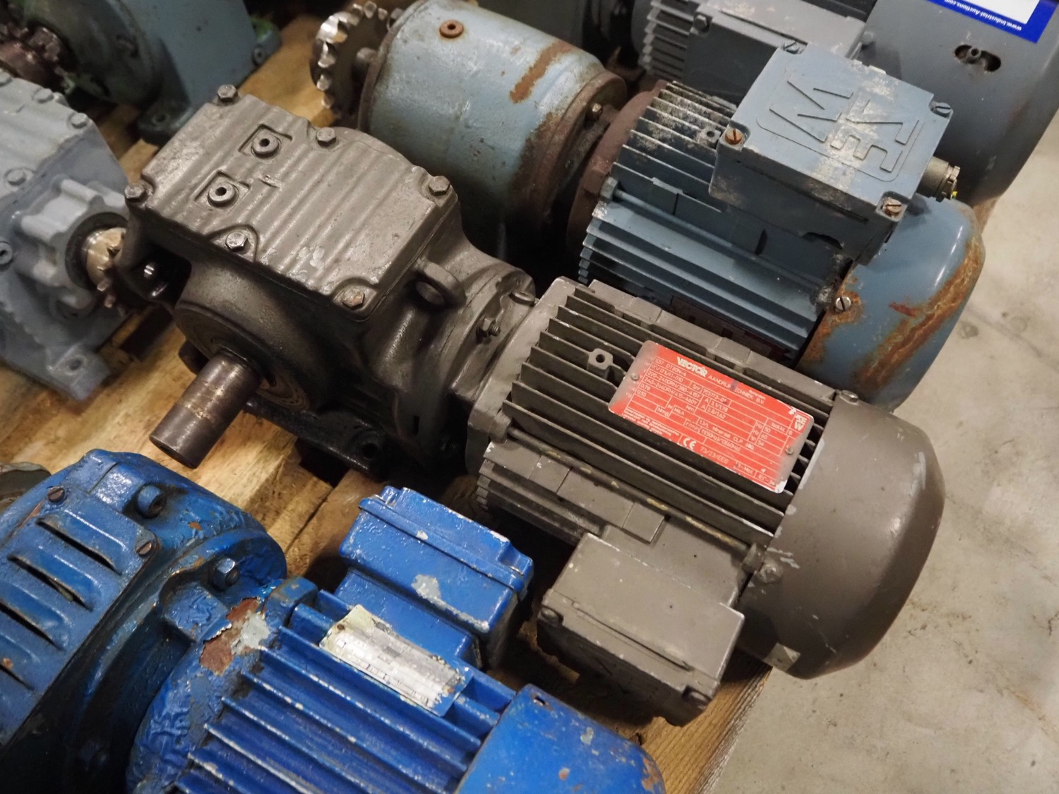 Pallet with 8 motors among others: SEW Eurodrive and Vector motors, dimensions: 1200 mm x 800 mm x 410 mm.