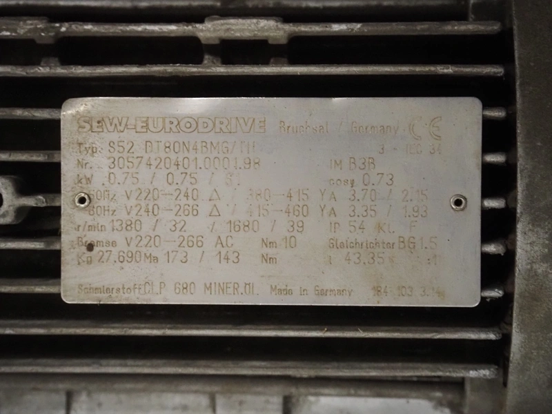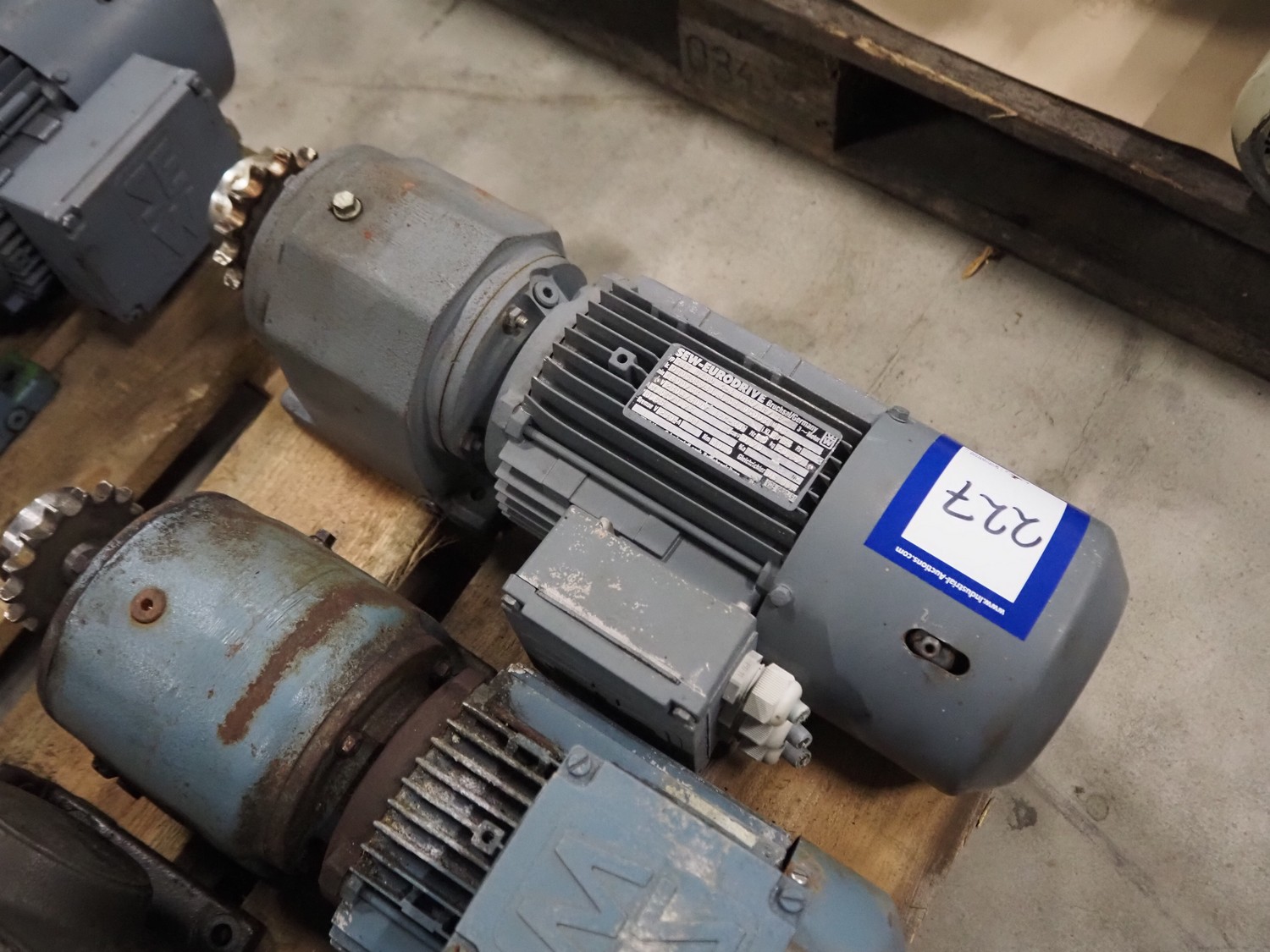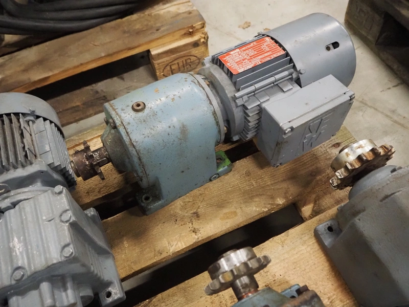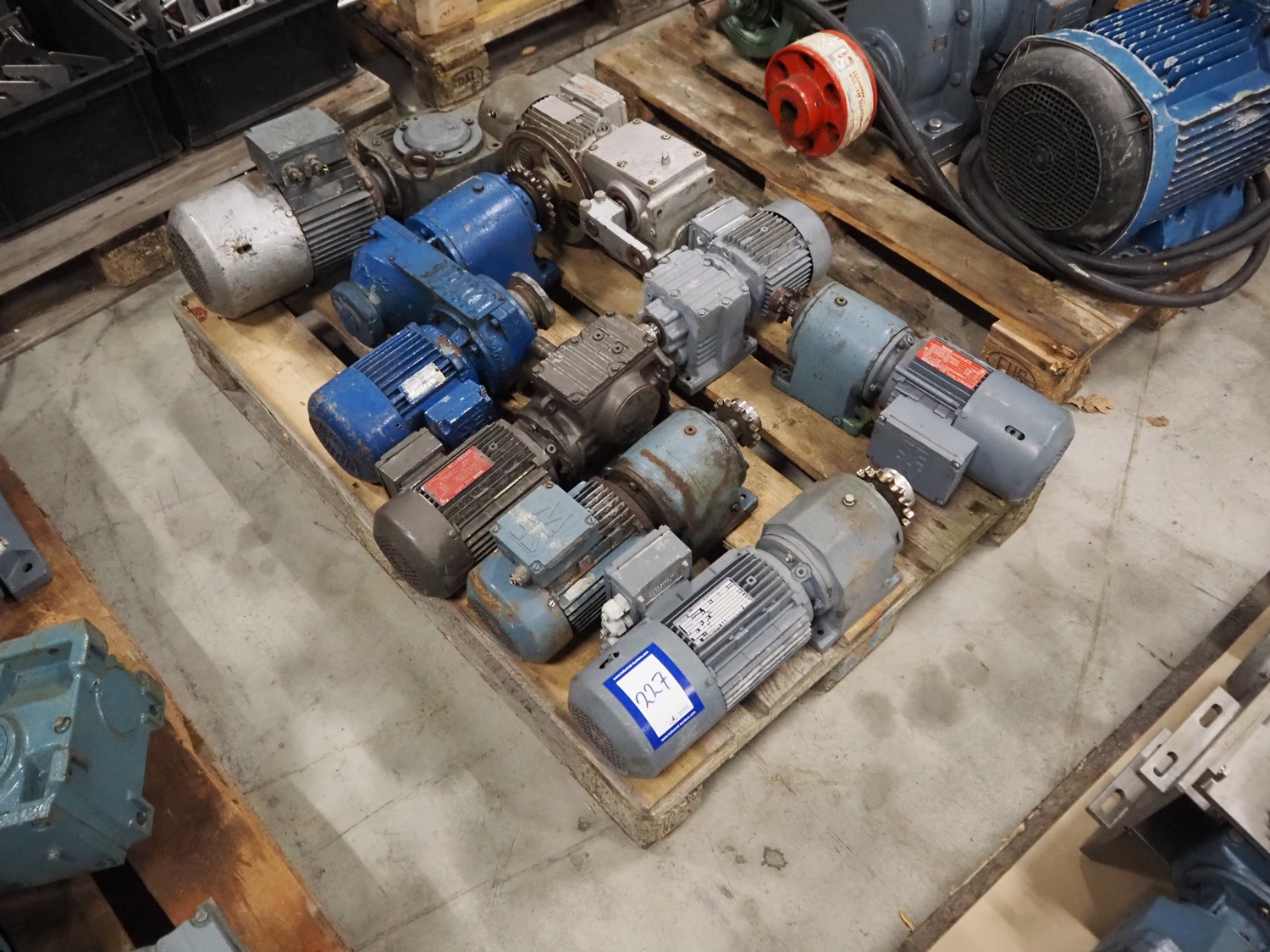 Pallet with 8 motors among others: SEW Eurodrive and Vector motors, dimensions: 1200 mm x 800 mm x 410 mm.