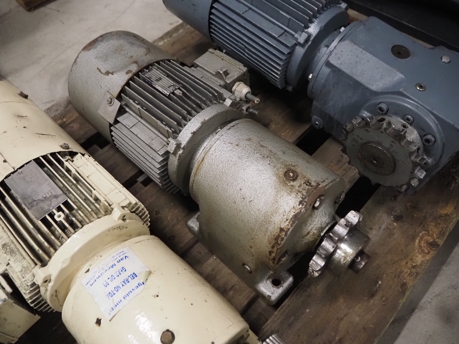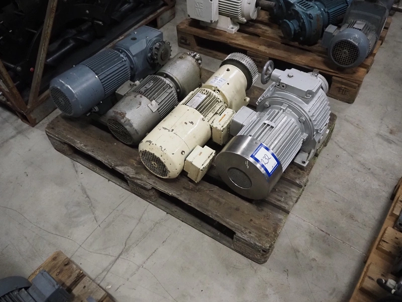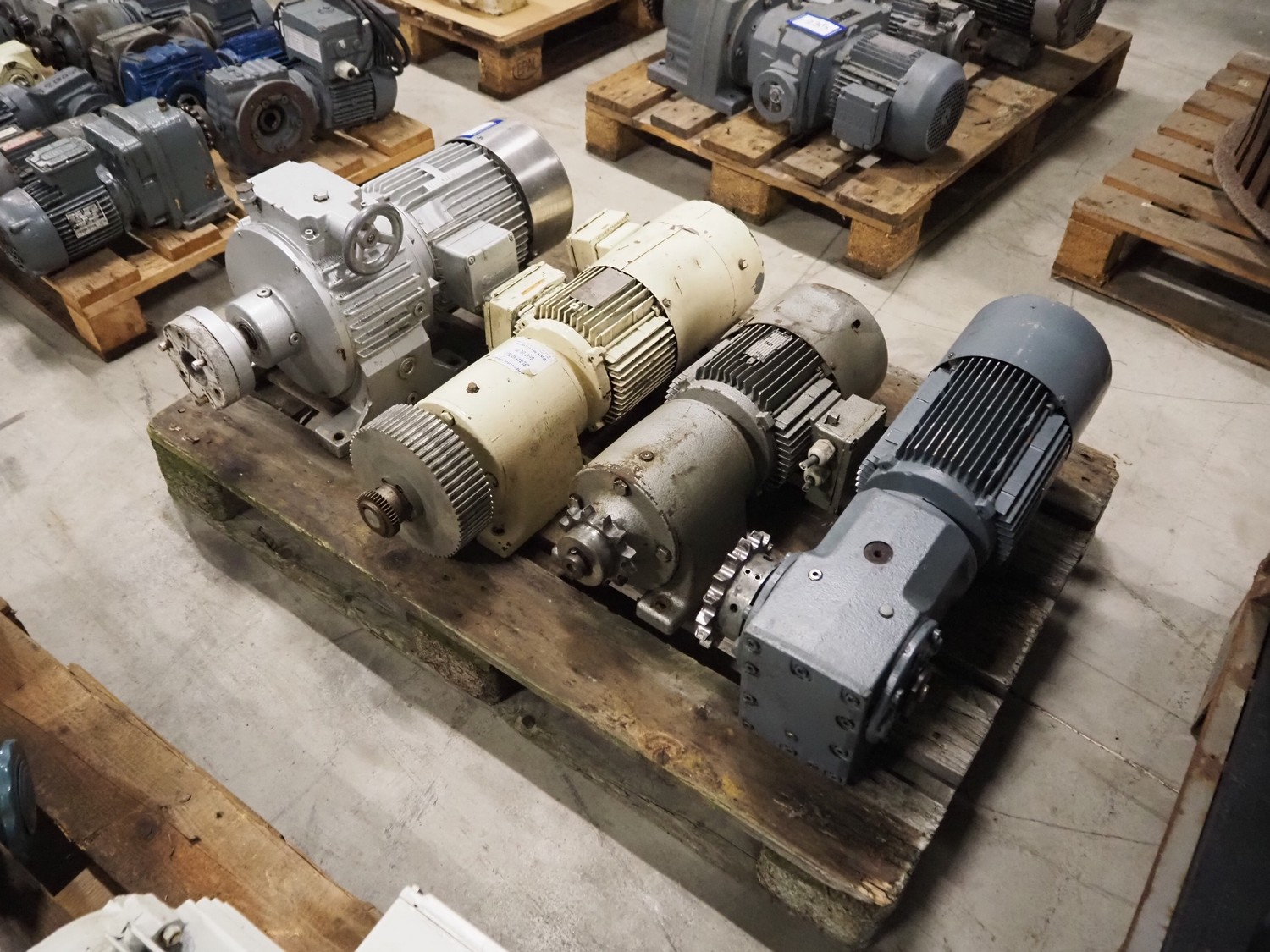 Pallet with 4 SEW Eurodrive motors, dimensions: 1200 mm x 800 mm x 540 mm.