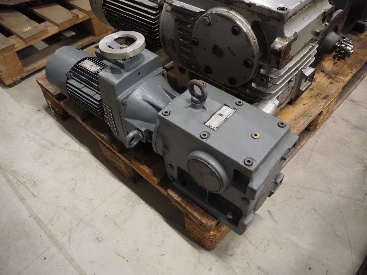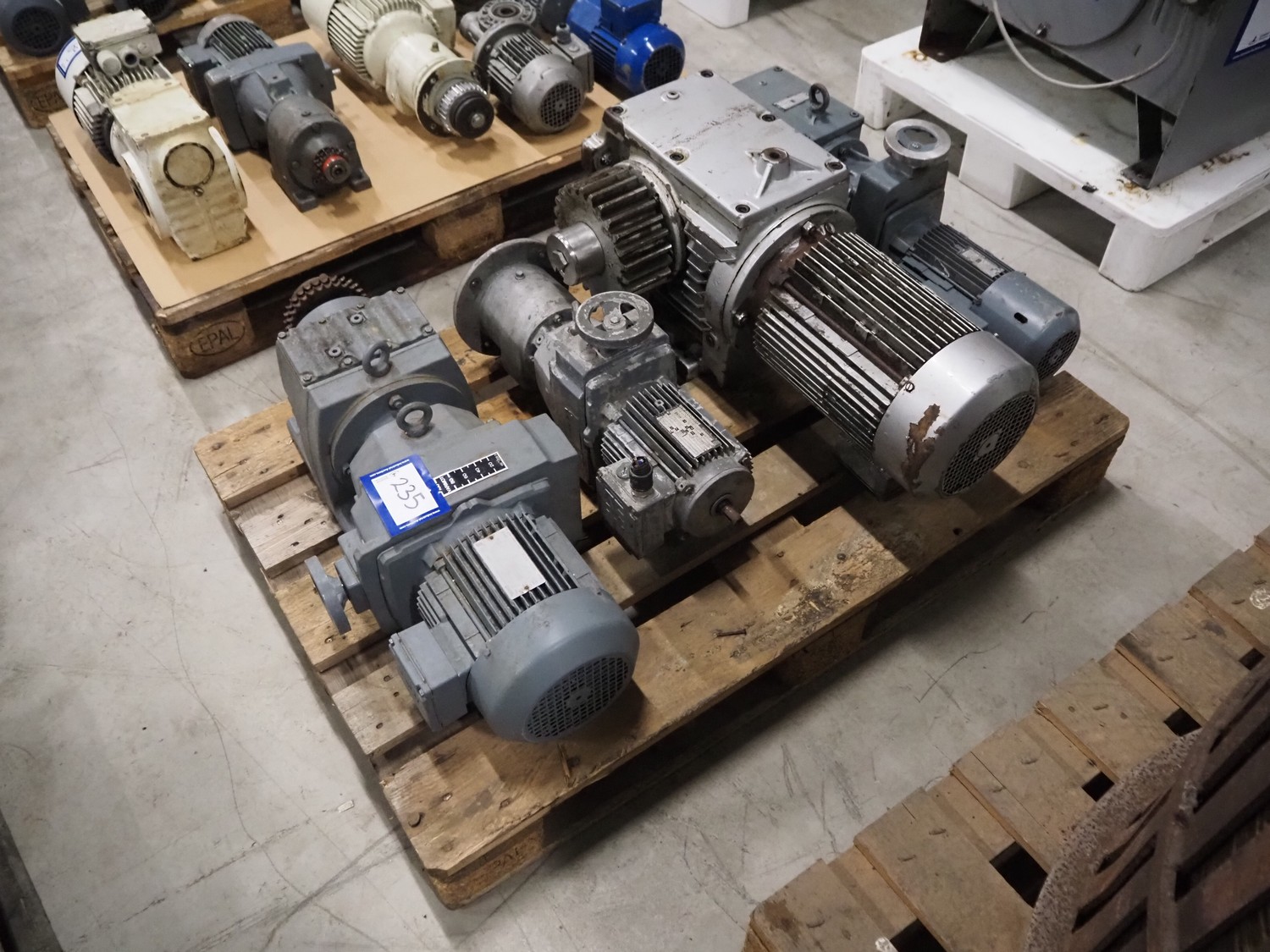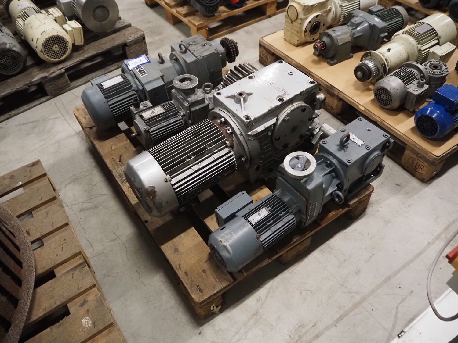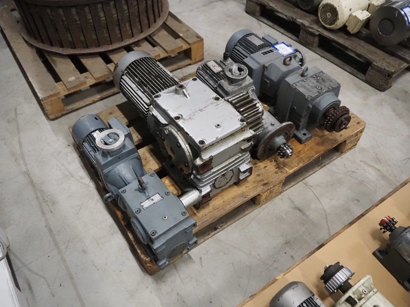Pallet with 4 motors among others: SEW Eurodrive and Vector, dimensions: 1200 mm x 800 mm x 540 mm.