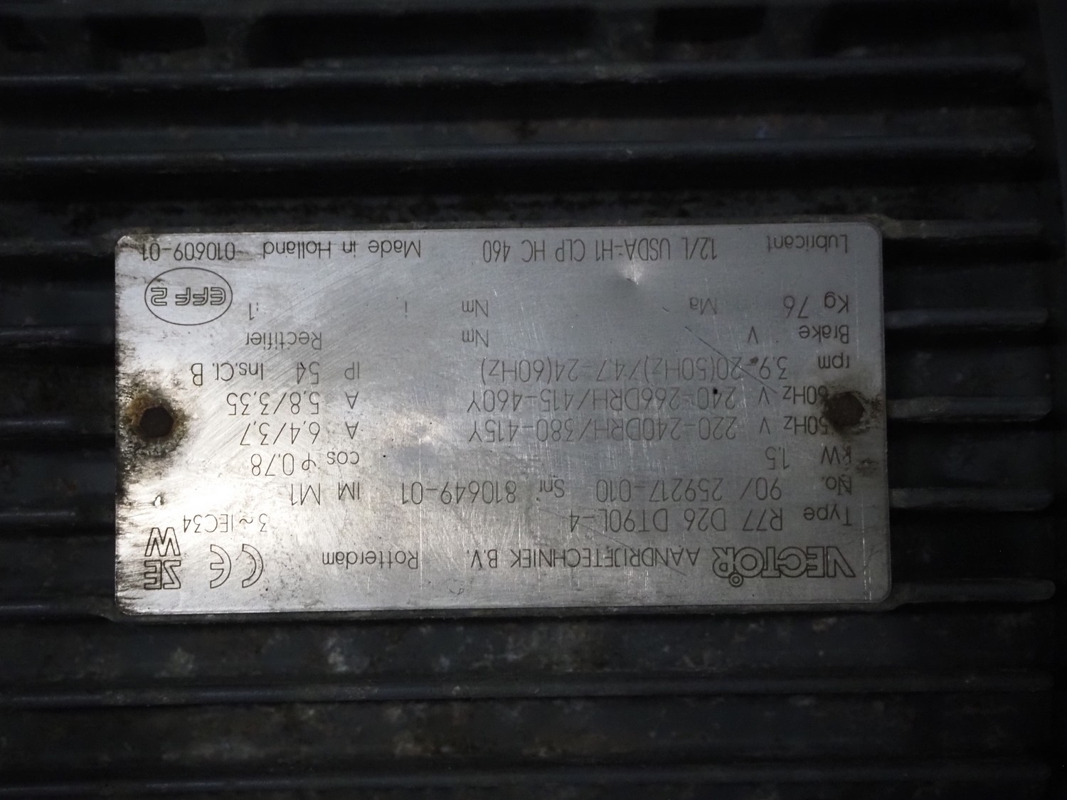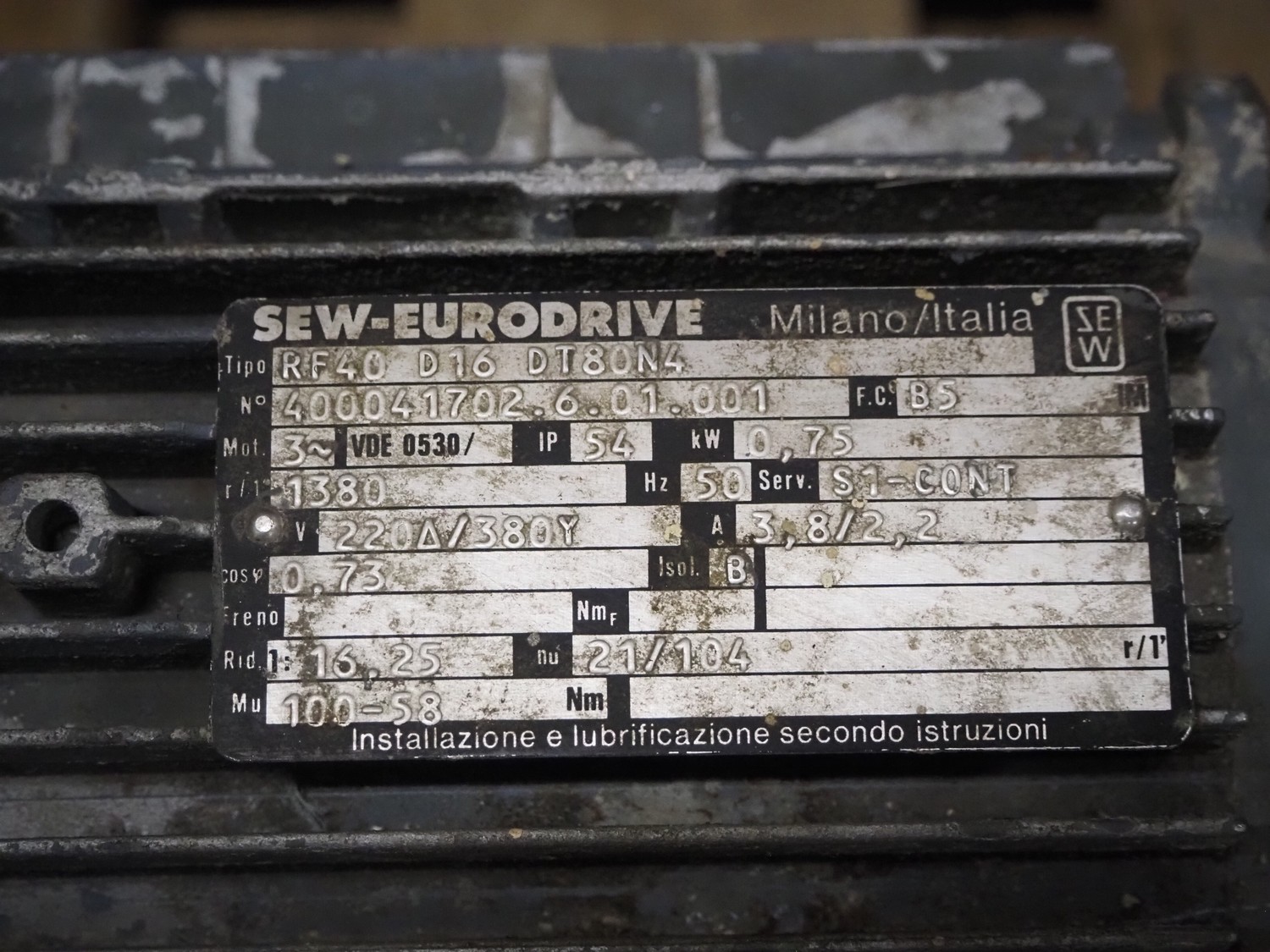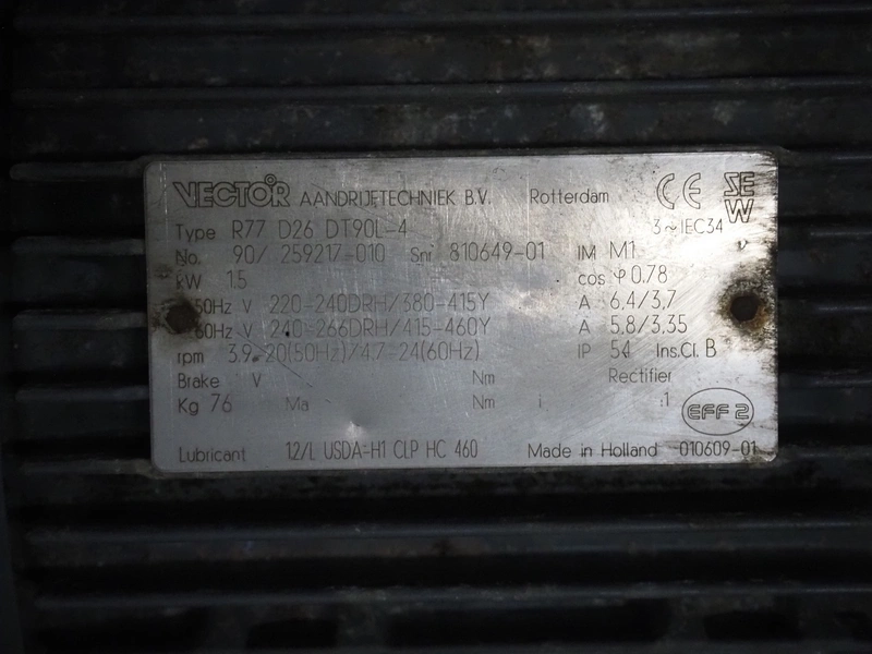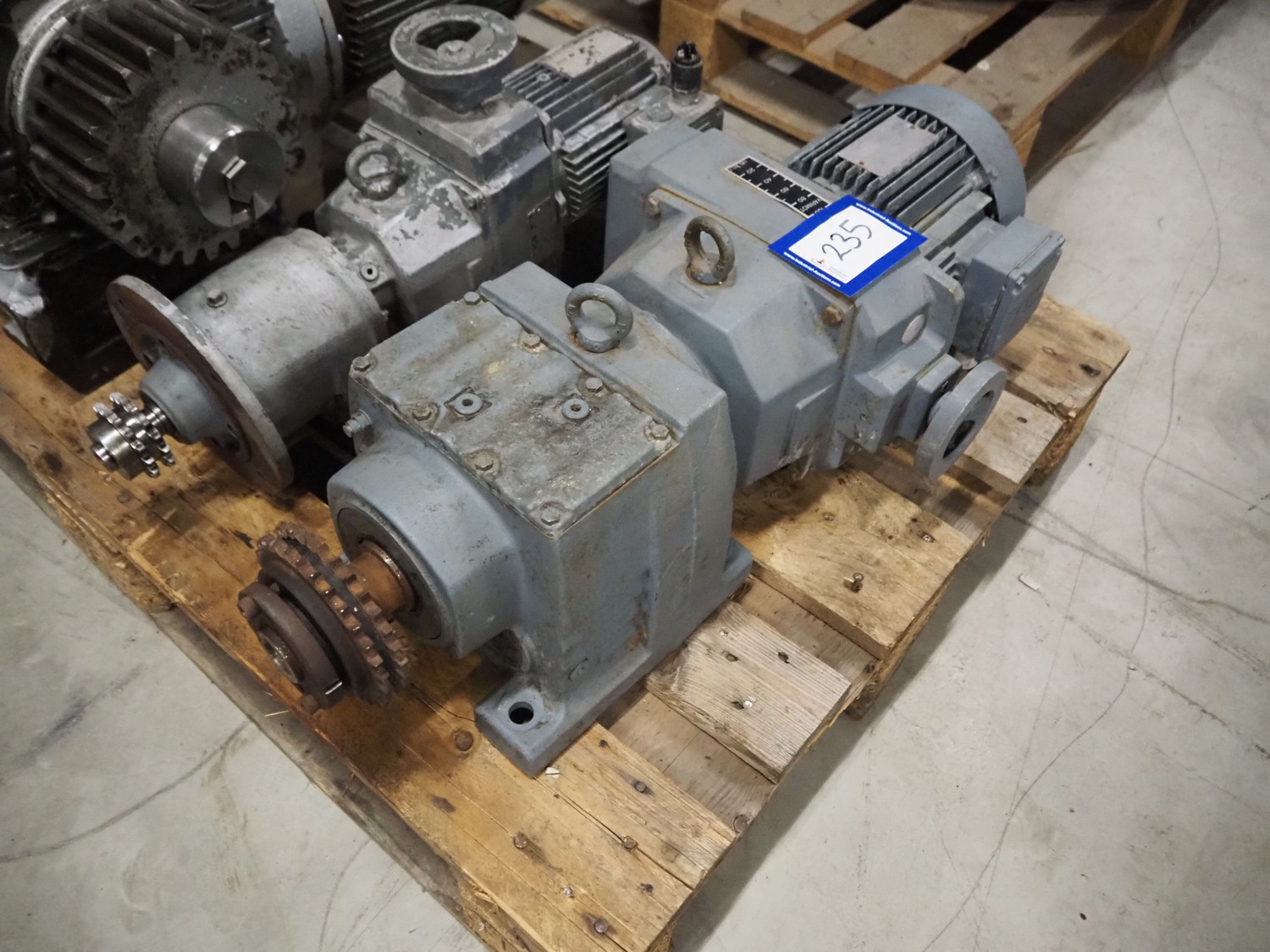 Pallet with 4 motors among others: SEW Eurodrive and Vector, dimensions: 1200 mm x 800 mm x 540 mm.