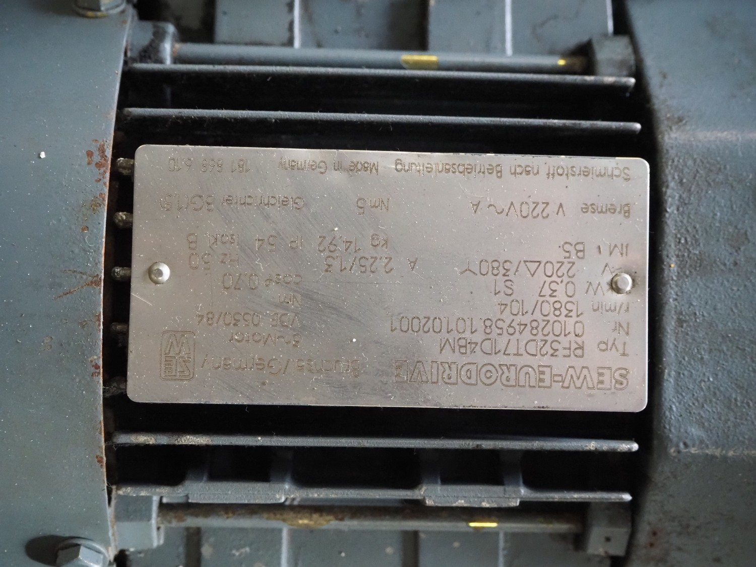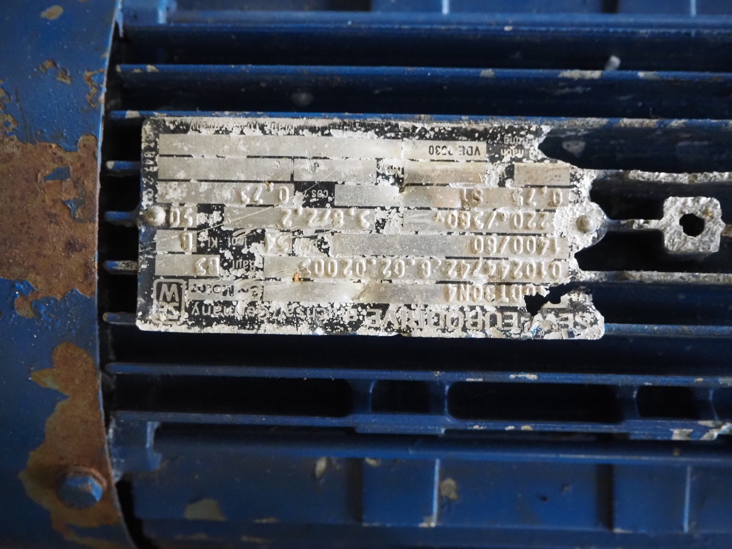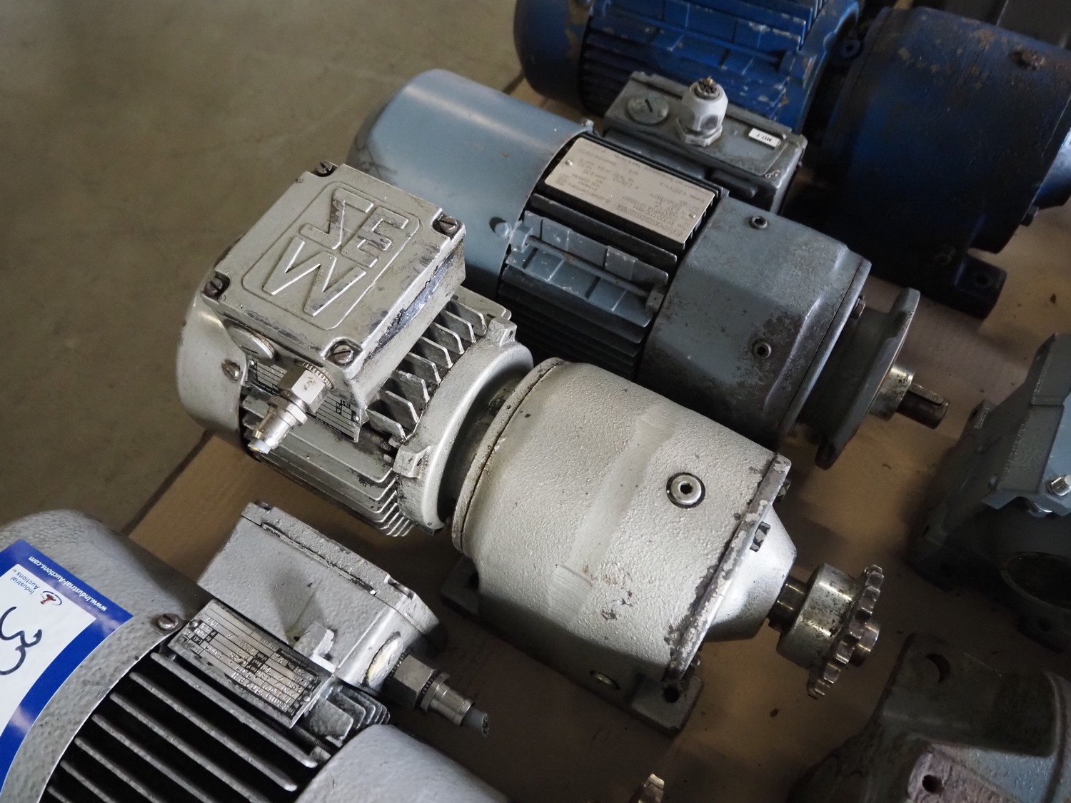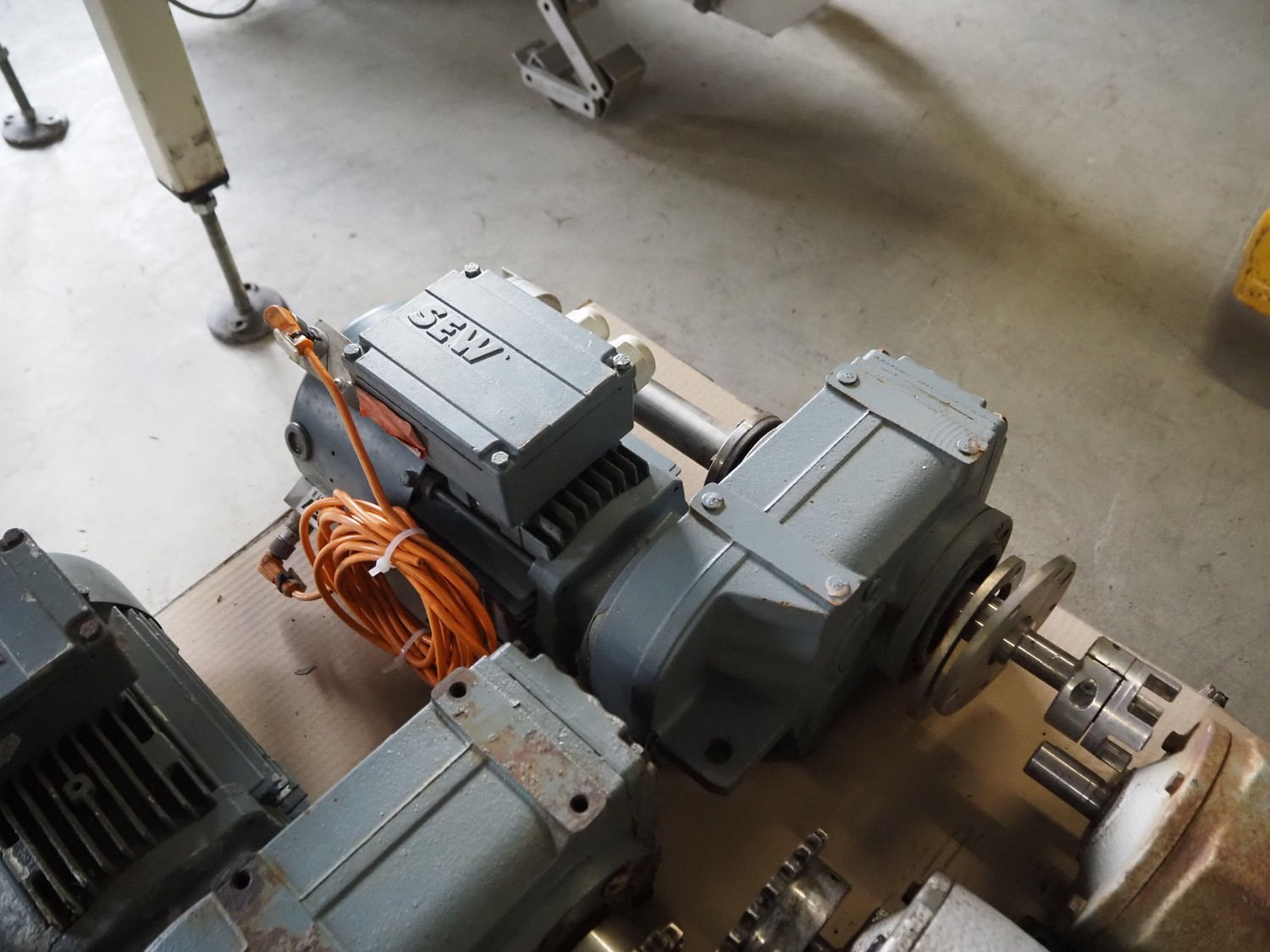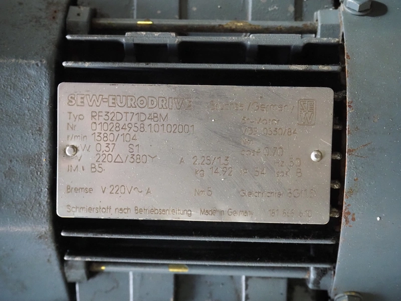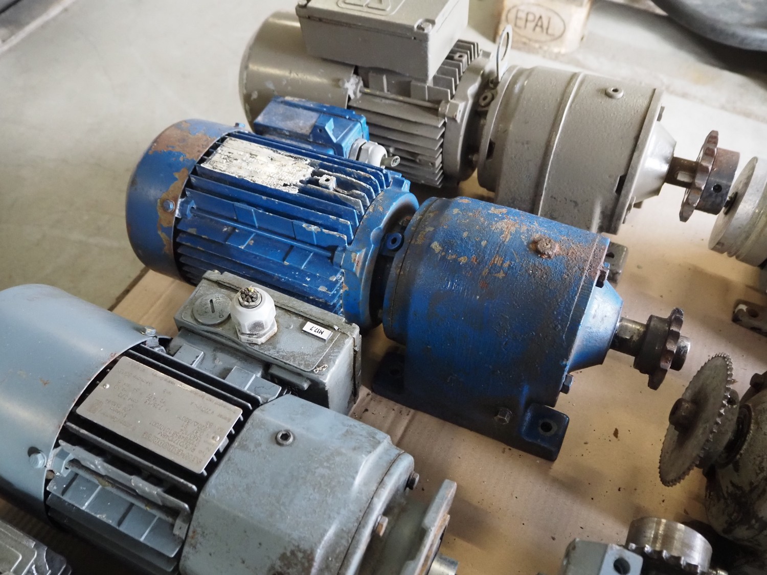 Pallet with 11 SEW Eurodrive motors, dimensions: 1200 mm x 800 mm x 380 mm.