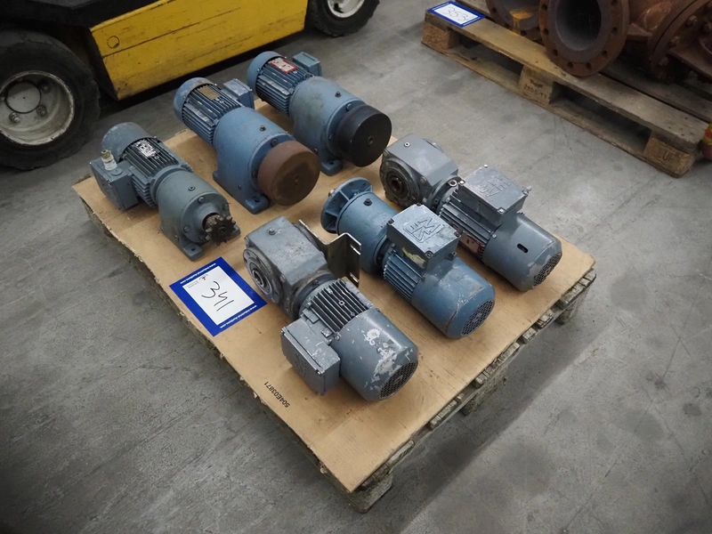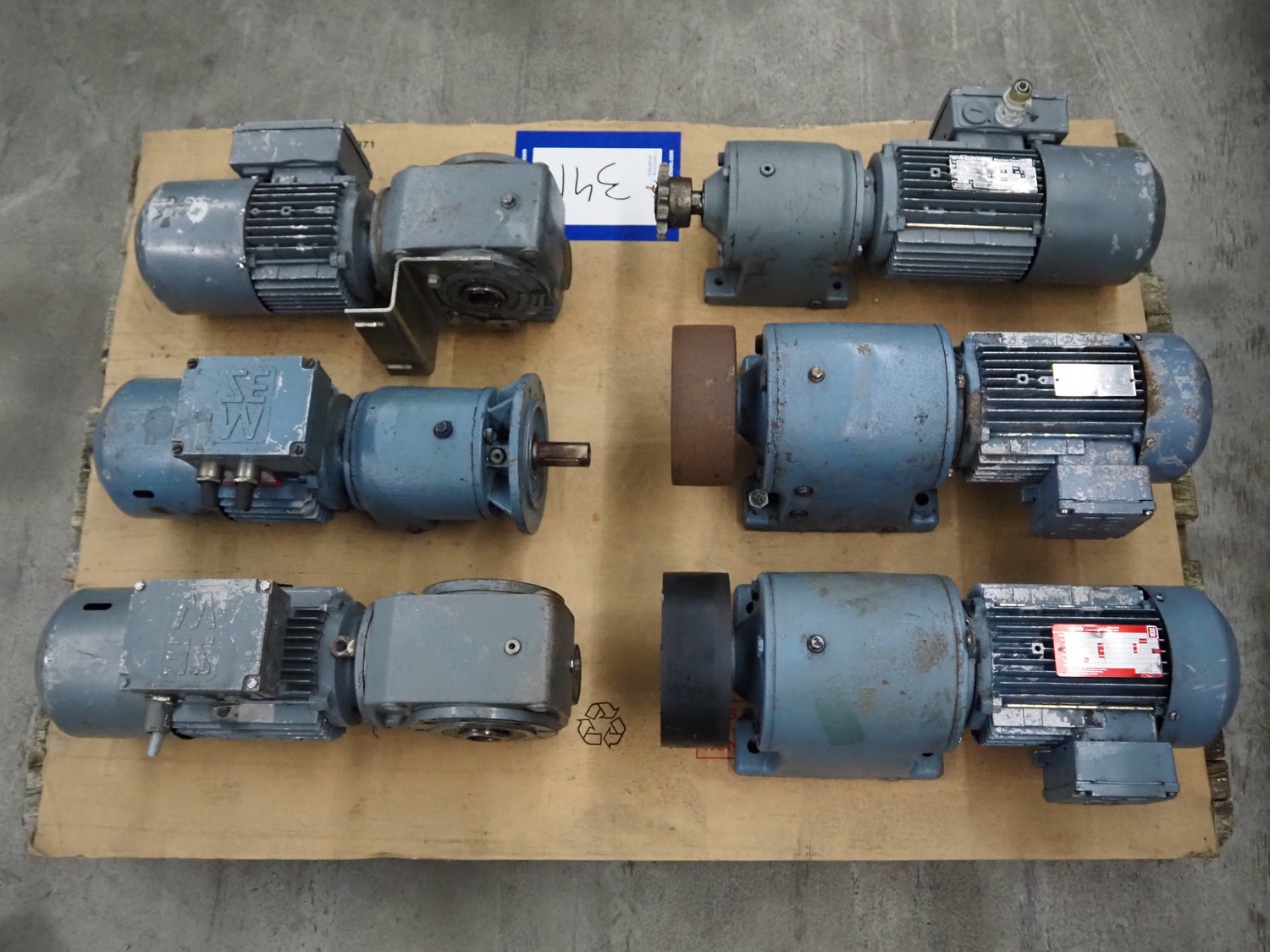 Pallet with 6 SEW Eurodrive motors, dimensions: 1200 mm x 800 mm x 400 mm.
