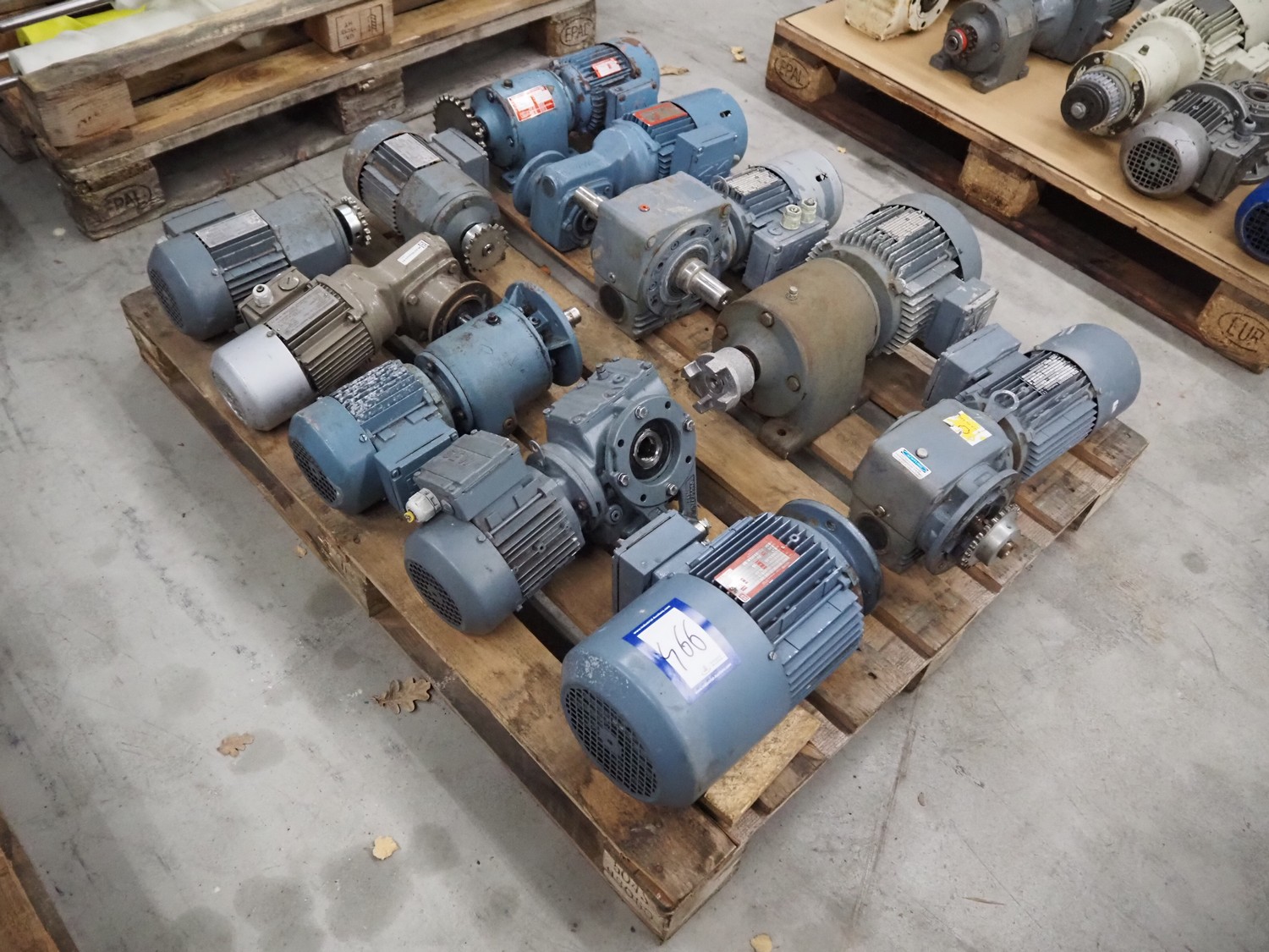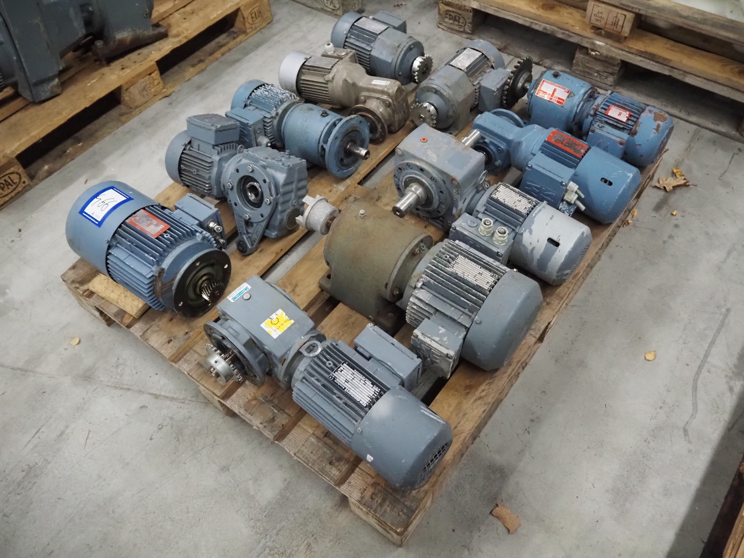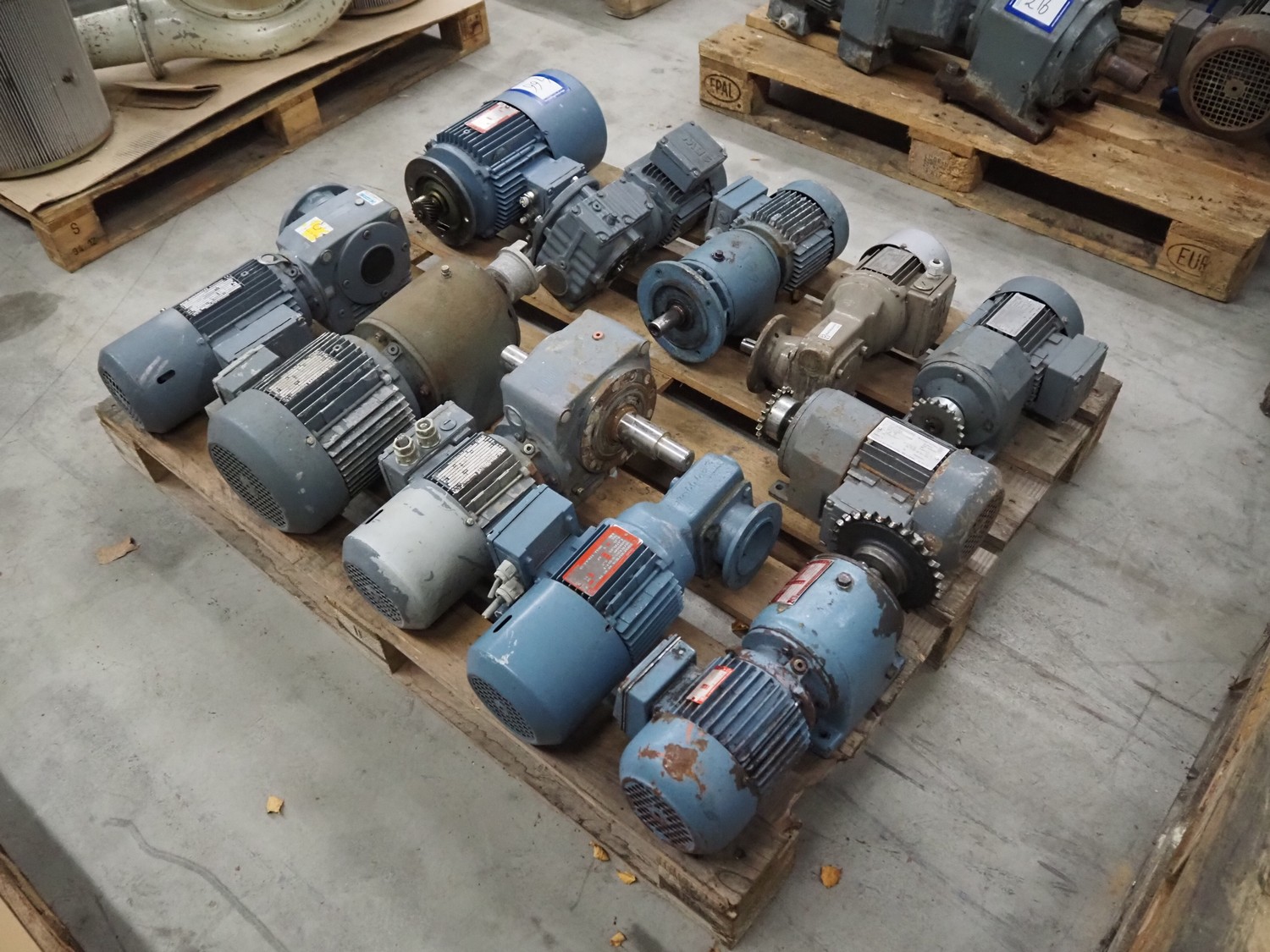 Pallet with 11 SEW electro motors, among others: 2x 0.25 kW, 3x 0.37 kW, 2x 1.5 kW, 0.55 kW dimensions pallet: 1200 mm x 800 mm x 450 mm.