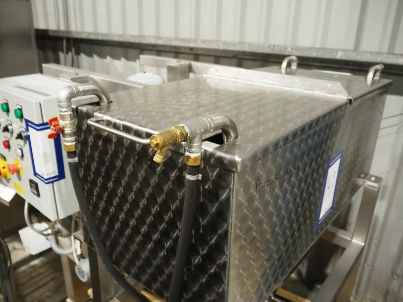 Mobile s/s butter melter, dimensions: 1100 mm x 600 mm x 1450 mm.