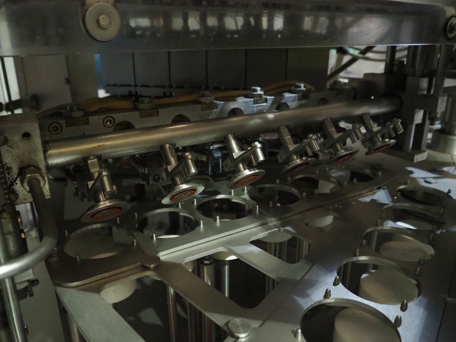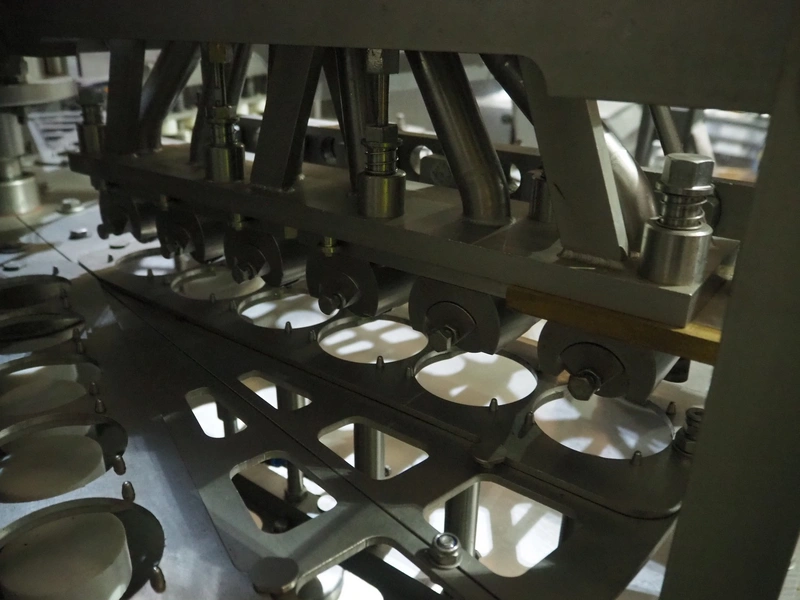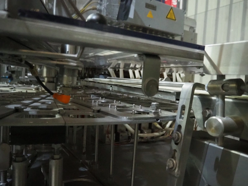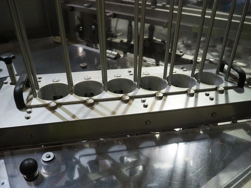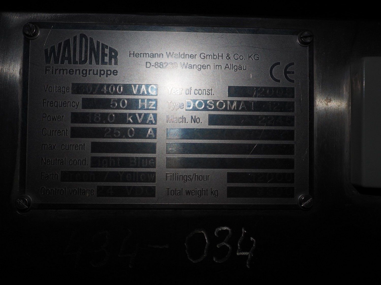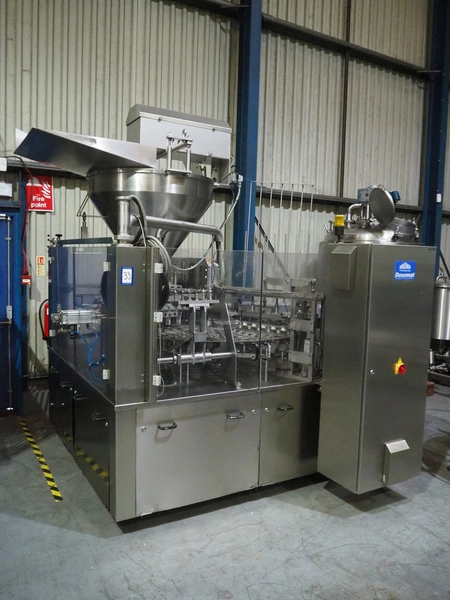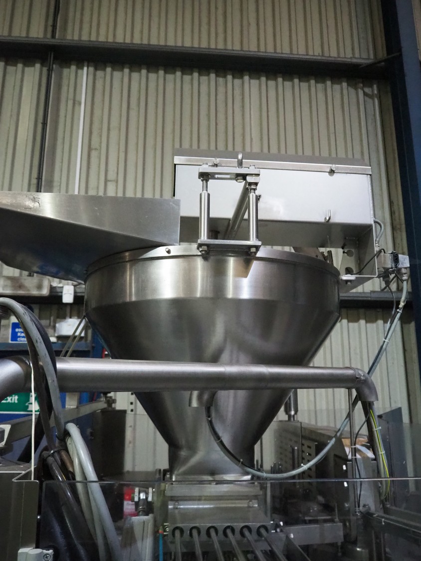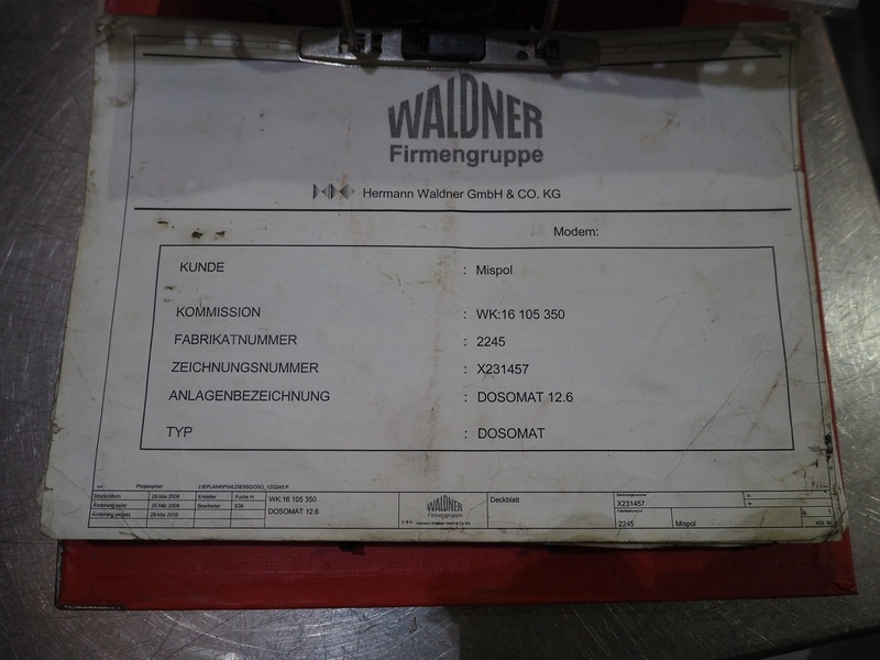 Hermann Waldner GmbH rotating cup filling and sealing machine, type: DOSOMAT 12.6, machine number: 2245, year of construction: 2008, 230/400 V, 50 Hz, 25 A, 18 kW, weight: 3300 kg, 6 lanes, cup dimensions: Ø 82 mm, total dimensions: 4100 mm x 2600 mm x 3000 mm.