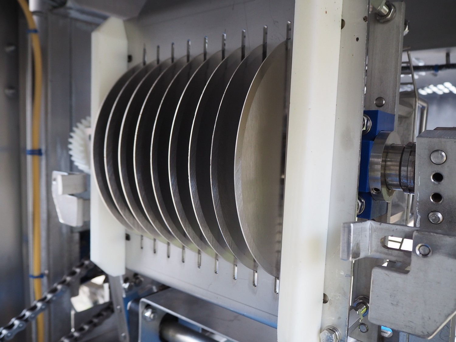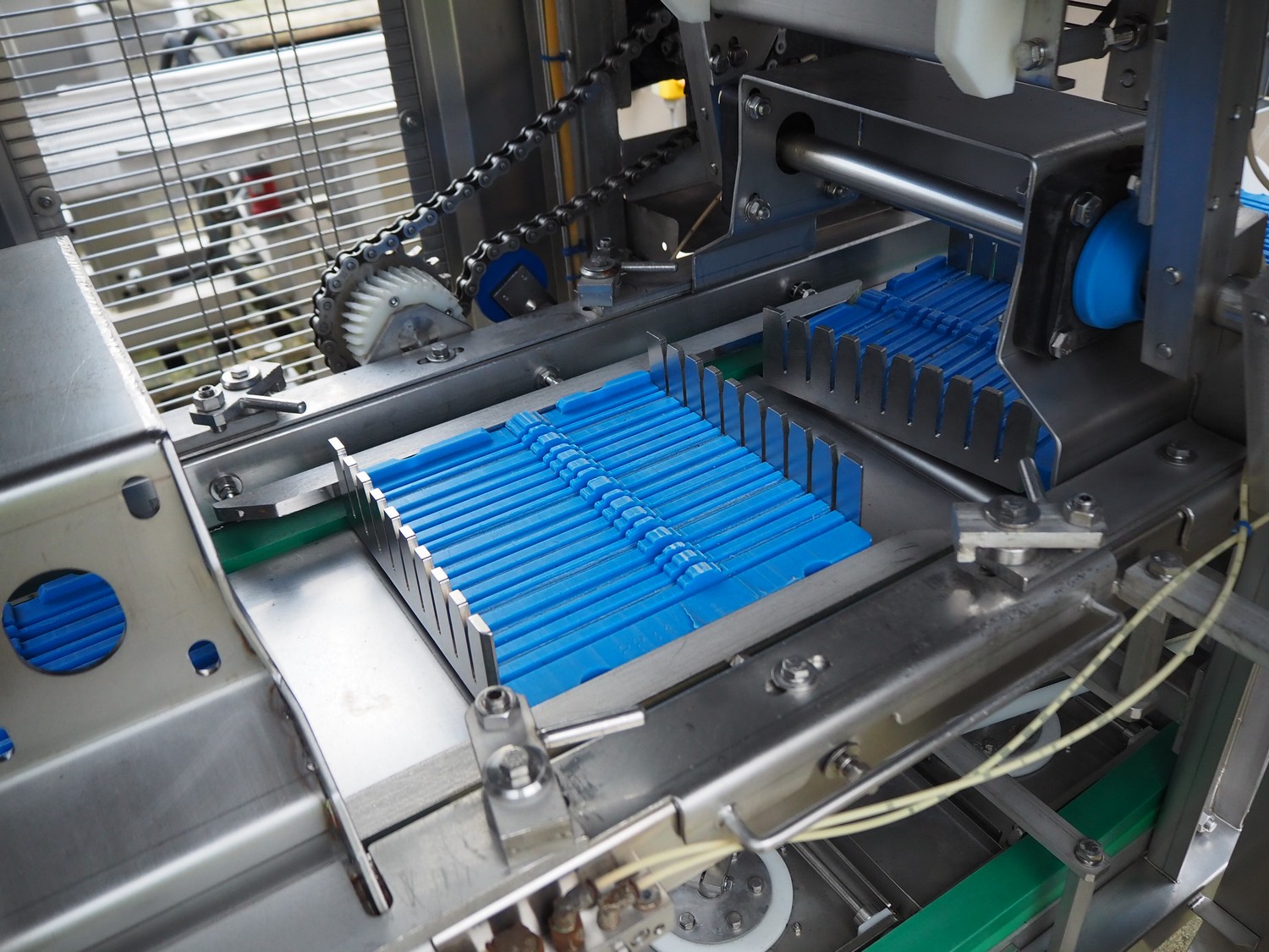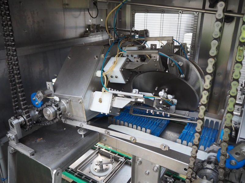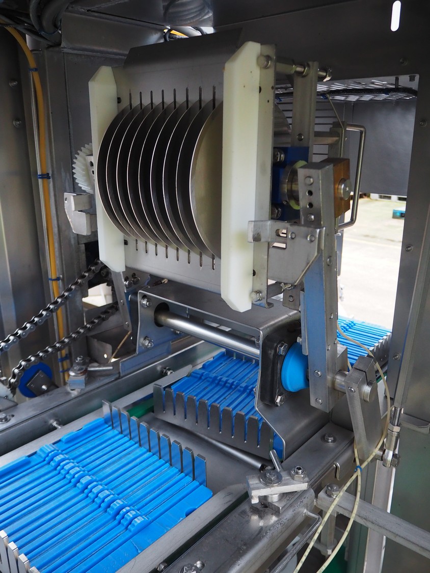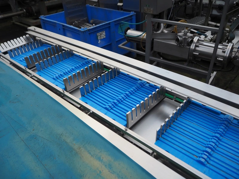 ABL vegetable slicer/chunker for pineapple, melon and papaya, model: GTF, serial number: 107, year of construction: 2017, 415 V, 50 Hz, 5.3 kW, weight: 1800 kg, working width: 255 mm x 260 mm, plastic belt, belt width: 300 mm, total dimensions: 7000 mm x 1350 mm x 2050 mm.