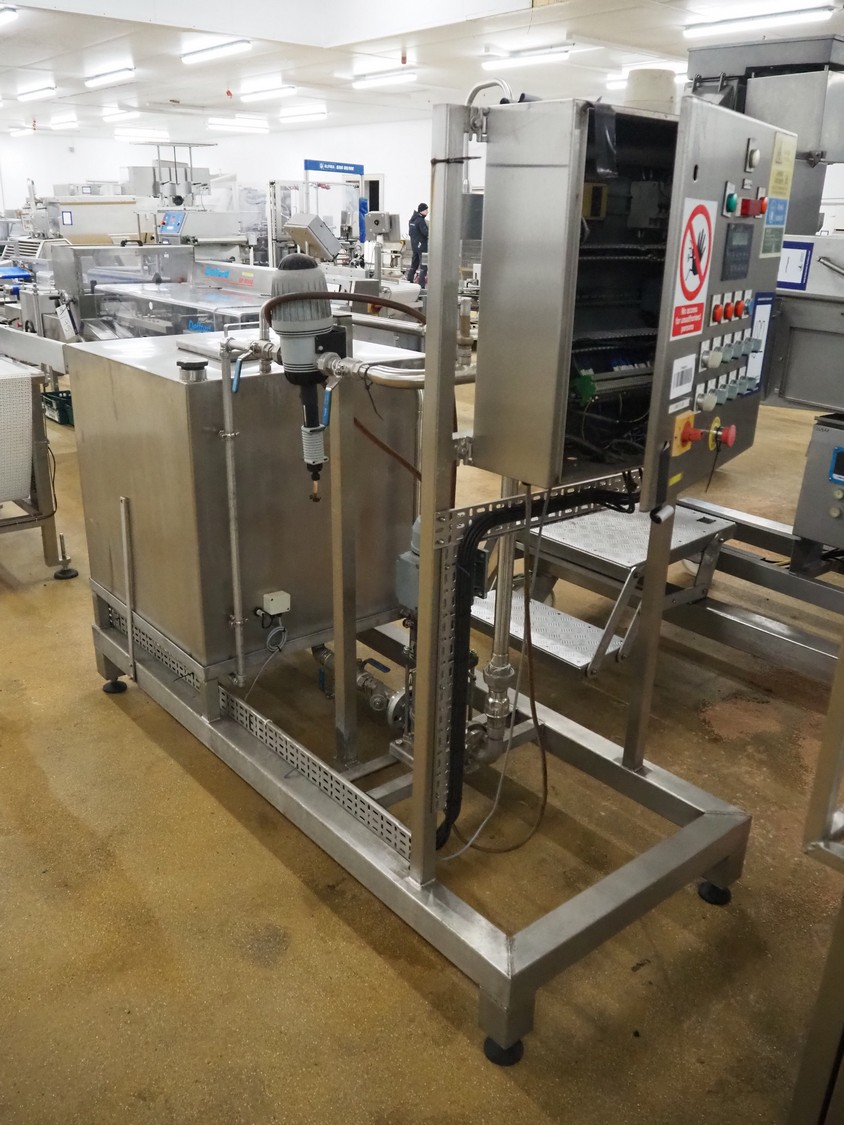 S/s tank with pump, inside dimensions: 780 mm x 780 mm x 800 mm, total dimensions: 2200 mm x 830 mm x 1750 mm.