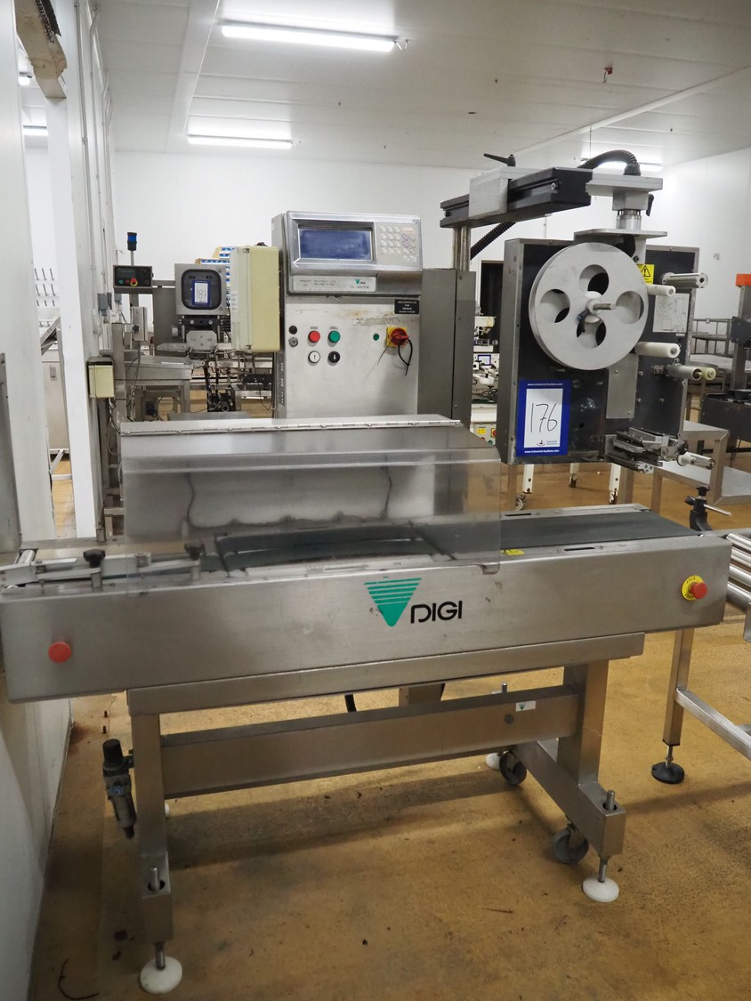 Digi Europe Ltd weighing and labelling machine, model: HI 3600, serial number: 040351007, 230 V, 1 Ph, 50 Hz, plastic belt, belt width: (2x) 100 mm, 230 mm, total dimensions: 1700 mm x 700 mm x 1800 mm.