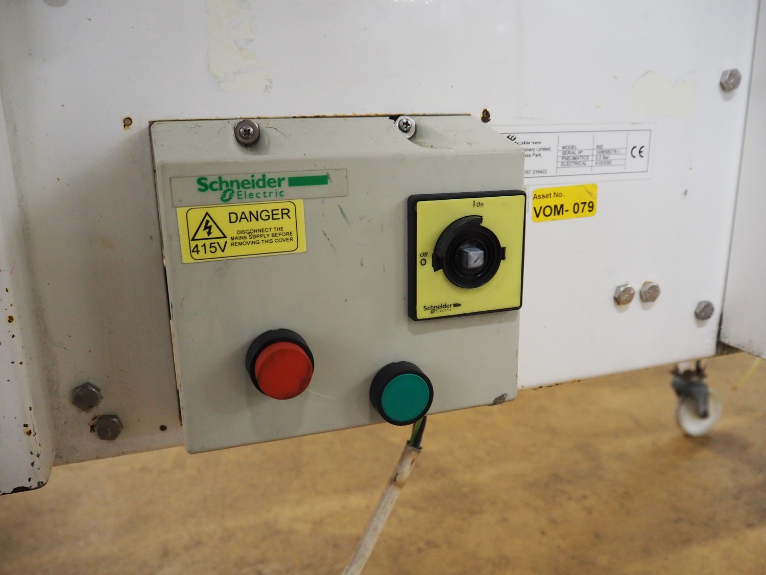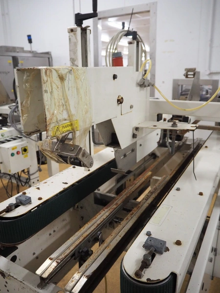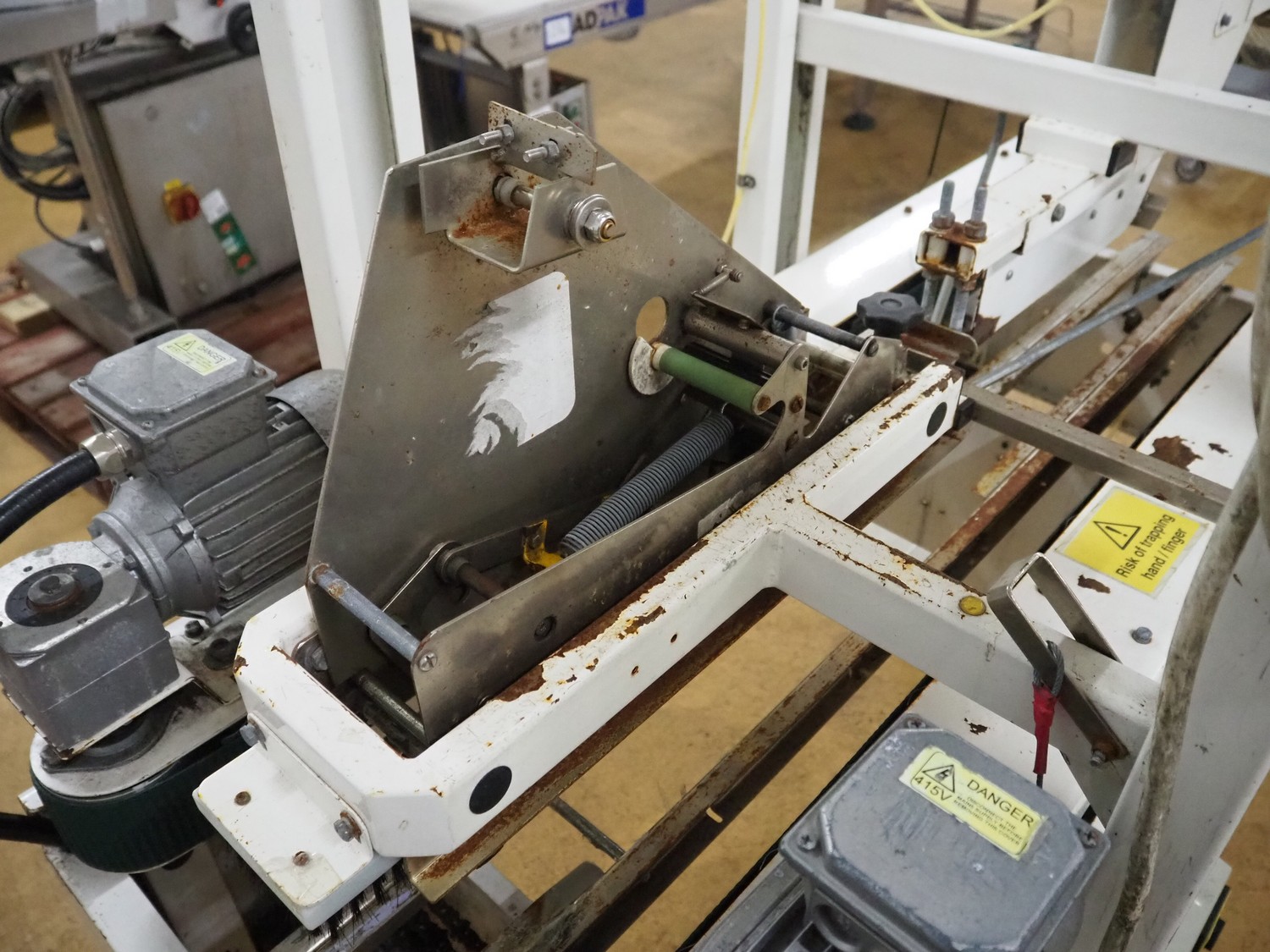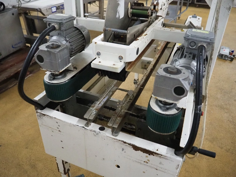 Endoline mobile box closing machine, model: 602, serial number: 100658278-1, 415 V, 3 Ph, 50 Hz, clearance: 300 mm x 150 mm, total dimensions: 1600 mm x 750 mm x 1500 mm.