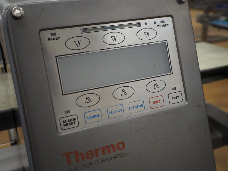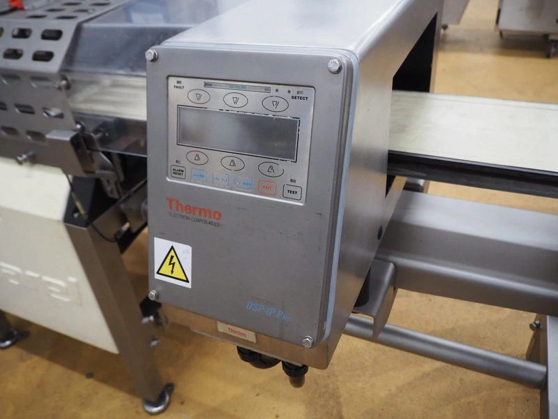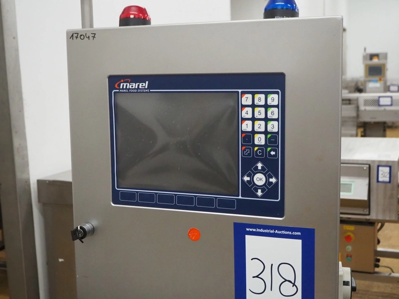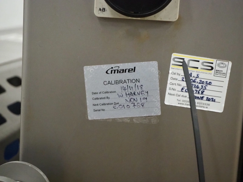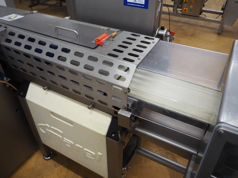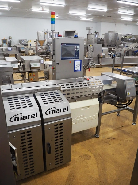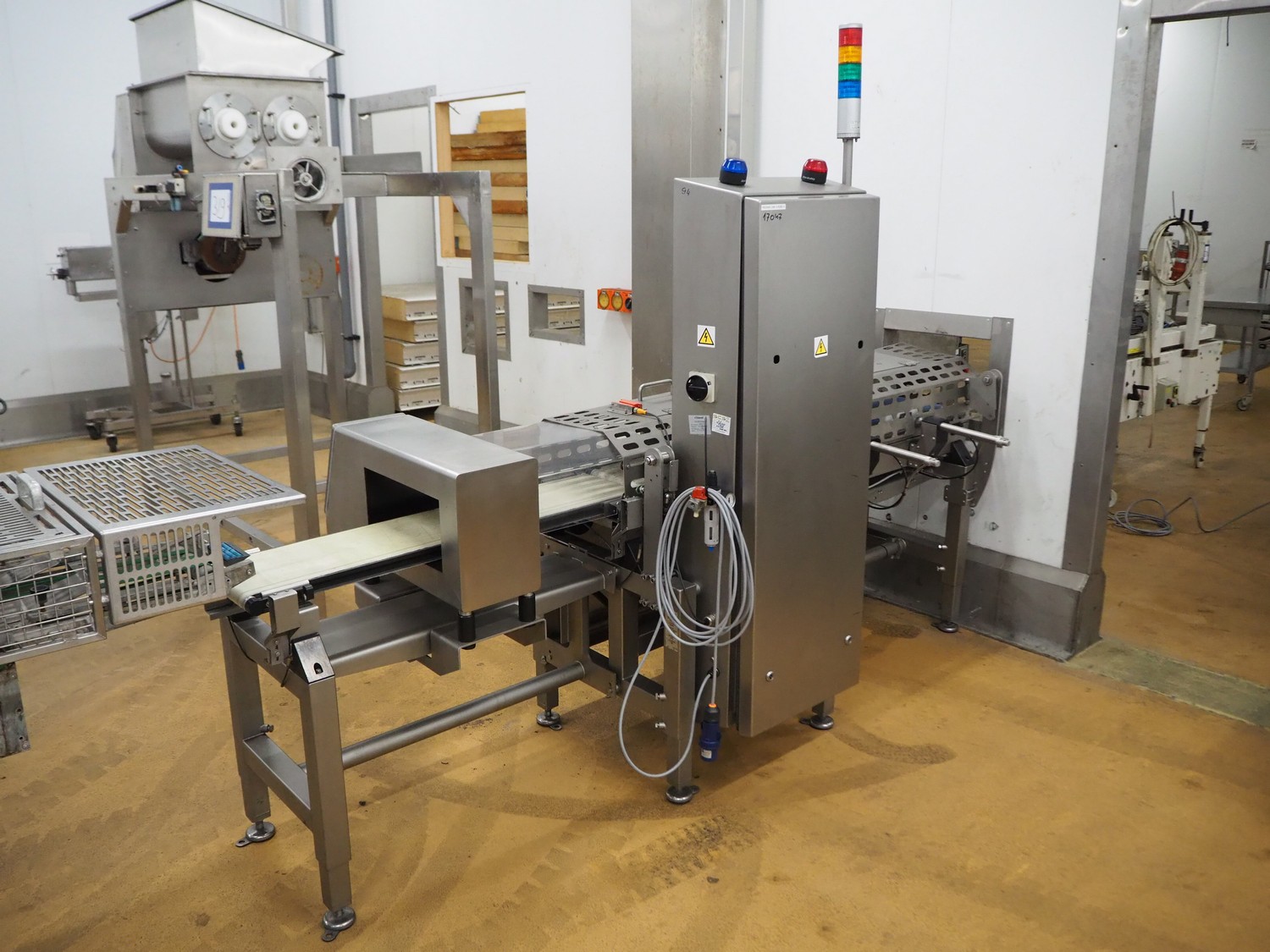 Thermo Fischer metal detector and Marel checkweigher with double rejector, type checkweigher: MarelCheck RF8 8023.30, serial number: E010768, year of construction: 2009, 200-240 V, 1 Ph, 50/60 Hz, 5.0 A, clearance metal detector: 350 mm x 120 mm, plastic belt, belt width: 230 mm, total dimensions: 2650 mm x 1150 mm x 2000 mm.