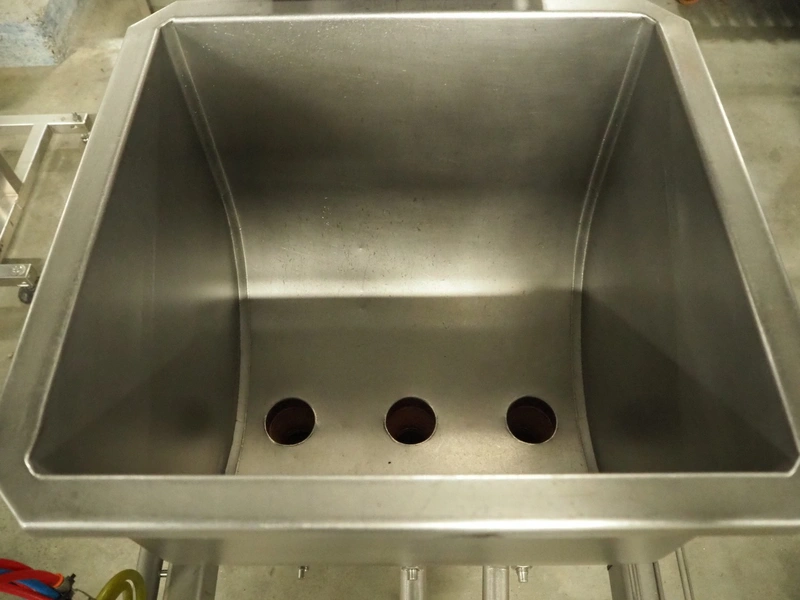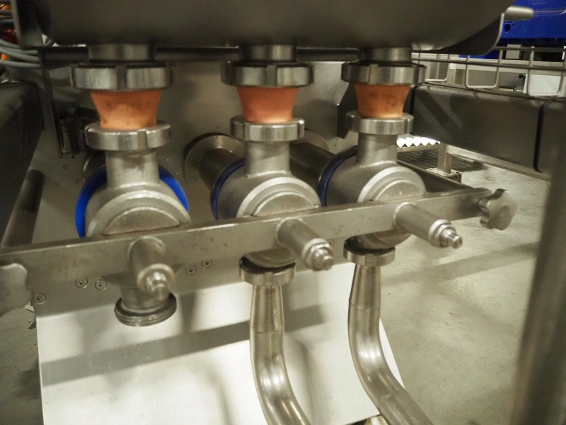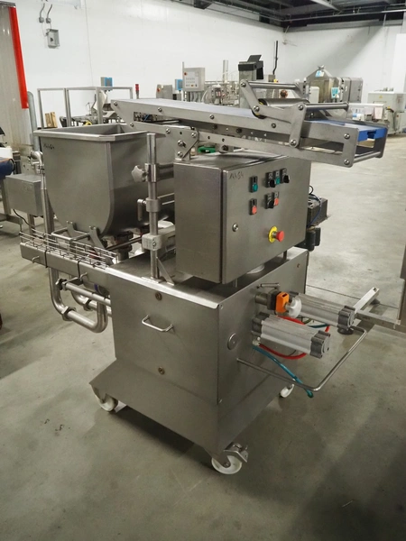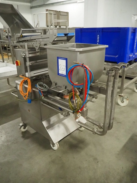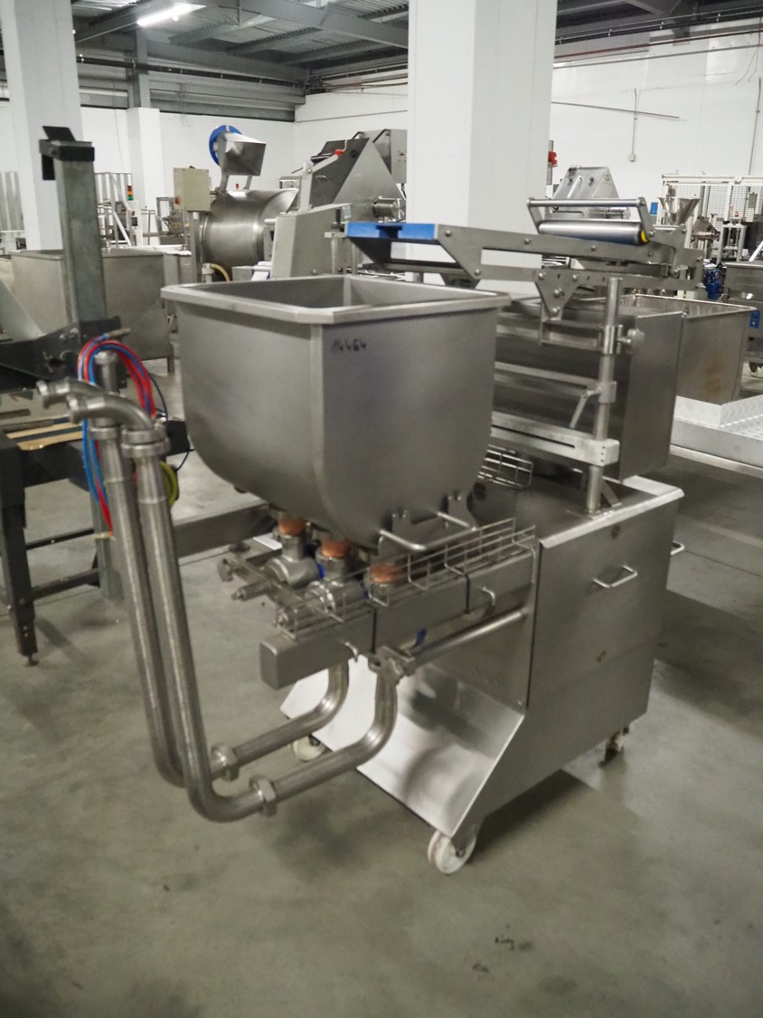 Leonhardt mobile s/s depositor, type: TGS 2 H, number: 0140.1249.1, year of construction: 2012, clearance pipes: (3x) 30 mm, total dimensions: 1730 mm x 730 mm x 1560 mm. Incomplete, missing transport belt and outfeed pipe.