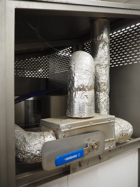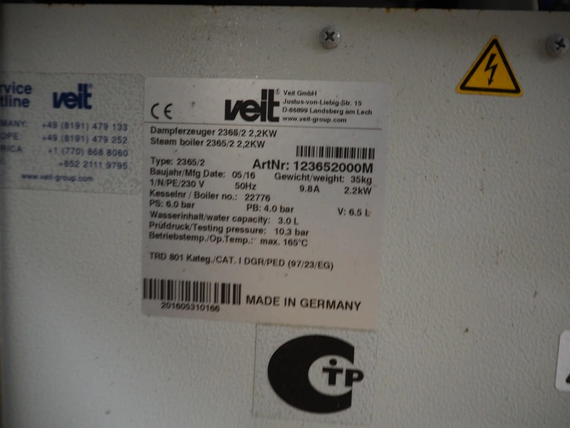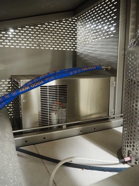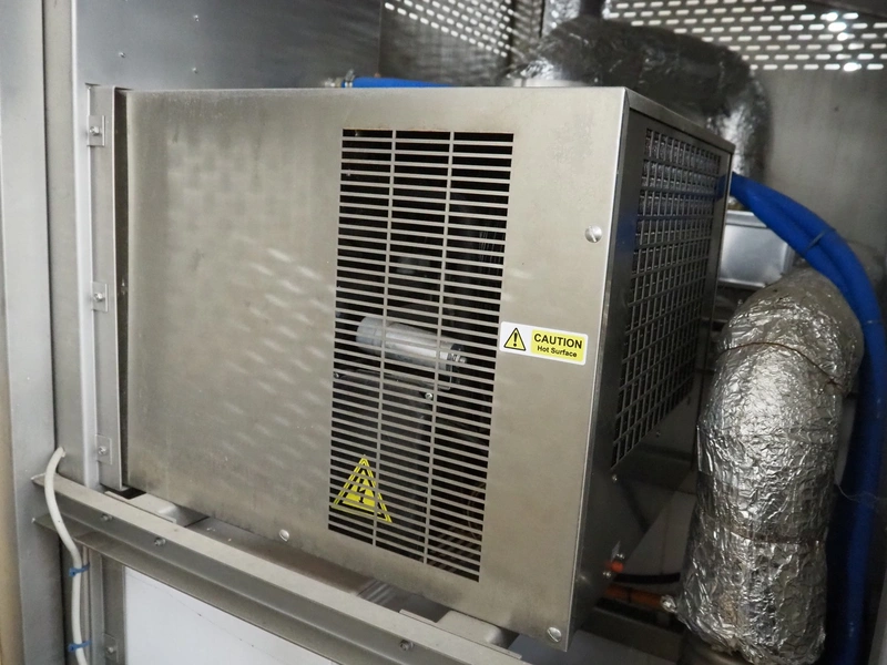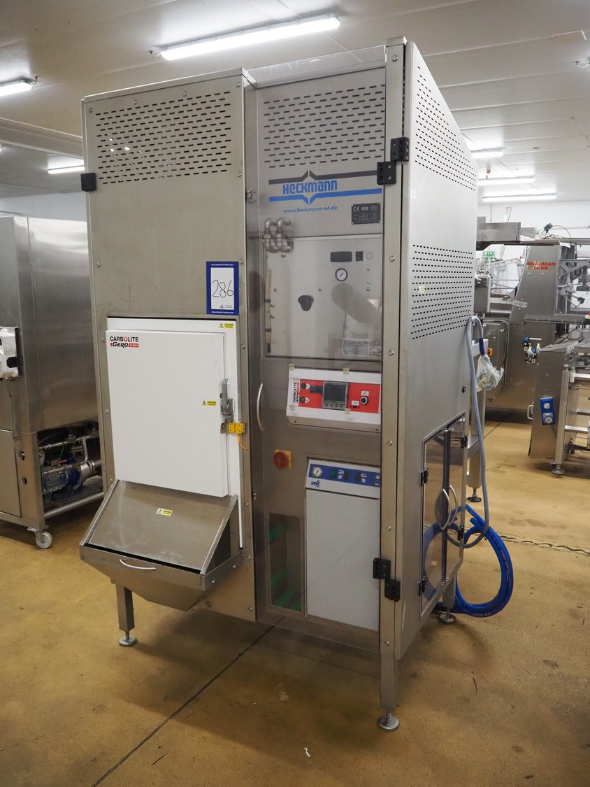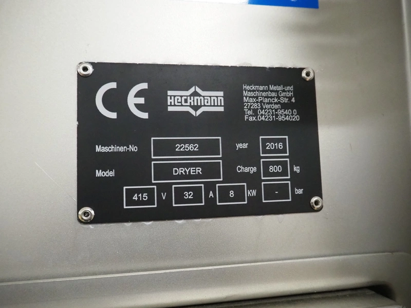 Heckmann dryer, machine number: 22562, year of construction: 2016, 415 V, 32 A, 8 kW, charge: 800 kg, 6 floors, floor dimensions: 450 mm x 450 mm, total dimensions: 1400 mm x 1200 mm x 2350 mm.
