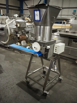 Mobile hamburger forming machine, form diameter: 115 mm, plastic belt, belt width: 150 mm, total dimensions: 1350 mm x 850 mm x 185…€ 450,000 bids24/02/2026 14:40 -