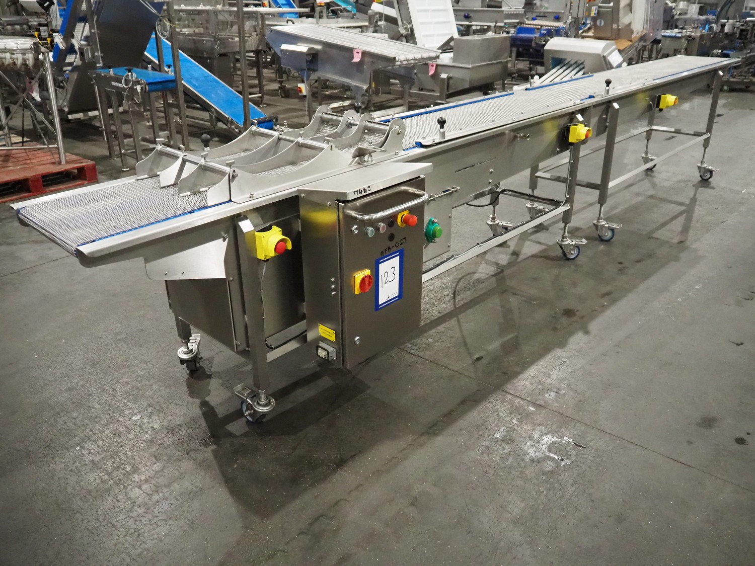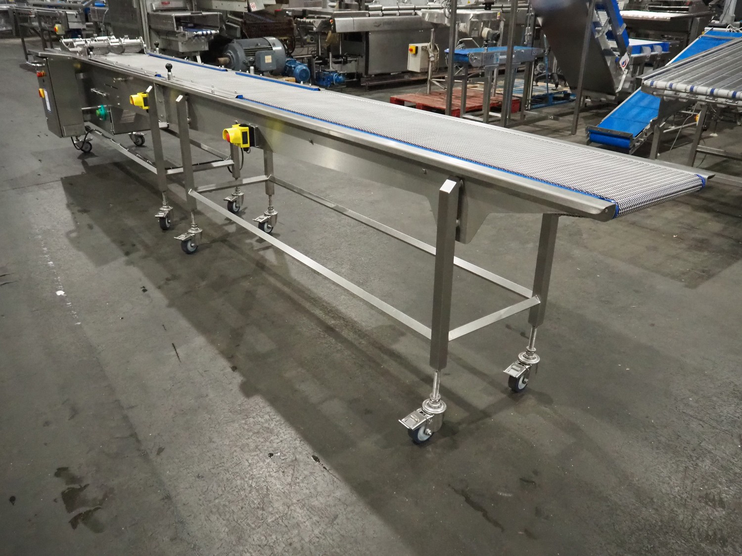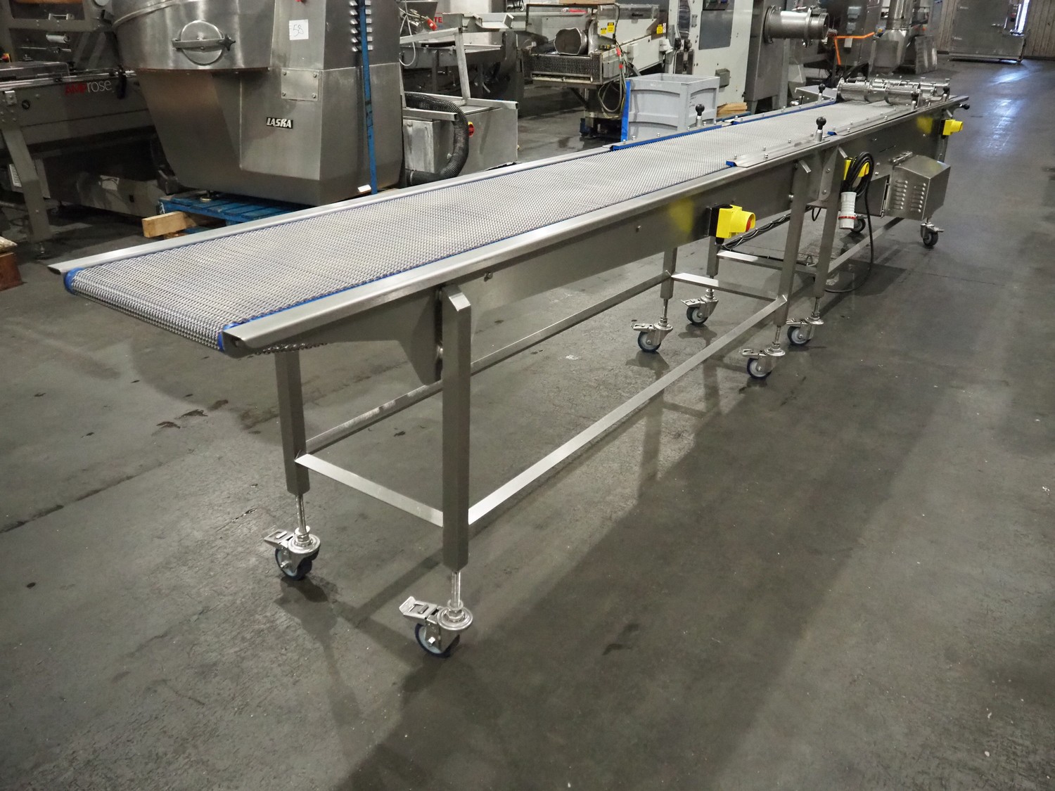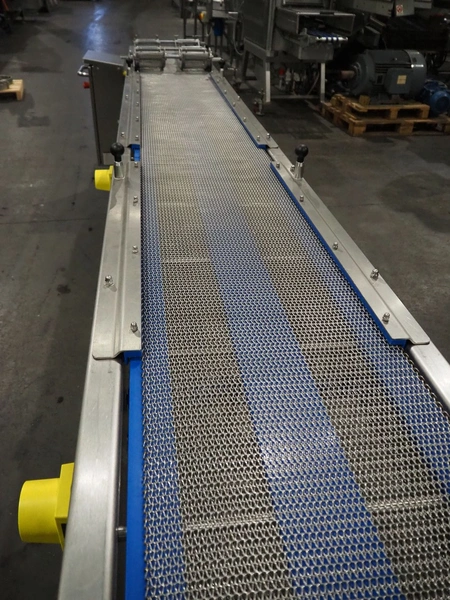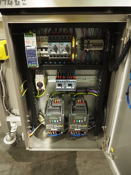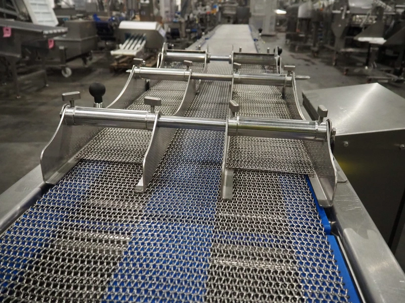 DanTech UK Ltd pig in a blanket wrapper, model: PIB 400, serial number: 8800, year of construction: 2021, 400 V, 3 Ph, 50 Hz, 5 A, s/s mesh belt, belt width: 400 mm, (3x) 150 mm, total dimensions: 5700 mm x 1000 mm x 1000 mm.