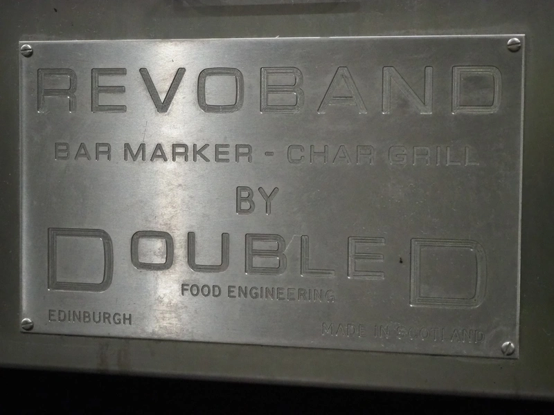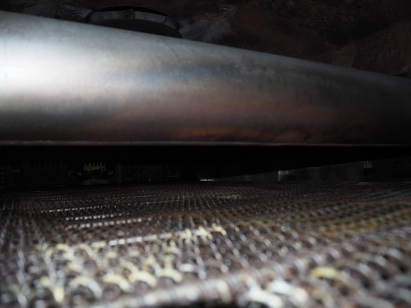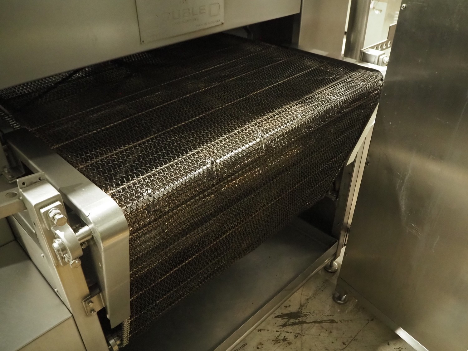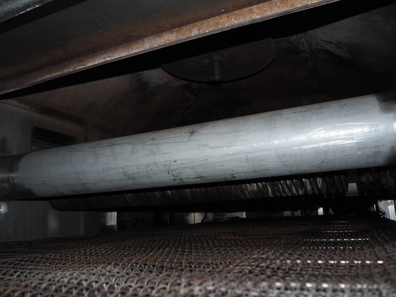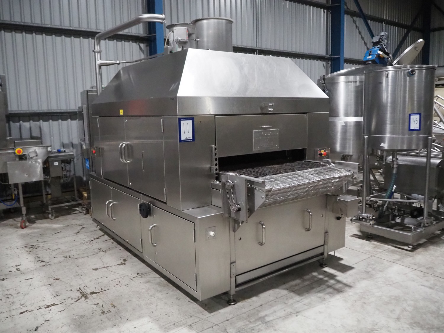 Revoband char grill, s/s mesh belt, belt width: 1000 mm, clearance: 1150 mm x 130 mm, total dimensions: 3300 mm x 2200 mm x 2650 mm.