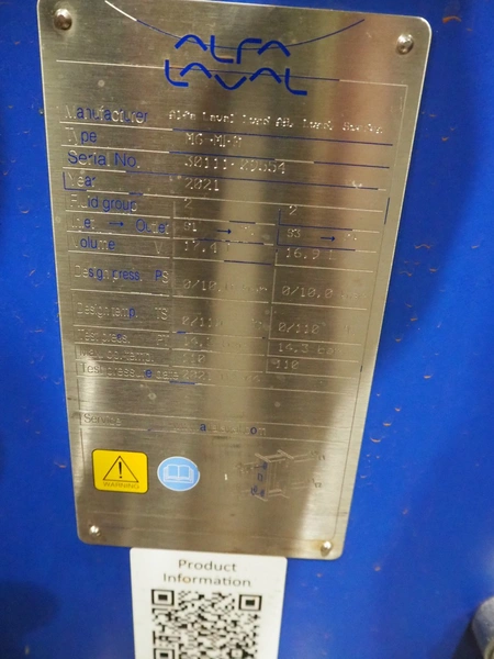 Alfa Laval heat exchanger, type: M6-MFG, serial number: 30111-09554, year of construction: 2021, fluid group 2, dimensions: 1100 mm x 350 mm x 950 mm.