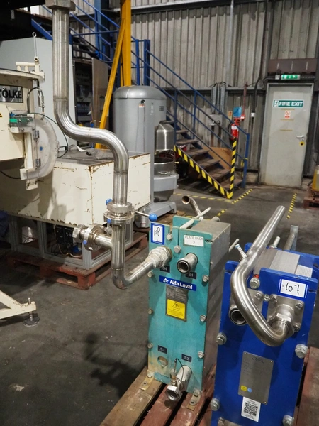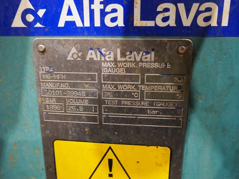 Alfa Laval heat exchanger, type: M6-MFM, serial number: 30101-39948, year of construction: 1996, volume: 25.8, dimensions: 1100 mm x 450 mm x 1800 mm.