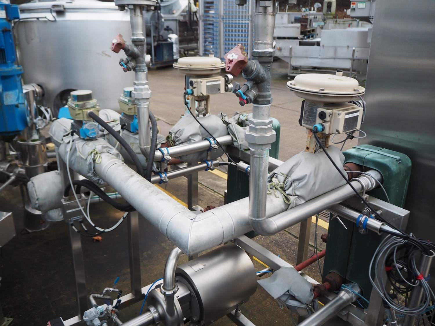 S/s skid with 2 Alfa Laval pumps, type: (2x) LKH-20/153/FSS 3.0 KW, valves and heat exchangers, dimensions: 2300 mm x 1550 mm x 2470 mm.