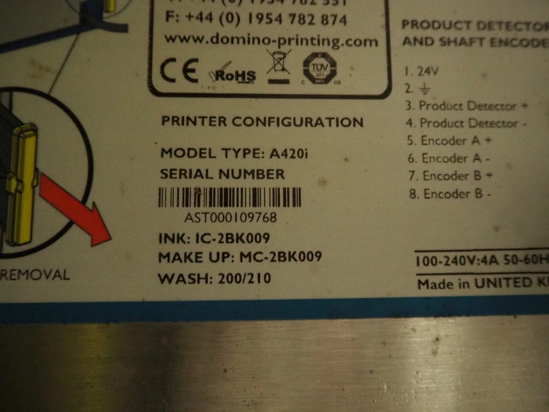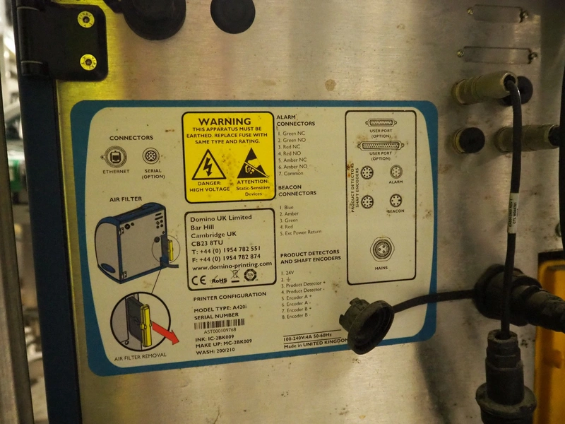 Domino ink jet printer, model: A420i, serial number: AST000109768, dimensions: 700 mm x 600 mm x 1700 mm.