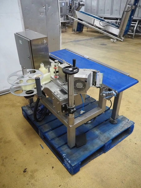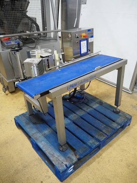 VWS Nederland B.V. belt labeller, model: LP400 Top & Base labelling system, serial number: 211003, year of construction: 2022, 110-240 V AC, 50-60 Hz, plastic belt, belt width: 295 mm, total dimensions: 1200 mm x 1050 mm x 1050 mm.