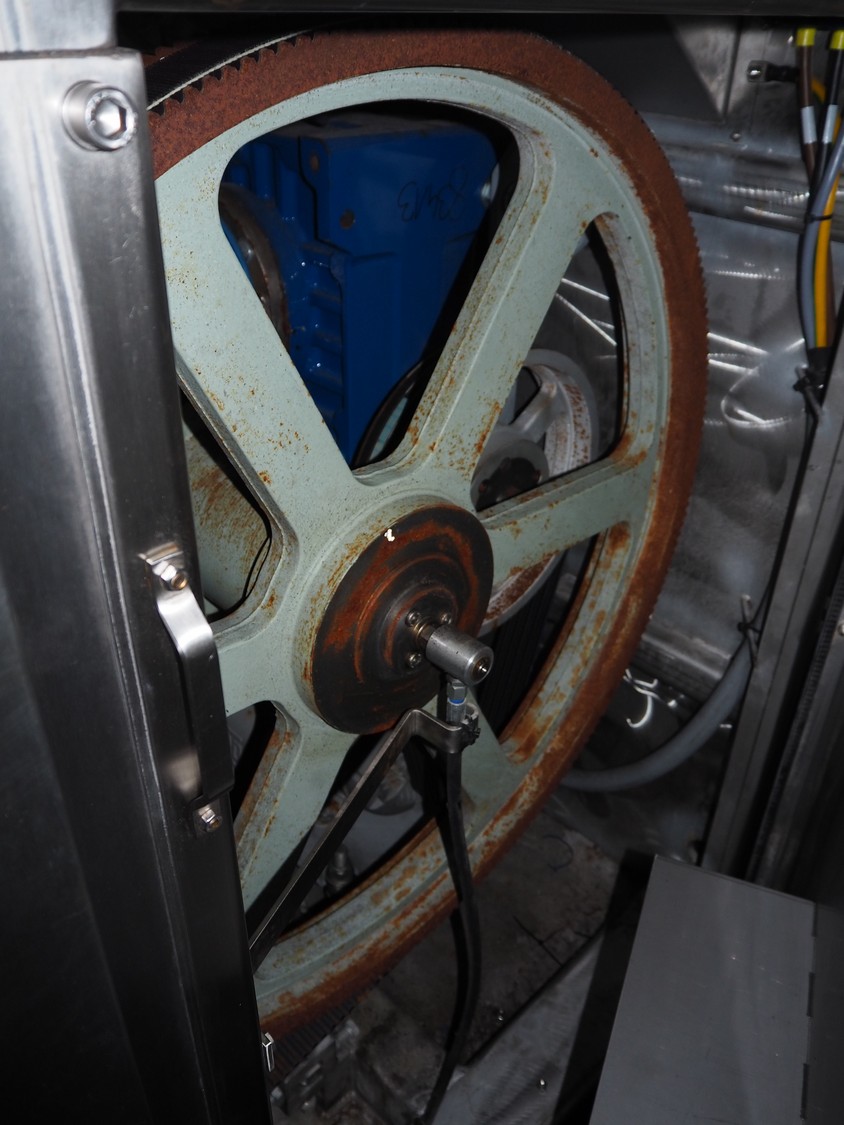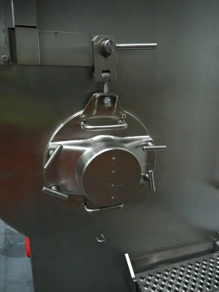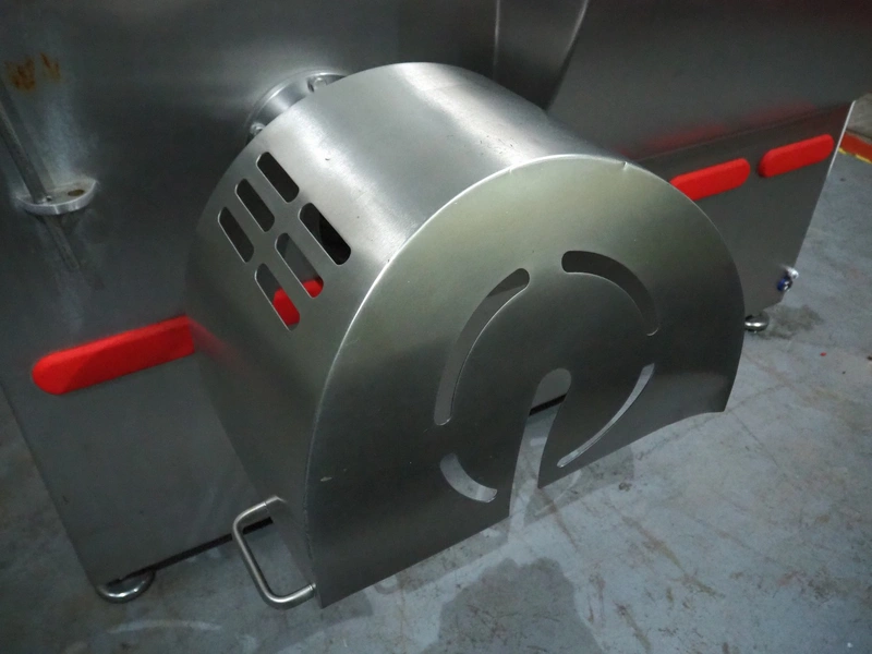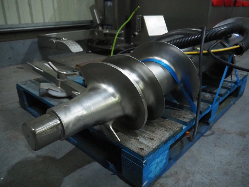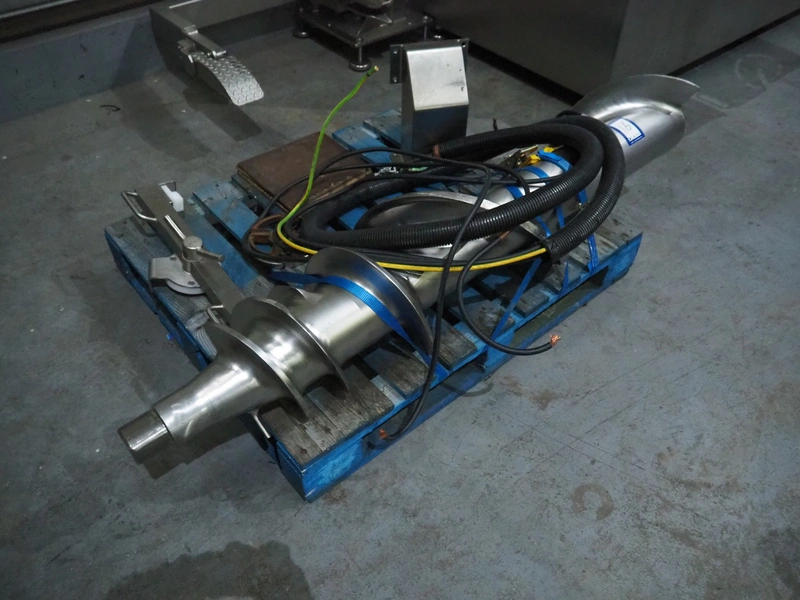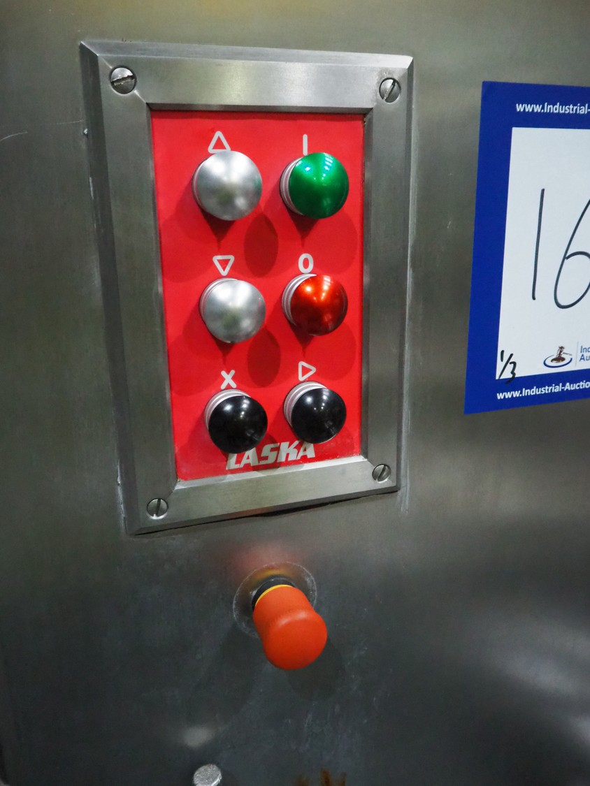 Laska frozen block grinder with lifter for 200 liter meat bins, type: Mincer WWB 200, machine number: 15778, year of construction: 2017, 400 V, 3 Ph, 50 Hz, 129 A, 69 kW, plate diameter: 200 mm, total dimensions: 2500 mm x 1800 mm x 1960 mm. Incomplete, missing one of the screws and plates.