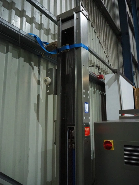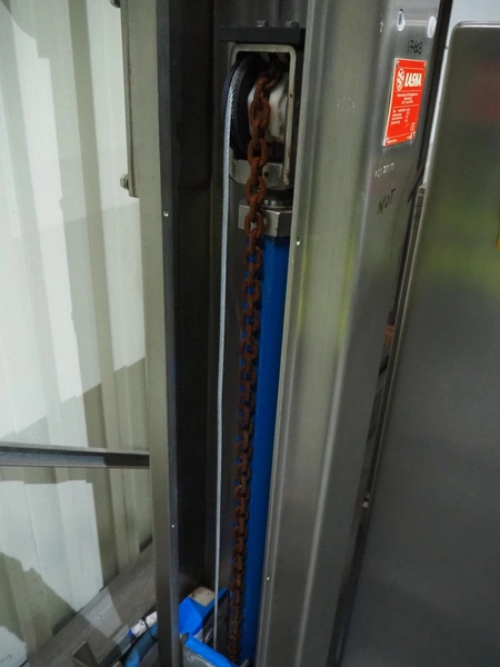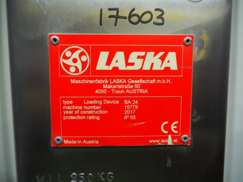 Laska lifter for 200 liter meat bins, type: Loading Device BA 24, machine number: 15779, year of construction: 2017, dimensions: 1200 mm x 1630 mm x 2900 mm.