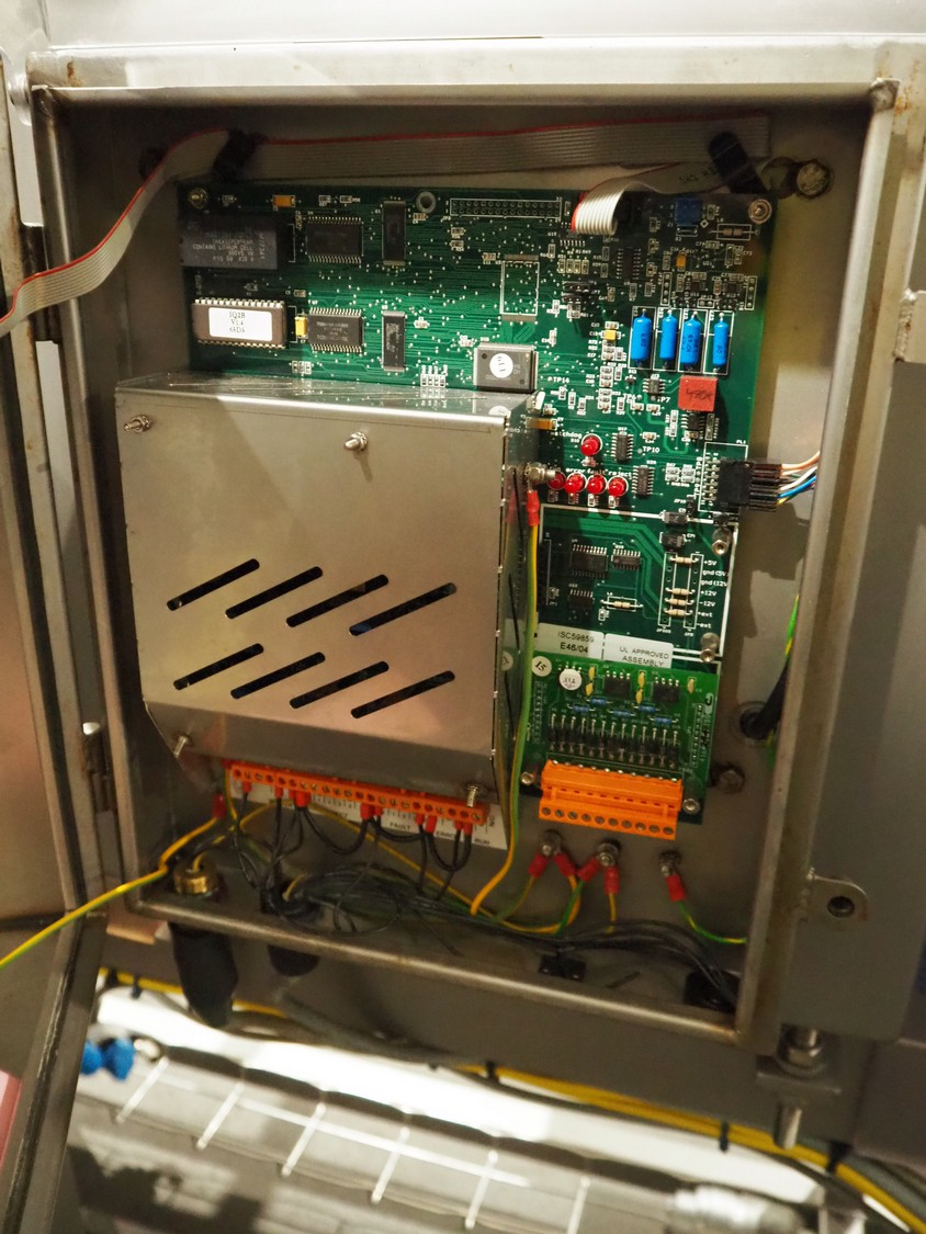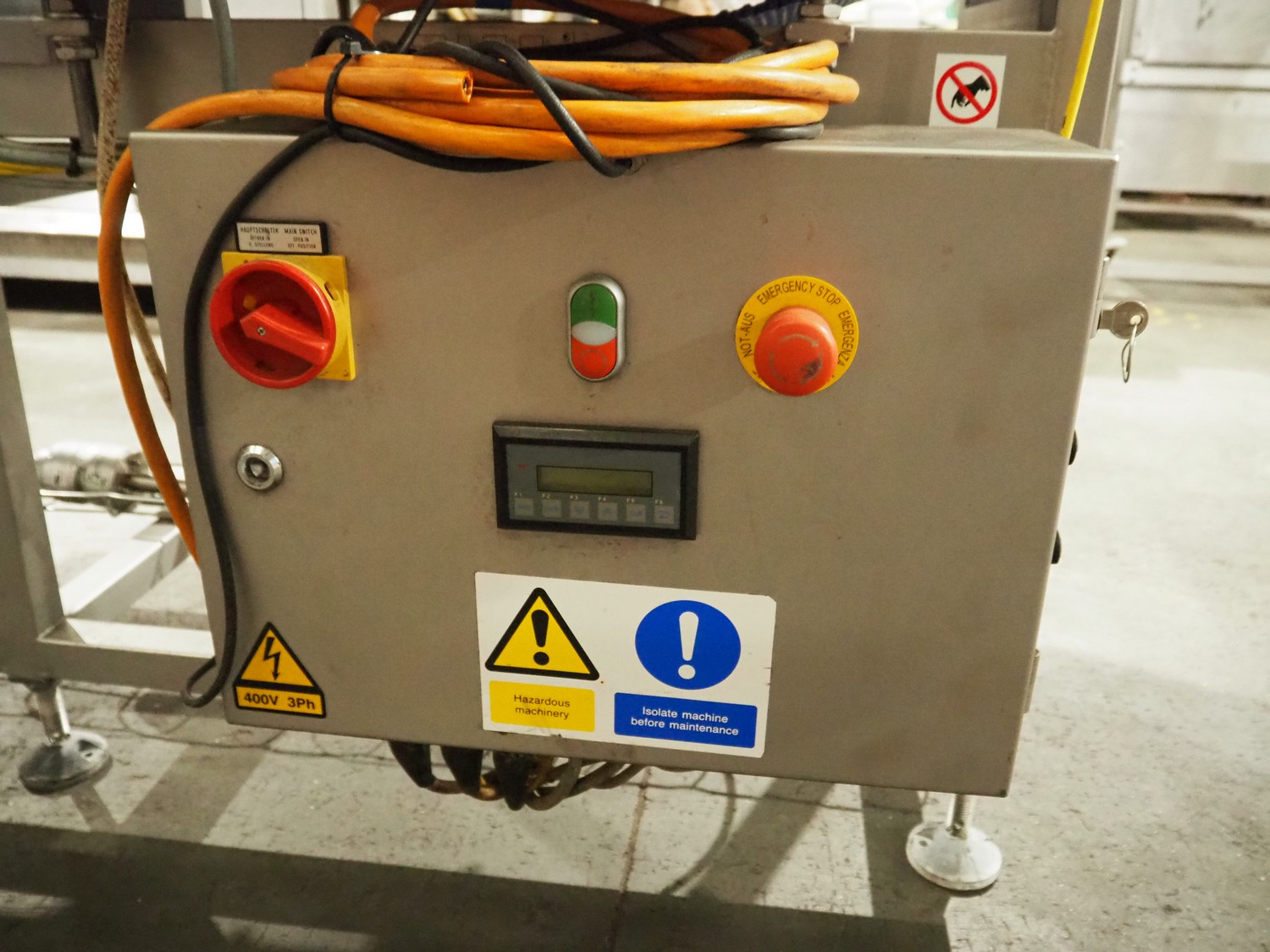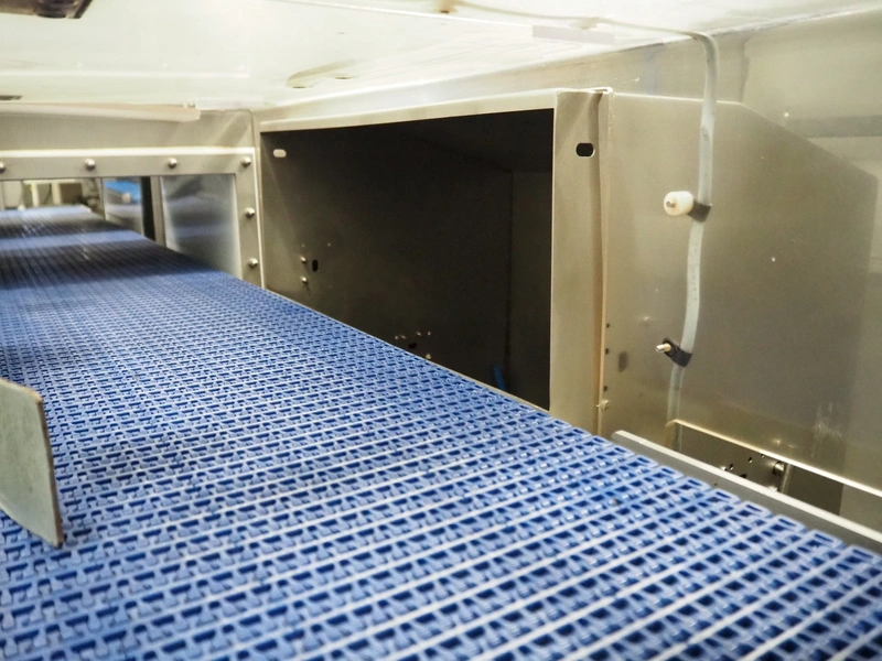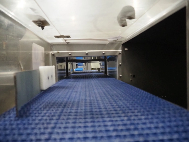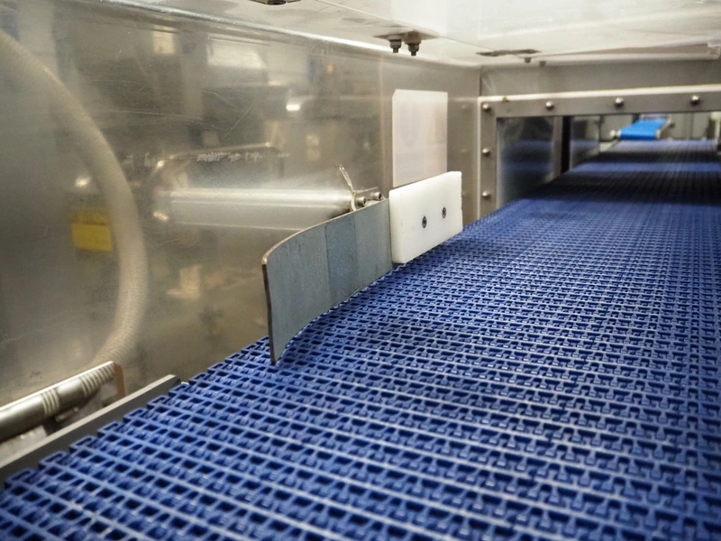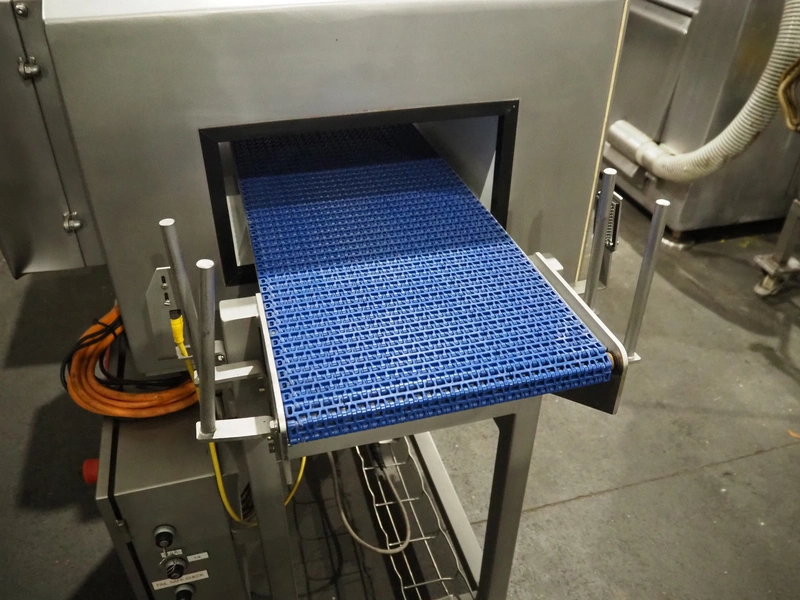 Loma Systems twin head metal detector with rejector, model: IQ2F and IQ2, serial number: 1019-377205 and MH04EU-00201D, 85-265 V, 50-60 Hz, plastic mesh belt, belt width: 300 mm, clearance: 350 mm x 110 mm, total dimensions: 2410 mm x 1050 mm x 1270 mm.